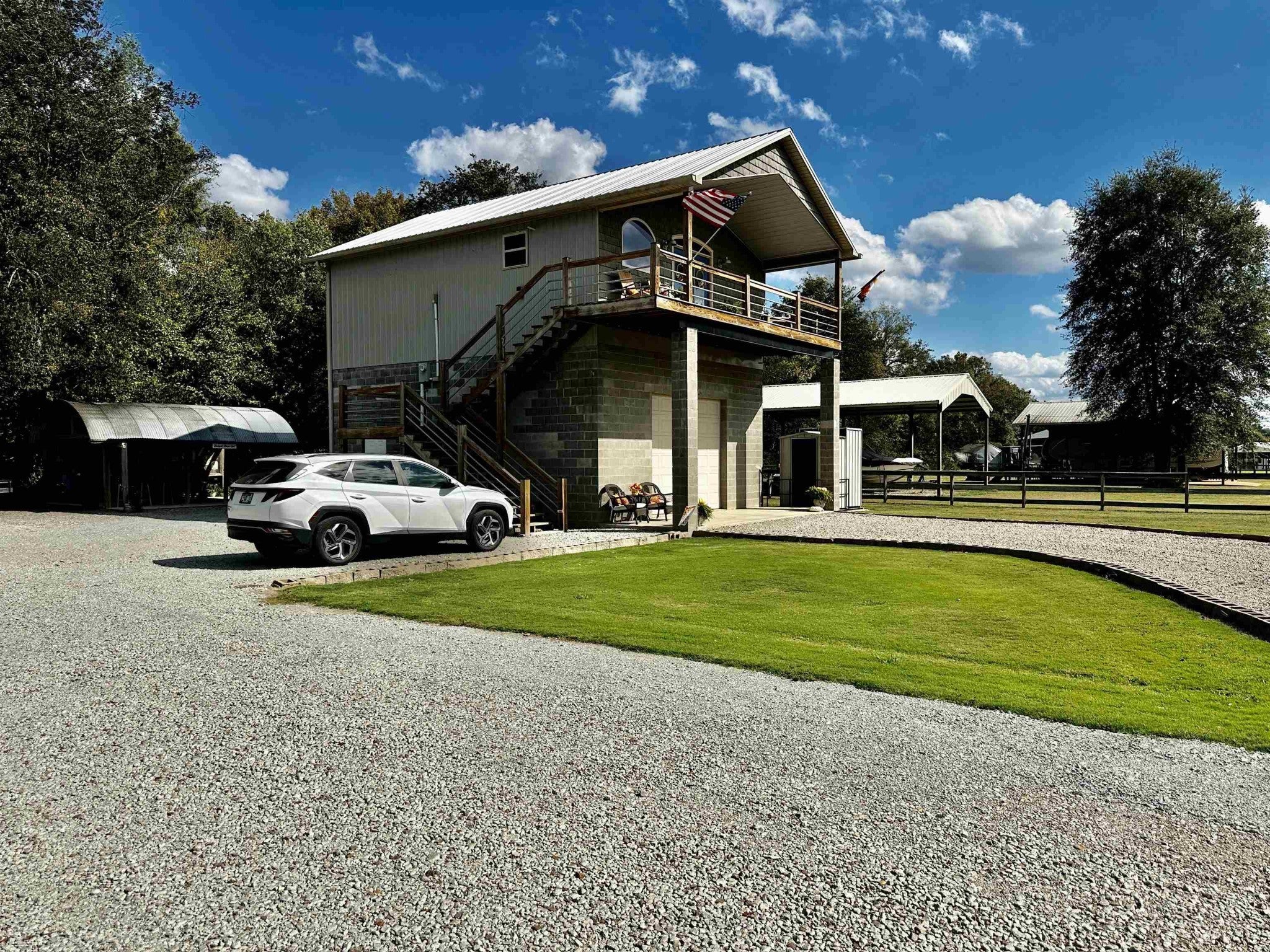 River View Retreat with Acreage & RV Income Potential! Discover this beautiful Tennessee river view property totalling .87 +/- acres, fully gated and fenced for privacy. The charming 1 bed, 1 ba home features an open kitchen/living room combination, a large bathroom, and a laundry room. Enjoy peaceful mornings and sunsets from the covered front porch with the view of the river. For easier access, this home also includes an elevator, making entry simple and covenient for everyone. The property includes a shed, 2 pole barns both with full RV hookups, plus a bathhouse. You'll also find 2 covered patios perfect for cooking, dining, and watching TV, along with two additional uncovered RV hookups and a large covered fire pit area - ideal for gatherings with family and friends. With multiple RV hookups and facilities already in place, this property also offers excellent extra income potential. Minutes from TWRA boat ramp & downtown Savannah. Call today for your private tour!