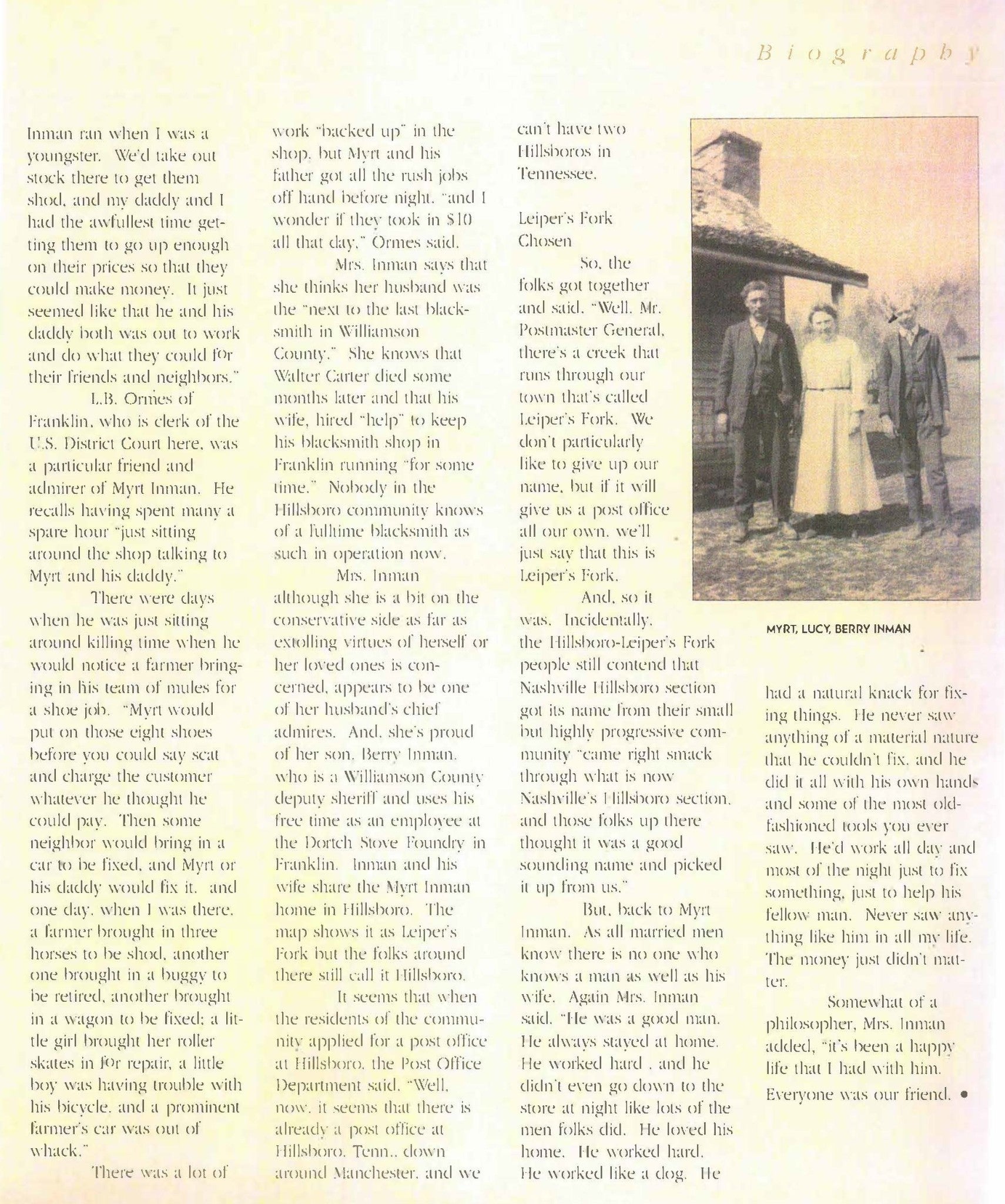 Somebody come build us a hardware store on this land!!!!!! Own a unique piece of Leiper’s Fork history! This 2.2-acre property, zoned Village, offers exceptional flexibility for commercial, residential, or mixed-use possibilities. Once home and shop to the Natchez Trace Blacksmith, this site carries rich local heritage and timeless appeal. Bring your vision and restore this landmark to its next chapter, whether a home, gallery, boutique, or studio; the opportunities are endless. This property was part of Myrt and Lucy Inman’s historic homestead, featured in Rick Warwick’s first history book on Leiper’s Fork (see attachment). Don’t miss the chance to create something truly special in the heart of Tennessee’s most beloved village.