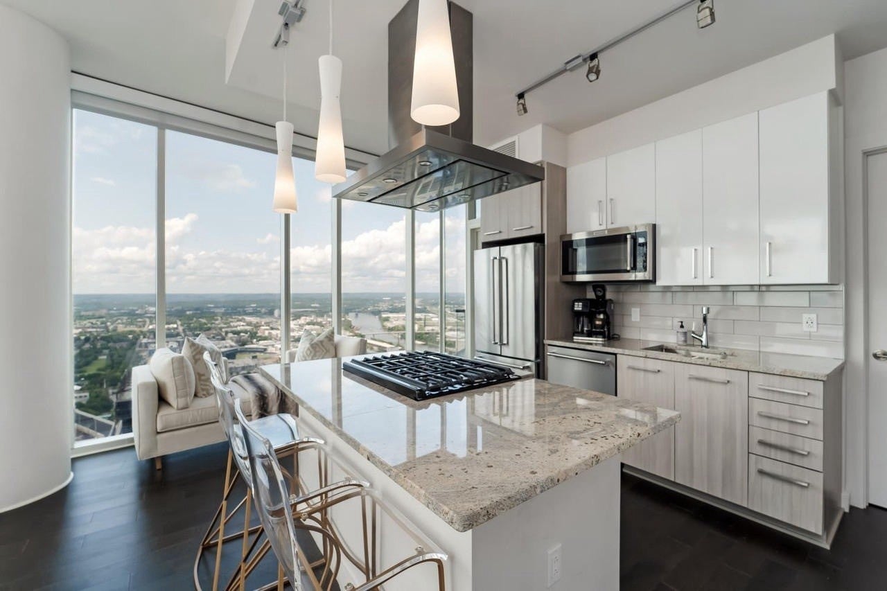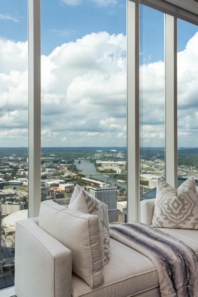Wake up to skyline views and wind down with unforgettable sunsets in this stylish high-rise corner condo in the heart of downtown Nashville. Floor-to-ceiling windows and a private balcony bring the city to you — from the twinkle of Broadway lights to the fireworks at First Tennessee Park to the quiet beauty of the Cumberland at dusk. Designed for easy, elevated living, this home offers open spaces, modern finishes, and a seamless flow from kitchen to living to balcony. Enjoy the full Nashville lifestyle with on-site amenities that make every day feel like a staycation — a resort-style pool with cabanas, state of the art fitness center, tennis and pickleball courts, a catering kitchen, and chic social lounges perfect for entertaining friends before a night out. Step outside and you’re moments from The Ryman, Bridgestone Arena, Nashville Yards, The Pinnacle, First TN Park, and 5th & Broad — where music, dining, and entertainment are at your doorstep. Your private underground “rockstar” parking space (with EV charger) adds convenience, with optional storage and valet parking available. Where vibrant skyline views meet the magic of Nashville — this is downtown living at its best.