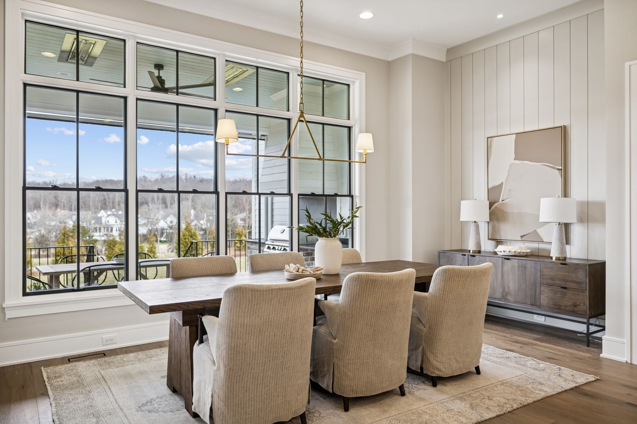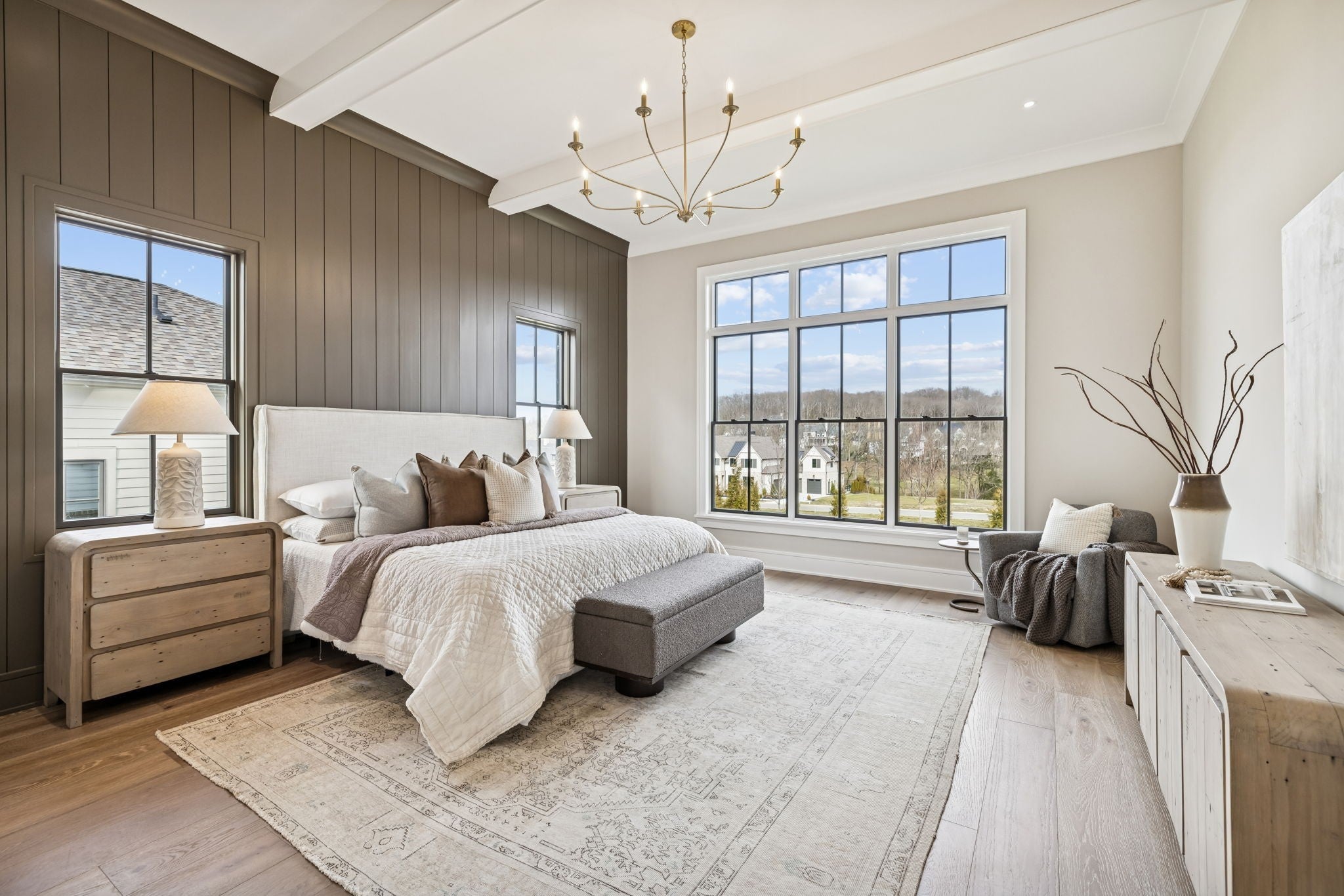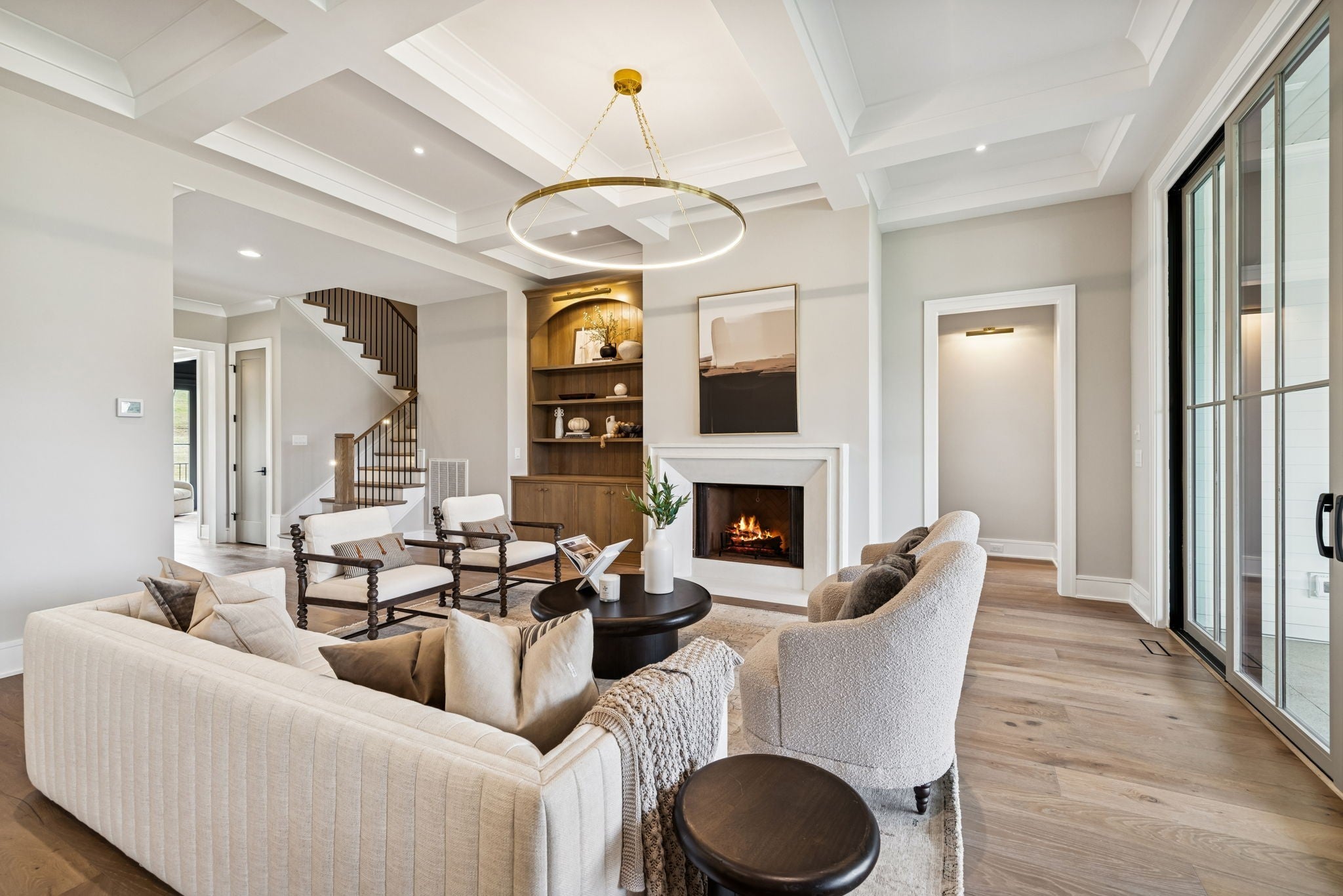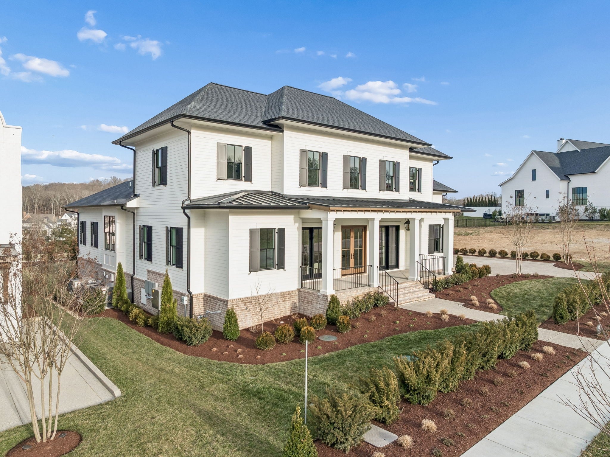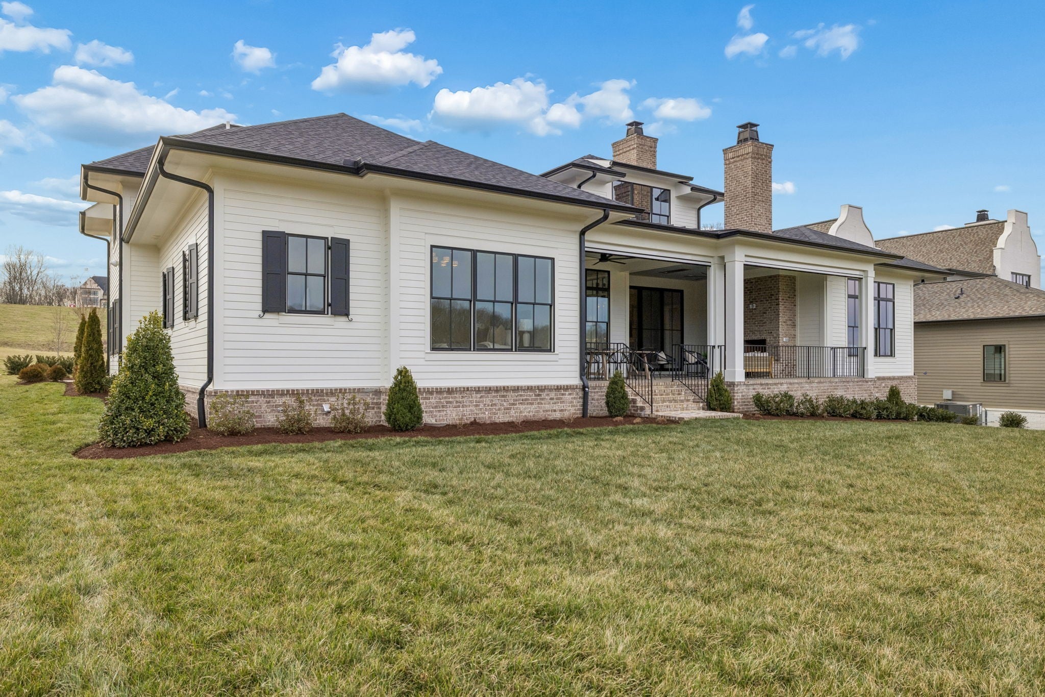 Welcome to the very latest offering at The Grove. Come see this exceptional modern farmhouse by Davis Properties situated on nearly half an acre. Premium interior finishes and exceptional craftsmanship meet you at every turn, from the front entry to the Great Room! Directly off the main entryway, a full wet bar allows for casual entertaining with friends. The spacious chef's kitchen is designed for gathering around the quartz countertops, and a large butler's pantry has all the storage and prep area you need for the family. Windows line the kitchen and dining room- opening up the room with an abundance of natural light. The main level Primary Suite features a spacious walk-in closet with hardwood floors and built-in dressers, plus a large garden tub and a marble tile shower make sure you are pampered each day. The main level includes a Guest Bedroom Suite! Three additional full bedroom suites and two expansive bonus rooms upstairs-ideal for gaming, a home gym, or a lounge! The lot features a large, flat backyard, complemented by a covered porch with a built-in BBQ area and cozy fireplace. Make plans to see this custom home before it's sold!
