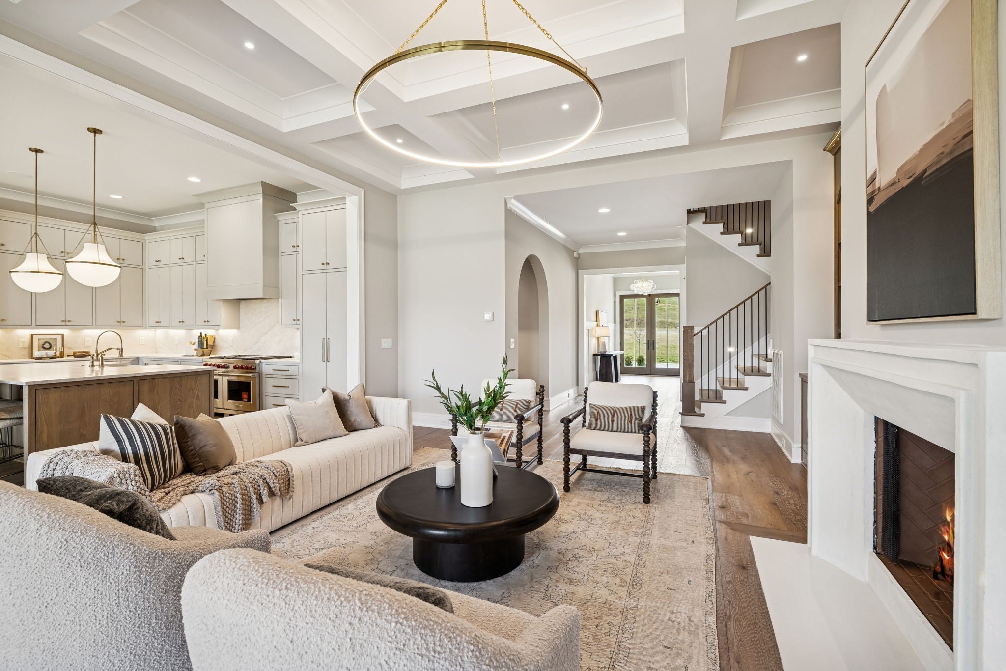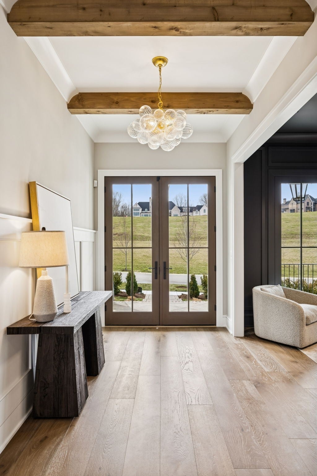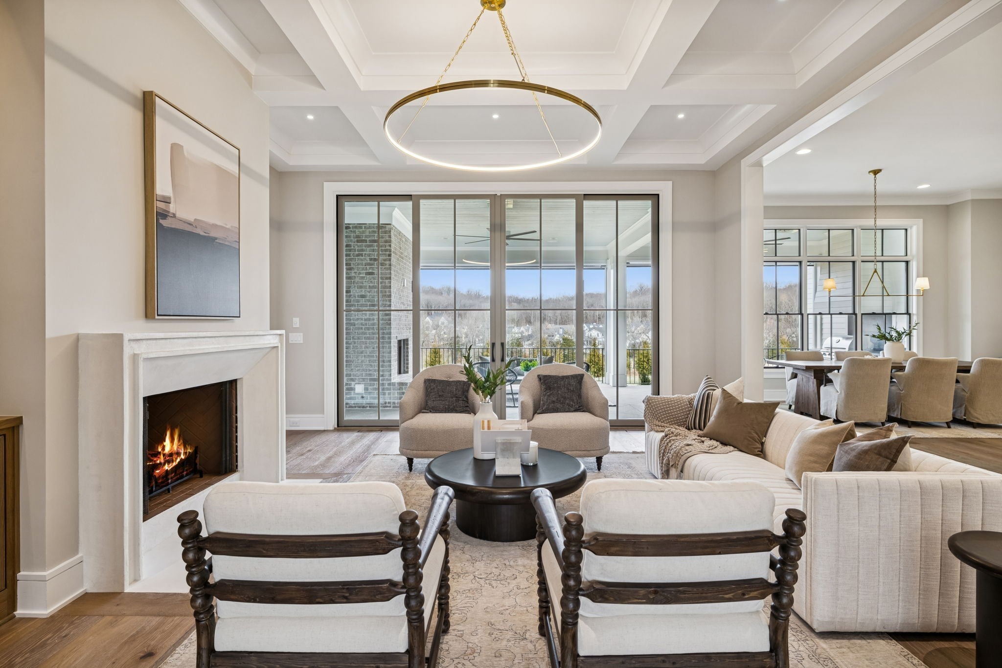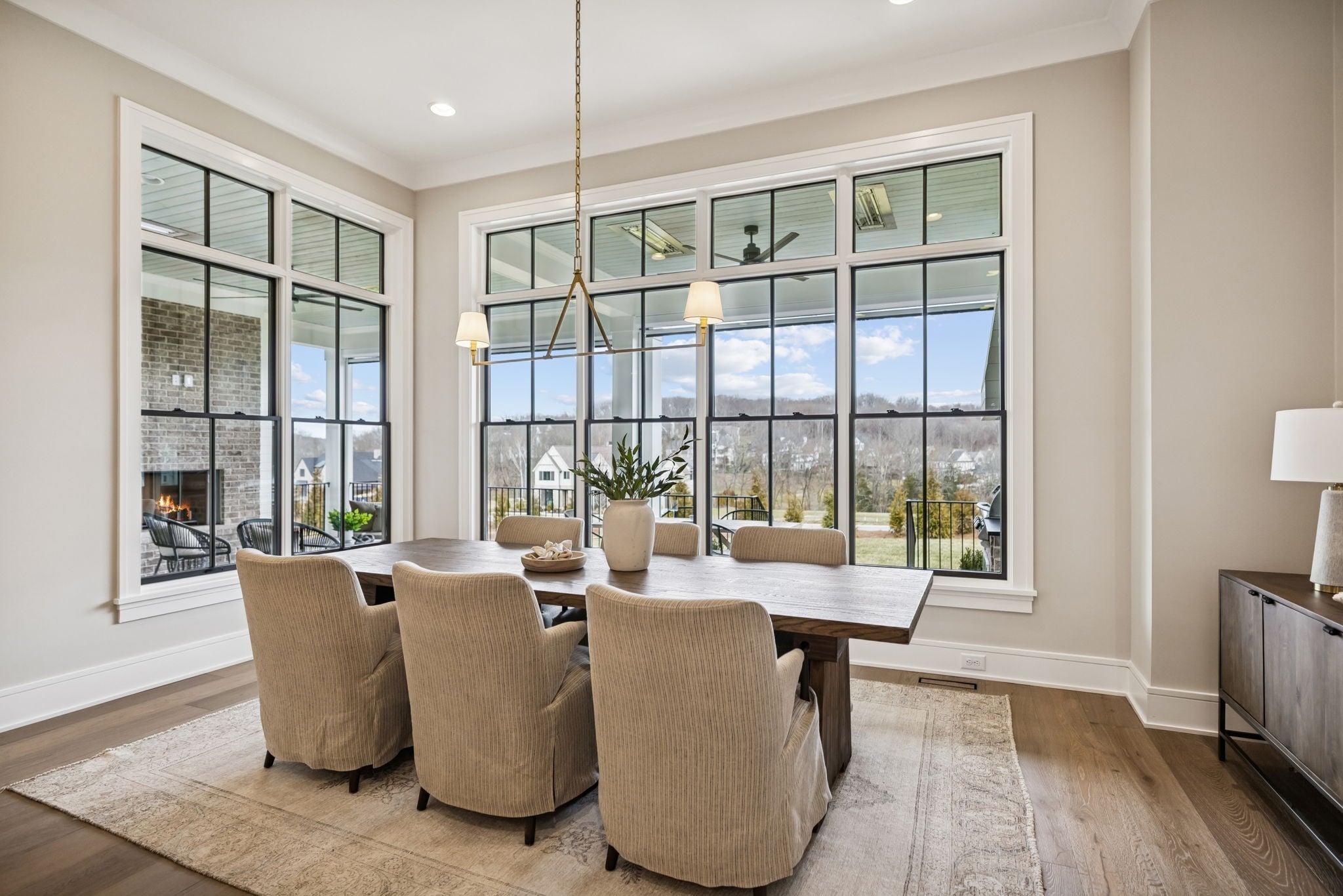 Welcome to the very latest offering at The Grove. Come see this exceptional modern farmhouse by Davis Properties situated on nearly half an acre. Premium interior finishes and exceptional craftsmanship meet you at every turn, from the front entry to the Great Room! Directly off the main entryway, a full wet bar allows for casual entertaining with friends. The spacious chef's kitchen is designed for gathering around the quartz countertops, and a large butler's pantry has all the storage and prep area you need for the family. Windows line the kitchen and dining room- opening up the room with an abundance of natural light. The main level Primary Suite features a spacious walk-in closet with hardwood floors and built-in dressers, plus a large garden tub and a marble tile shower make sure you are pampered each day. The main level includes a Guest Bedroom Suite! Three additional full bedroom suites and two expansive bonus rooms upstairs-ideal for gaming, a home gym, or a lounge! The lot features a large, flat backyard, complemented by a covered porch with a built-in BBQ area and cozy fireplace. Make plans to see this custom home before it's sold!