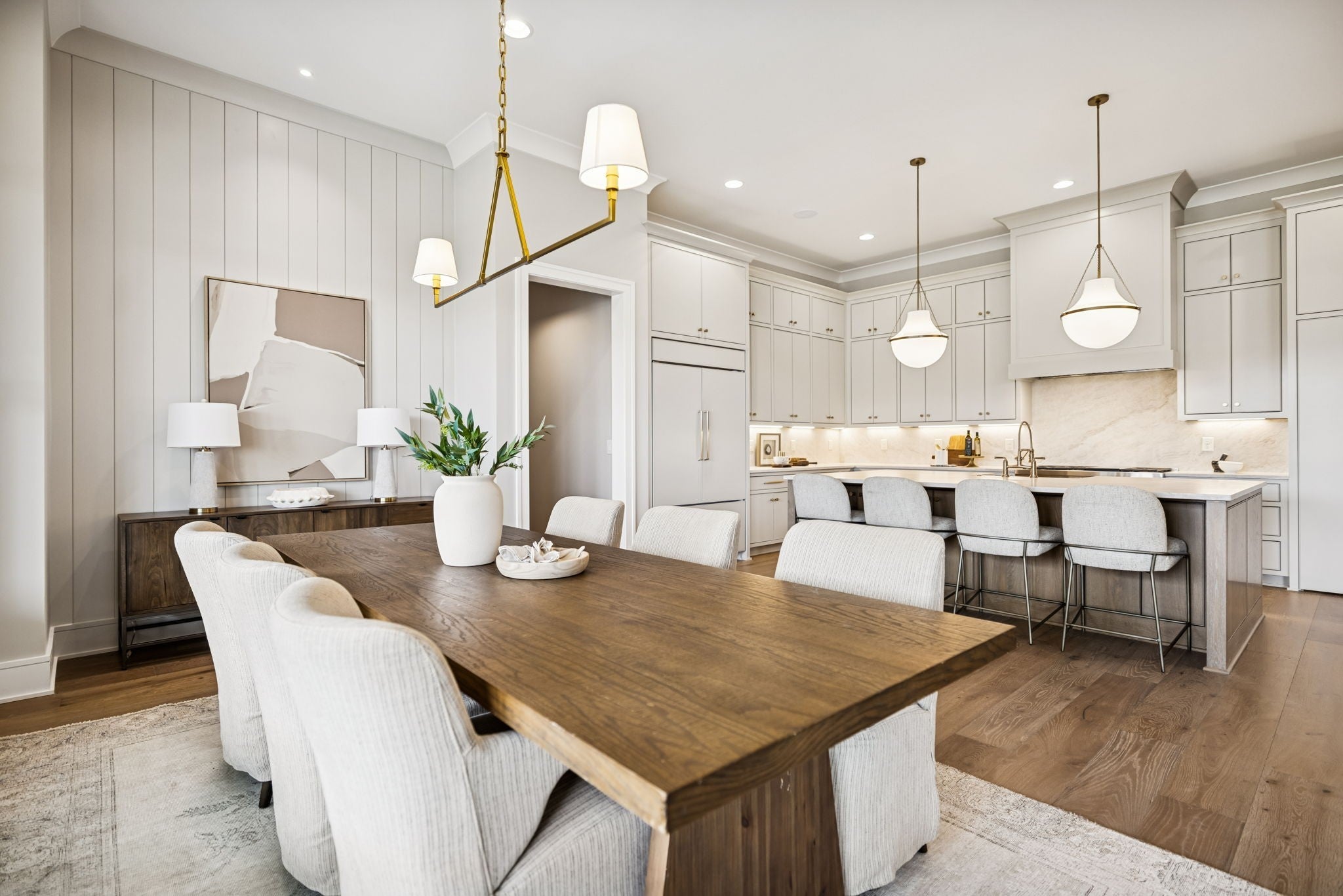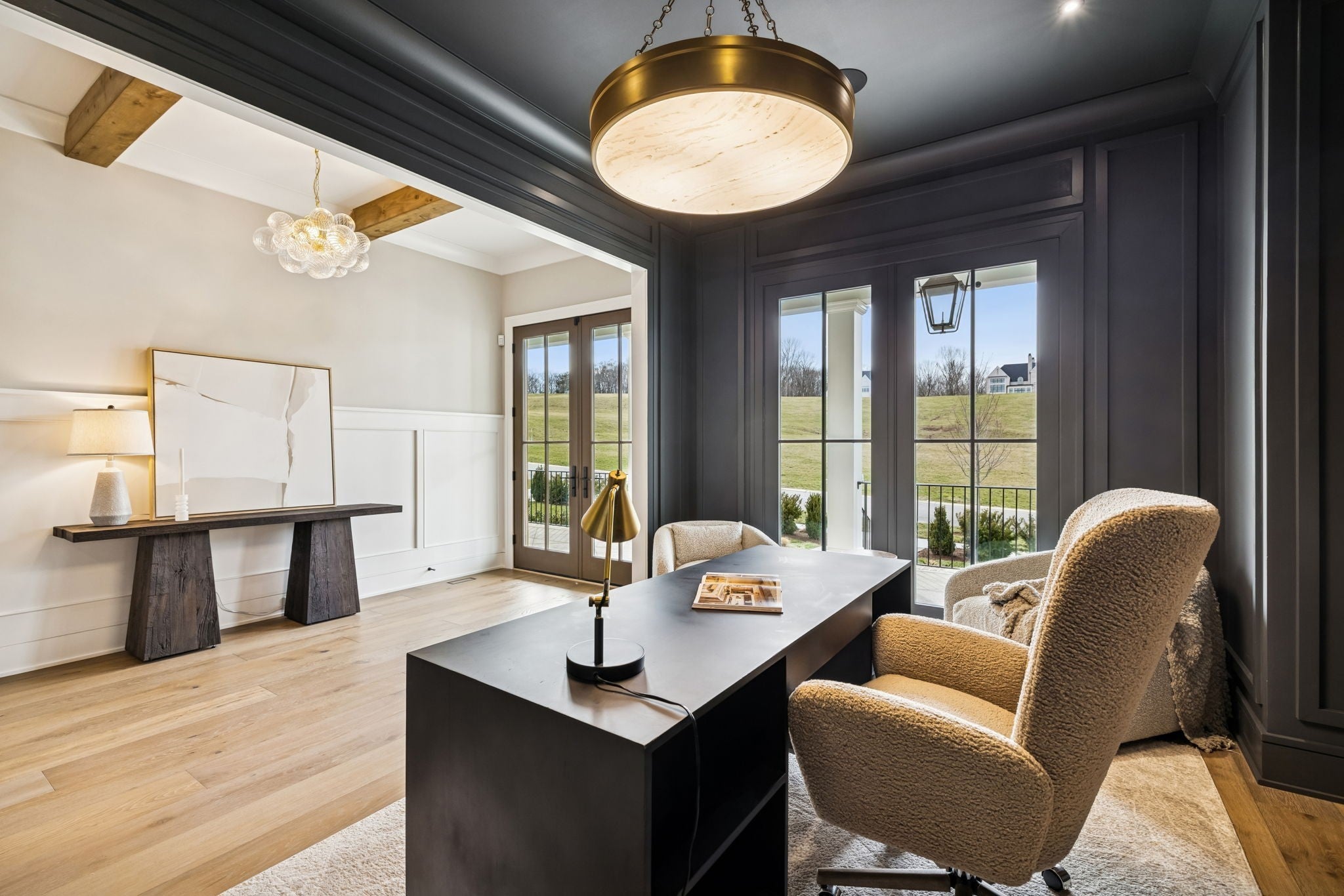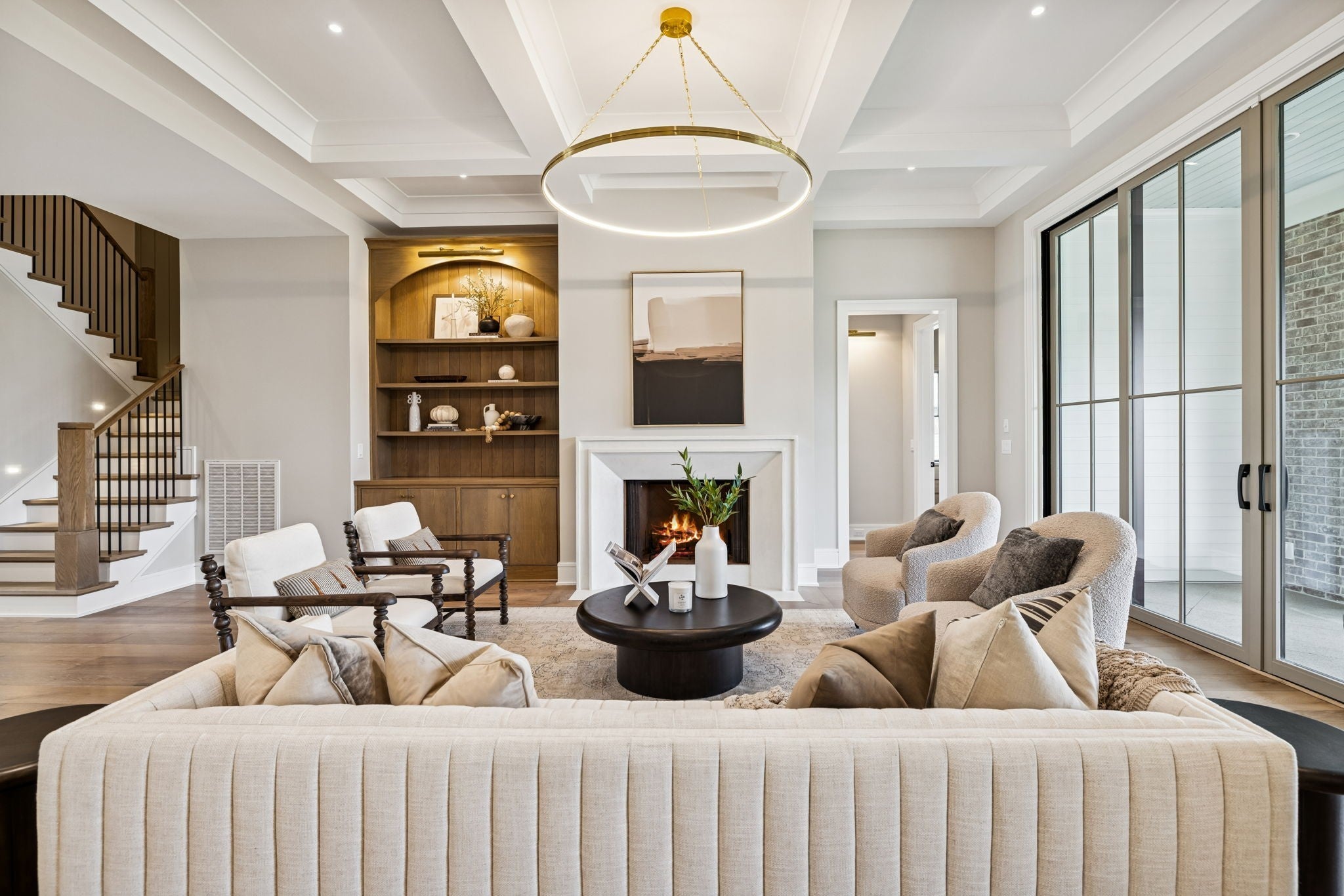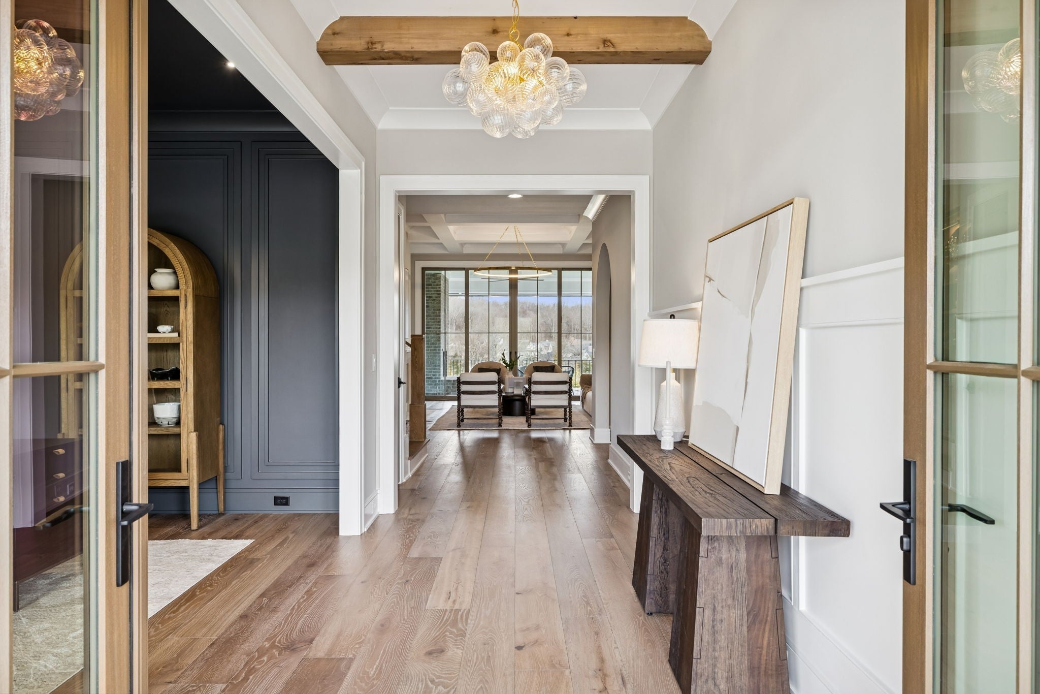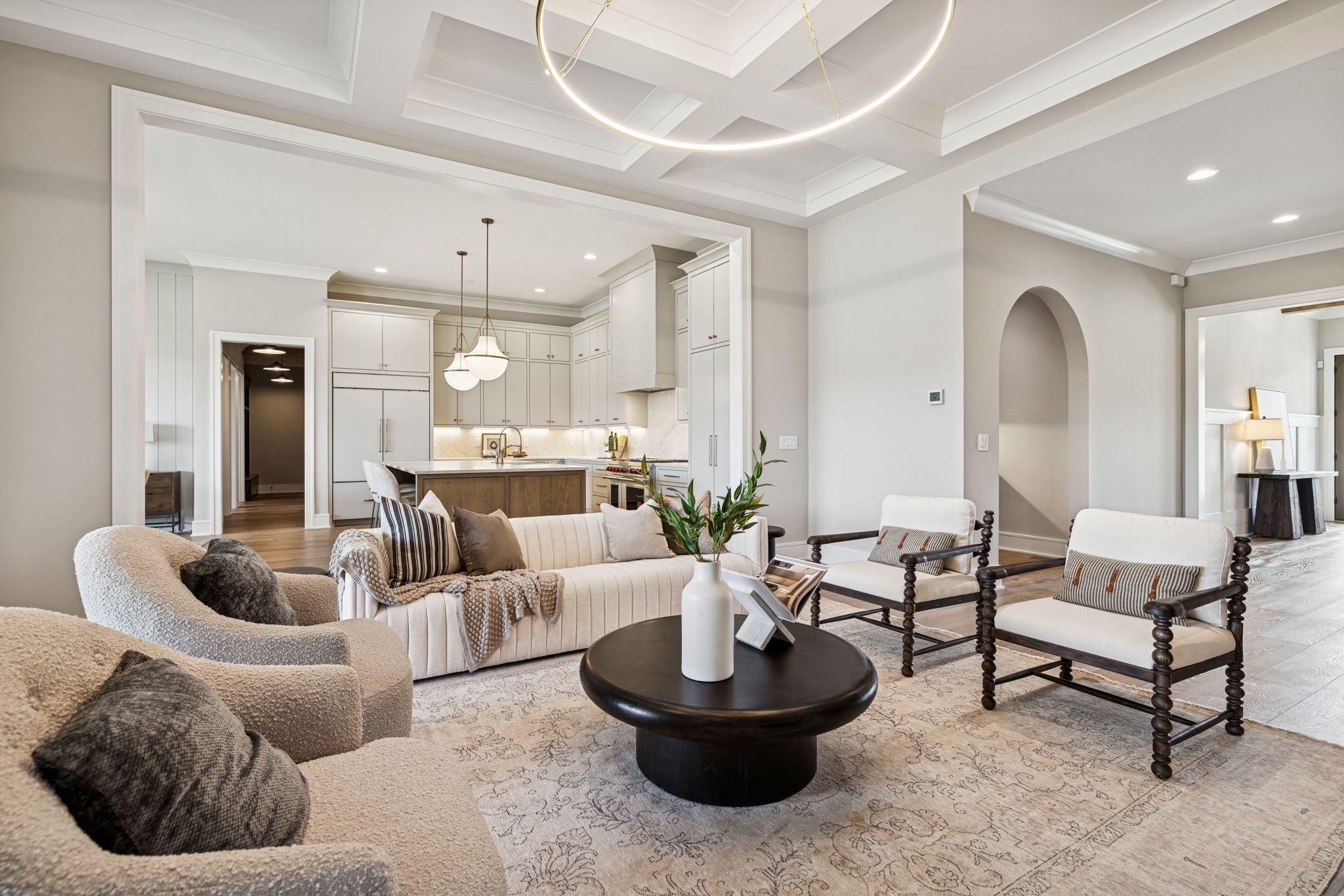 Welcome to the very latest offering at The Grove. Come see this exceptional modern farmhouse by Davis Properties situated on nearly half an acre. Premium interior finishes and exceptional craftsmanship meet you at every turn, from the front entry to the Great Room! Directly off the main entryway, a full wet bar allows for casual entertaining with friends. The spacious chef's kitchen is designed for gathering around the quartz countertops, and a large butler's pantry has all the storage and prep area you need for the family. Windows line the kitchen and dining room- opening up the room with an abundance of natural light. The main level Primary Suite features a spacious walk-in closet with hardwood floors and built-in dressers, plus a large garden tub and a marble tile shower make sure you are pampered each day. The main level includes a Guest Bedroom Suite! Three additional full bedroom suites and two expansive bonus rooms upstairs-ideal for gaming, a home gym, or a lounge! The lot features a large, flat backyard, complemented by a covered porch with a built-in BBQ area and cozy fireplace. Make plans to see this custom home before it's sold!