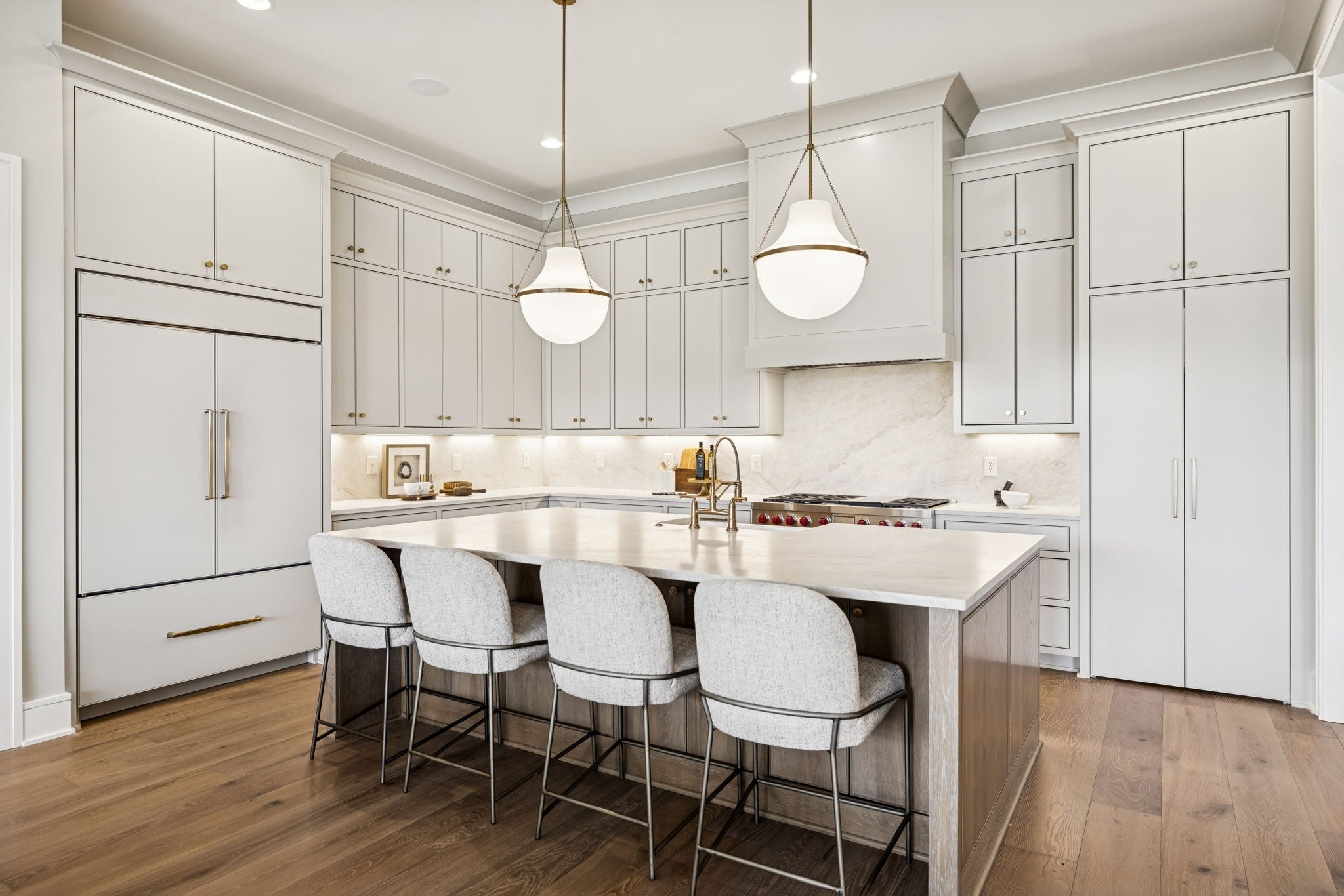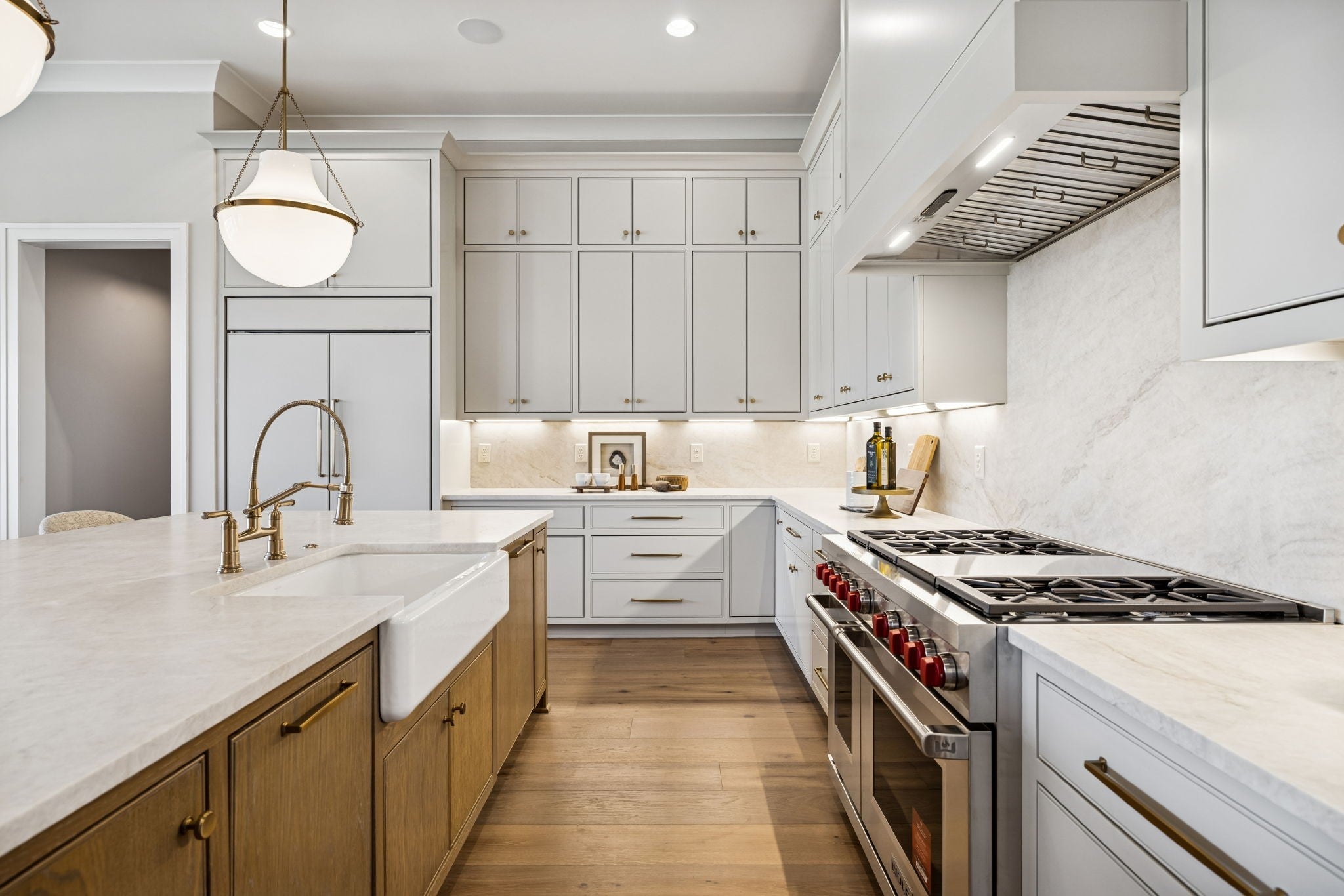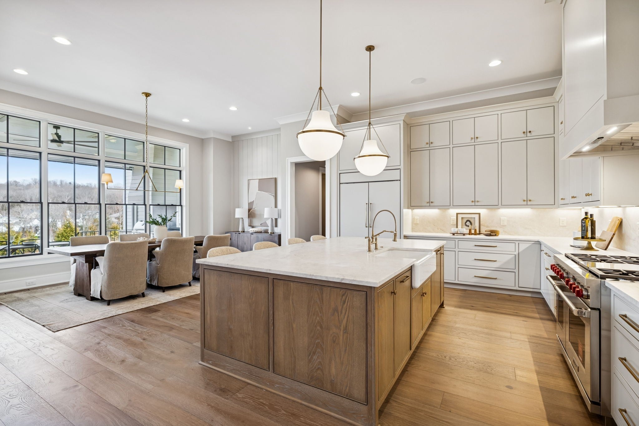 - Built-In Gas Oven, Double Oven, Built-In Gas Range, Dishwasher, Disposal, Freezer, Microwave, Refrigerator, Stainless Steel Appliance(s)
