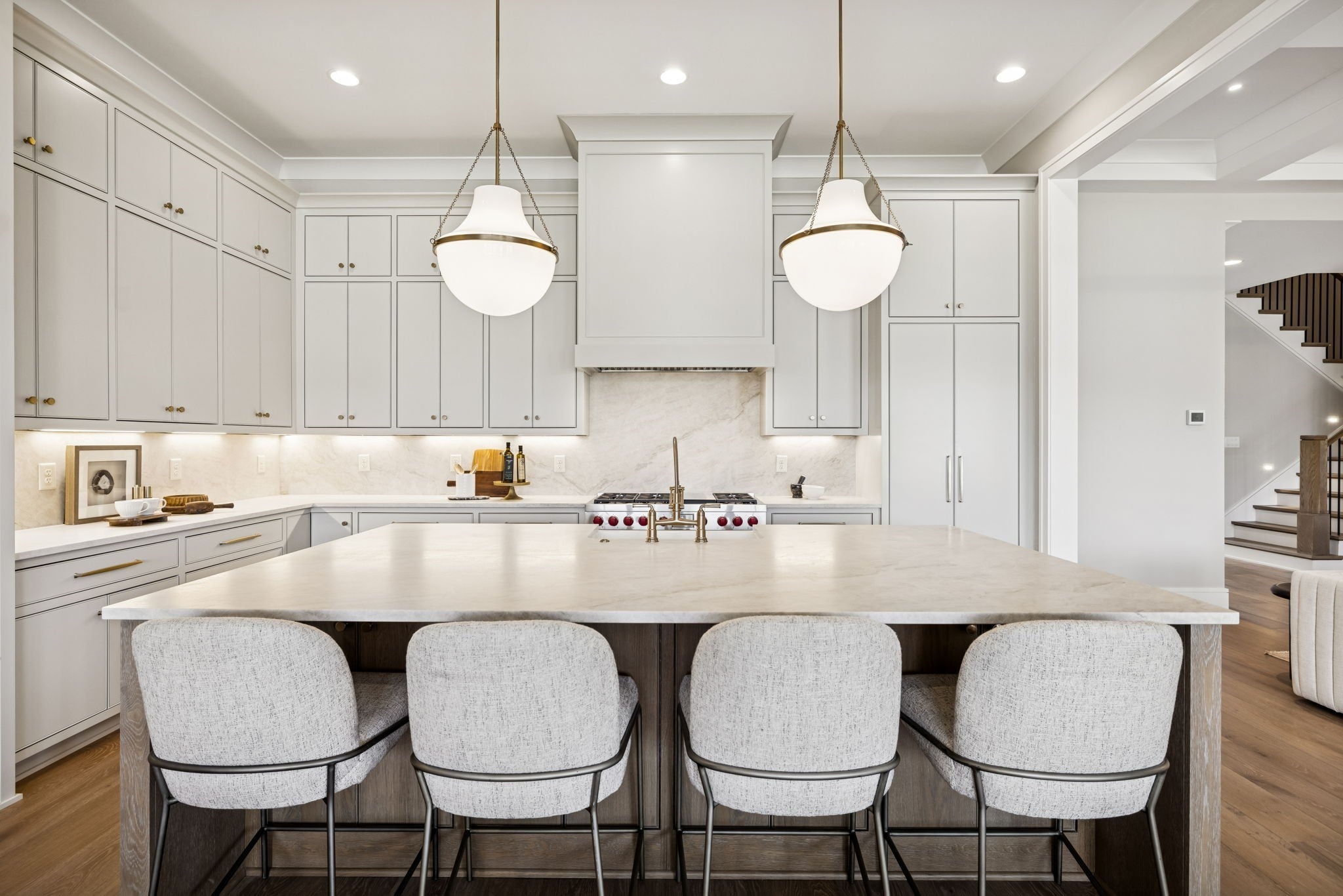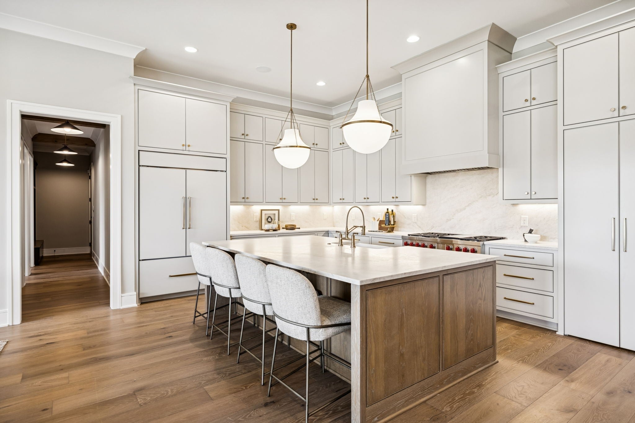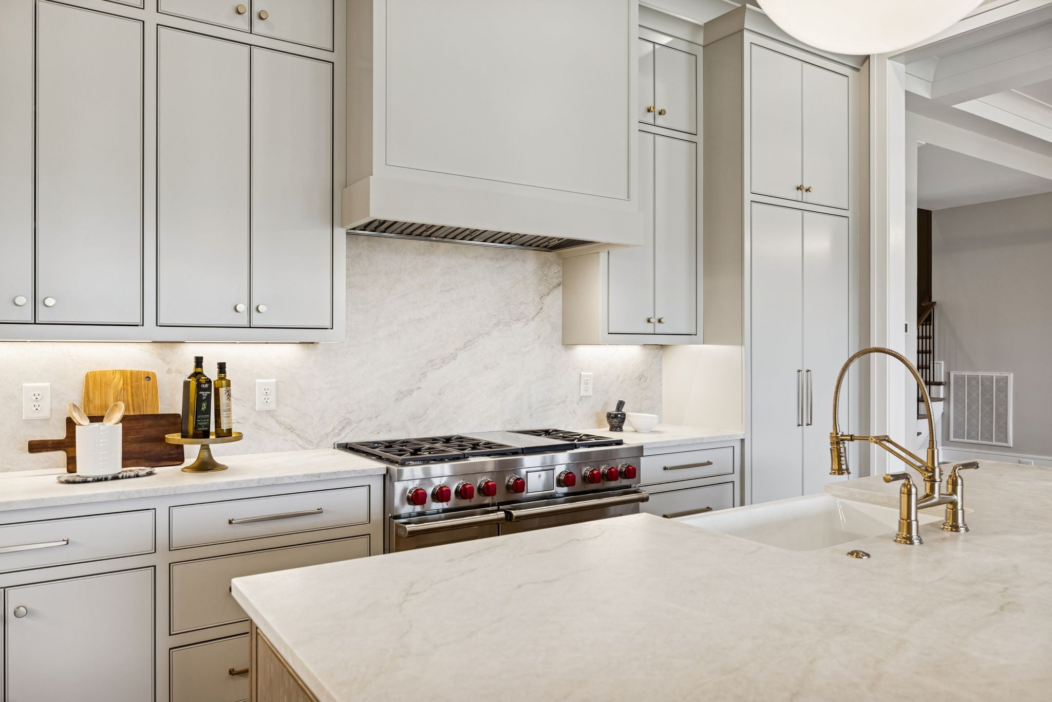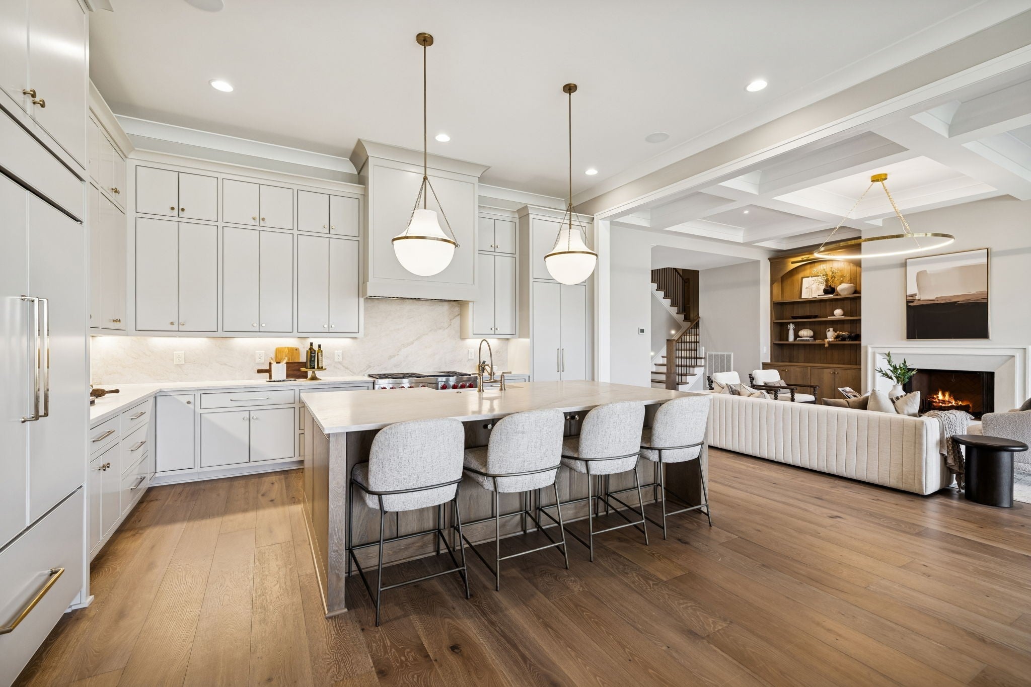 - Built-In Gas Oven, Double Oven, Built-In Gas Range, Dishwasher, Disposal, Freezer, Microwave, Refrigerator, Stainless Steel Appliance(s)