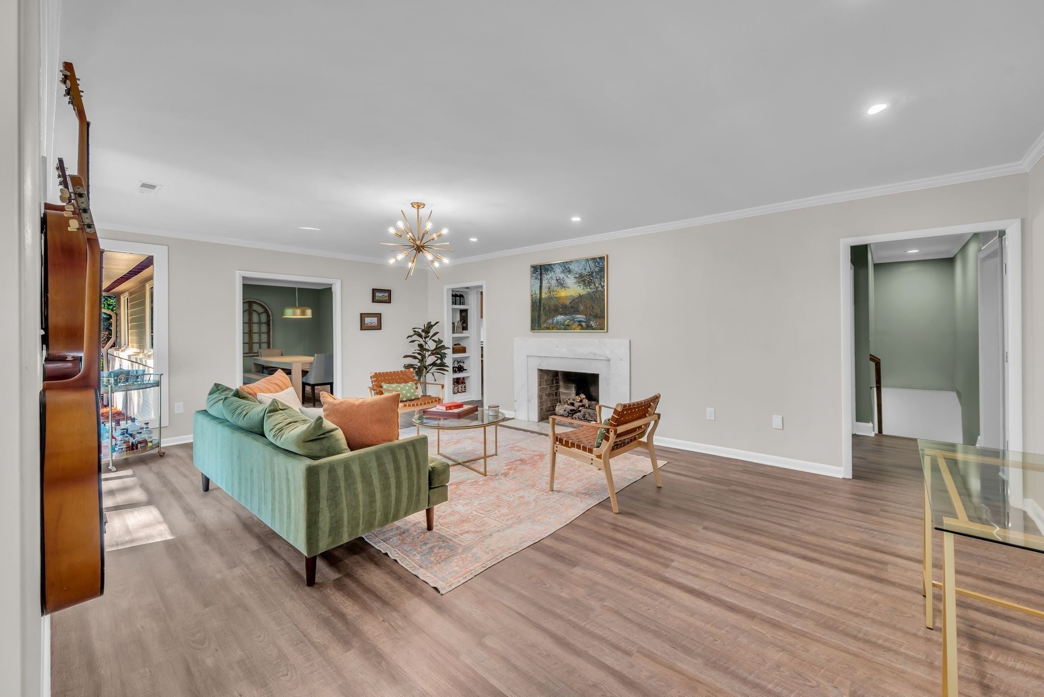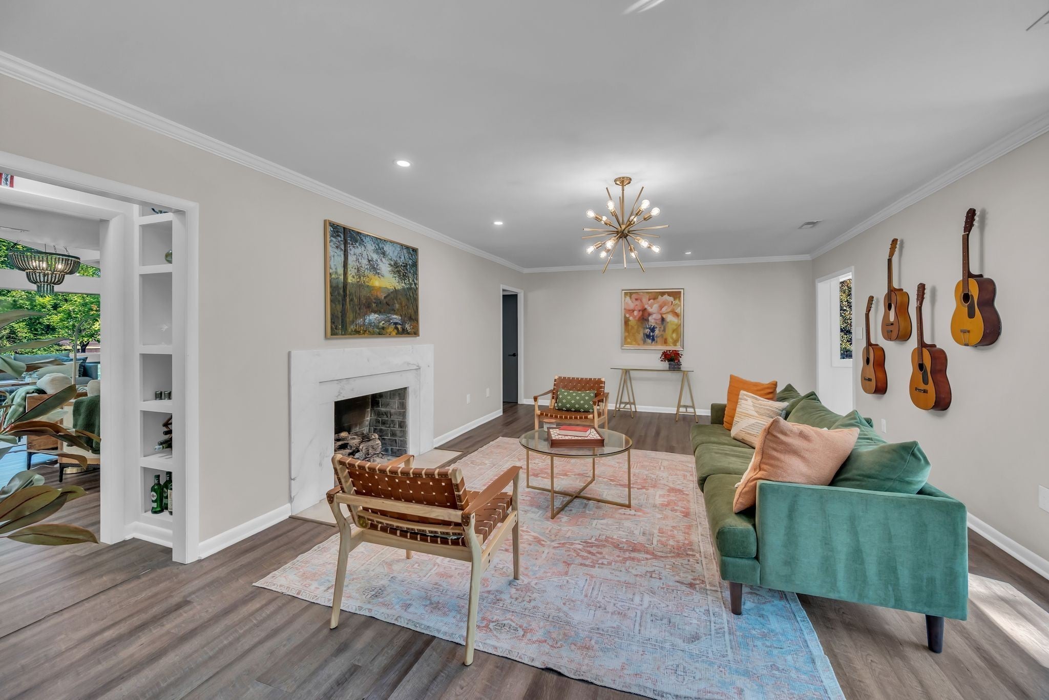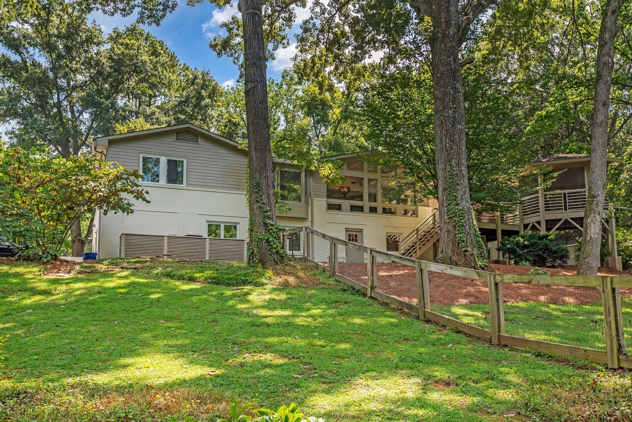 Beautifully renovated Mid-Century Ranch on one of Oak Hill's best streets. Over 5,500 square feet with 6 bedrooms and 4.5 baths on an amazing acre lot. The home has the updates you are seeking with the Classic Nashville character you desire; even Country Music legend Webb Pierce owned this property in the 1960s. The main floor has a primary suite with two walk-in closets and a large bathroom overlooking the private backyard. Also on the main floor is a second suite hosting its own private bath and two additional bedrooms with another full bath and half bath. The entry foyer is a statement piece and leads to a handsome formal living room with a wall of windows overlooking the front yard. The living room has built ins with a fireplace and a stunning wall of windows looking over the backyard and large oak trees. The kitchen has been completely renovated in recent years with island seating and opens to a formal dining room. Seller agrees to a flooring allowance at an agreeable Purchase Price. The lower level is a full walk out basement with two private entrances along with a two car garage. Two bedrooms and one full bath are on this level, along with a full kitchen, recreation room with built-ins, laundry room, home gym and abundant storage throughout several closets and a storage room. Curtiswood Circle is a very quiet street that ends in a cul de sac. There are 15 homes on the street and not many become available. The rear of this property is bordered by a year round creek that adds another whole layer of appeal for the nature lover and serenity of this place. Yet, this home is only around 6 miles south of downtown Nashville. Truly a one of a kind home!