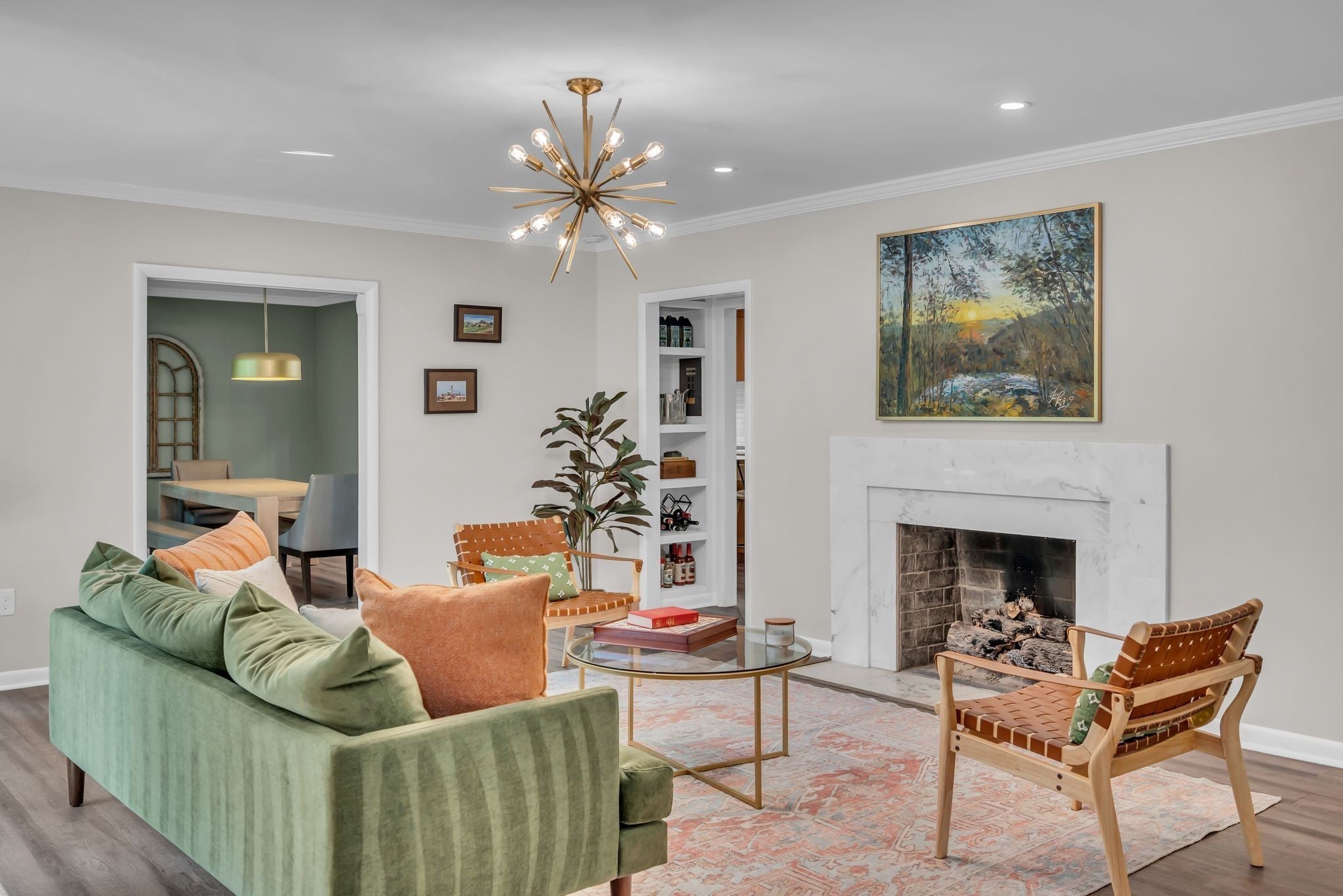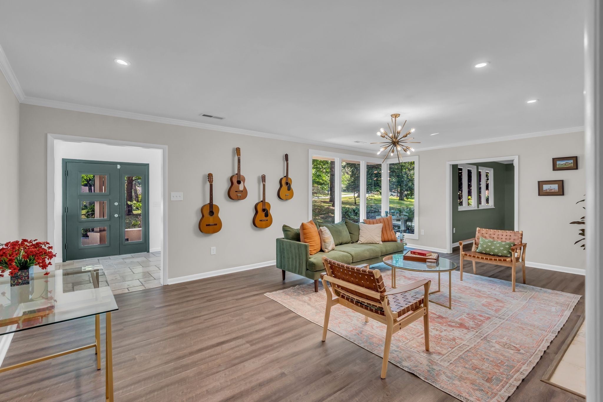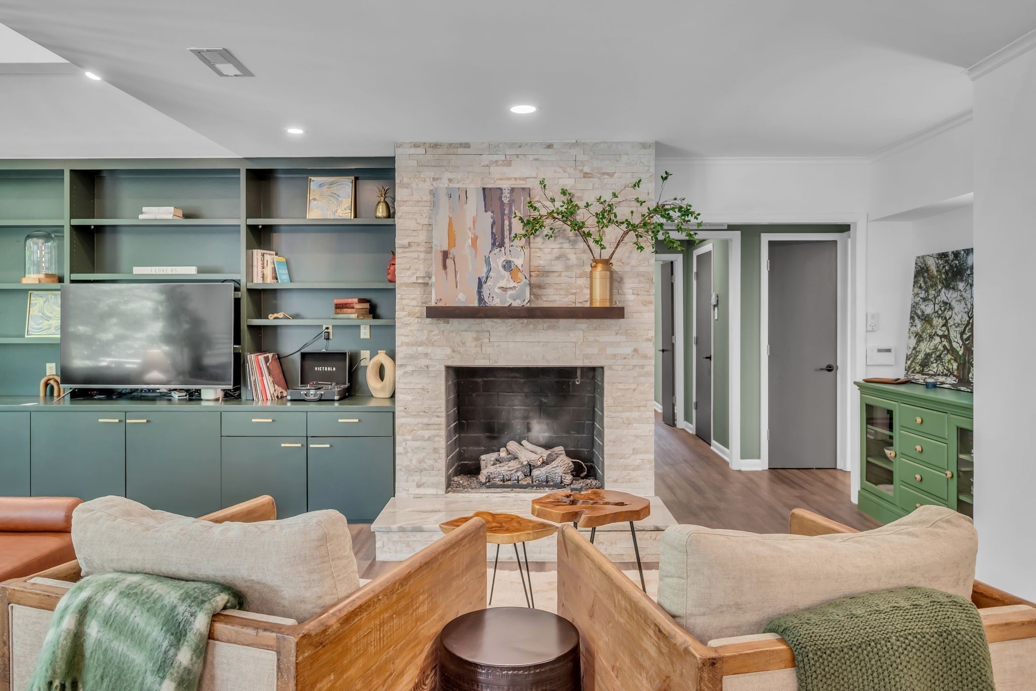 Beautifully renovated Mid-Century Ranch on one of Oak Hill's best streets. Over 5,500 square feet with 6 bedrooms and 4.5 baths on an amazing acre lot. The home has the updates you are seeking with the Classic Nashville character you desire; even Country Music legend Webb Pierce owned this property in the 1960s. The main floor has a primary suite with two walk-in closets and a large bathroom overlooking the private backyard. Also on the main floor is a second suite hosting its own private bath and two additional bedrooms with another full bath and half bath. The entry foyer is a statement piece and leads to a handsome formal living room with a wall of windows overlooking the front yard. The living room has built ins with a fireplace and a stunning wall of windows looking over the backyard and large oak trees. The kitchen has been completely renovated in recent years with island seating and opens to a formal dining room. Seller agrees to a flooring allowance at an agreeable Purchase Price. The lower level is a full walk out basement with two private entrances along with a two car garage. Two bedrooms and one full bath are on this level, along with a full kitchen, recreation room with built-ins, laundry room, home gym and abundant storage throughout several closets and a storage room. Curtiswood Circle is a very quiet street that ends in a cul de sac. There are 15 homes on the street and not many become available. The rear of this property is bordered by a year round creek that adds another whole layer of appeal for the nature lover and serenity of this place. Yet, this home is only around 6 miles south of downtown Nashville. Truly a one of a kind home!
