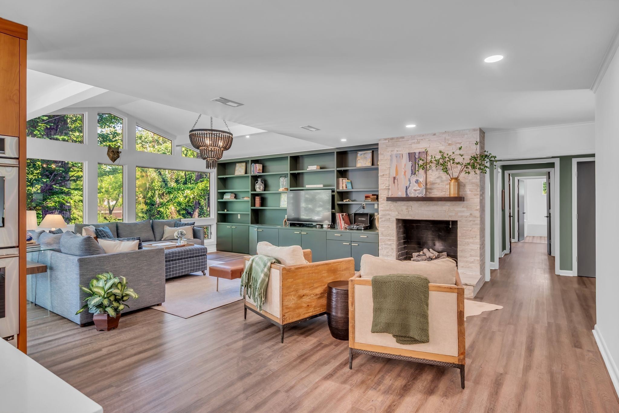 - Bookcases, Built-in Features, Entrance Foyer, Extra Closets, Open Floorplan, Redecorated, Walk-In Closet(s), Kitchen Island