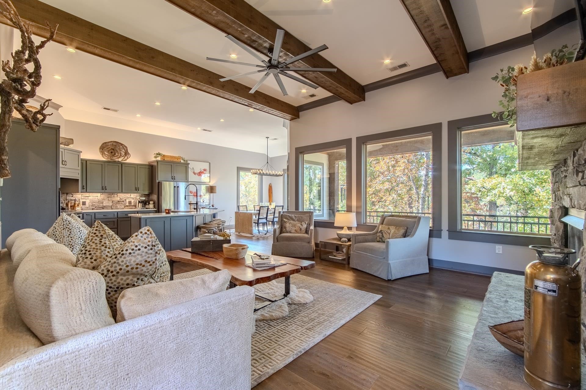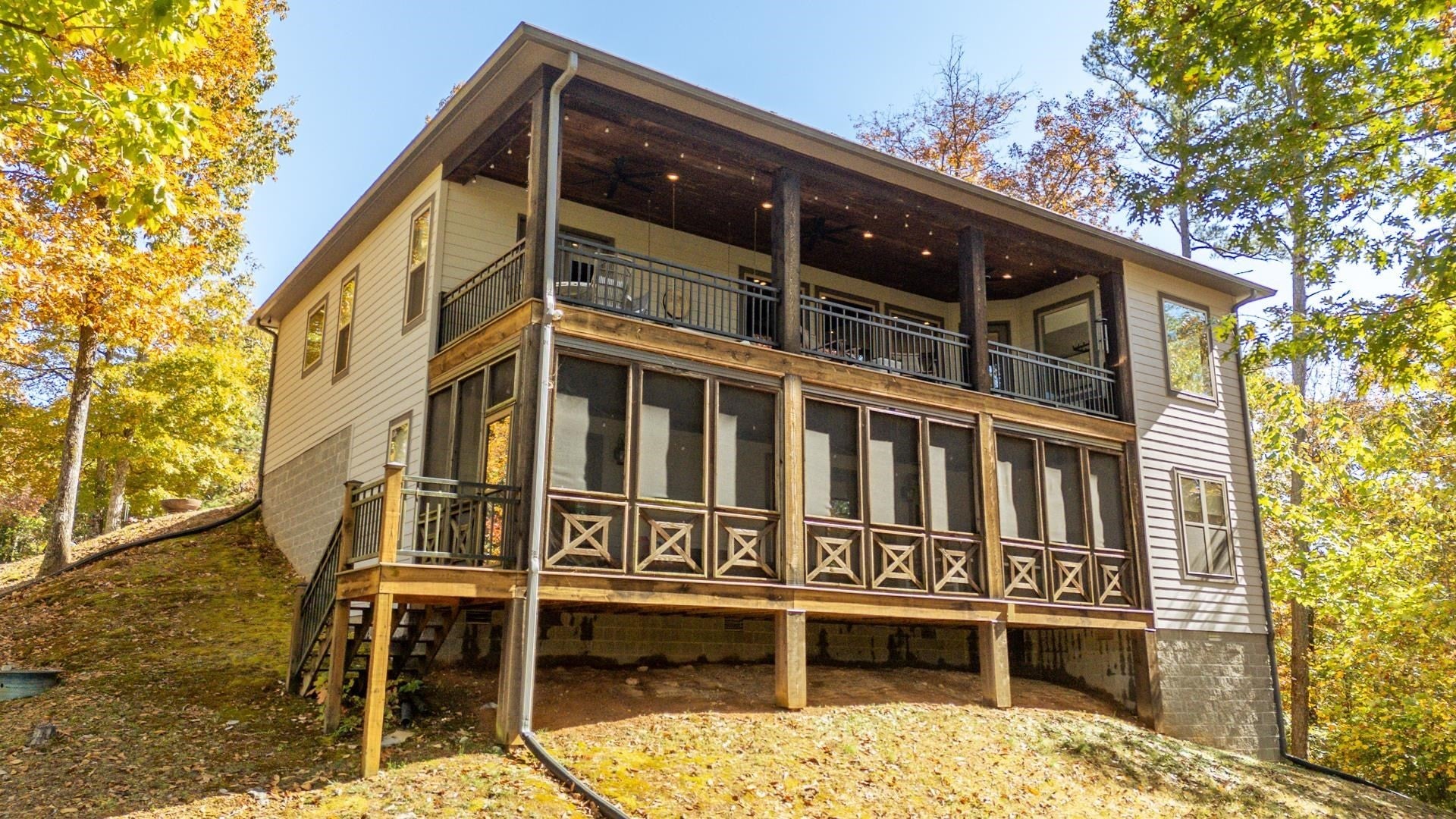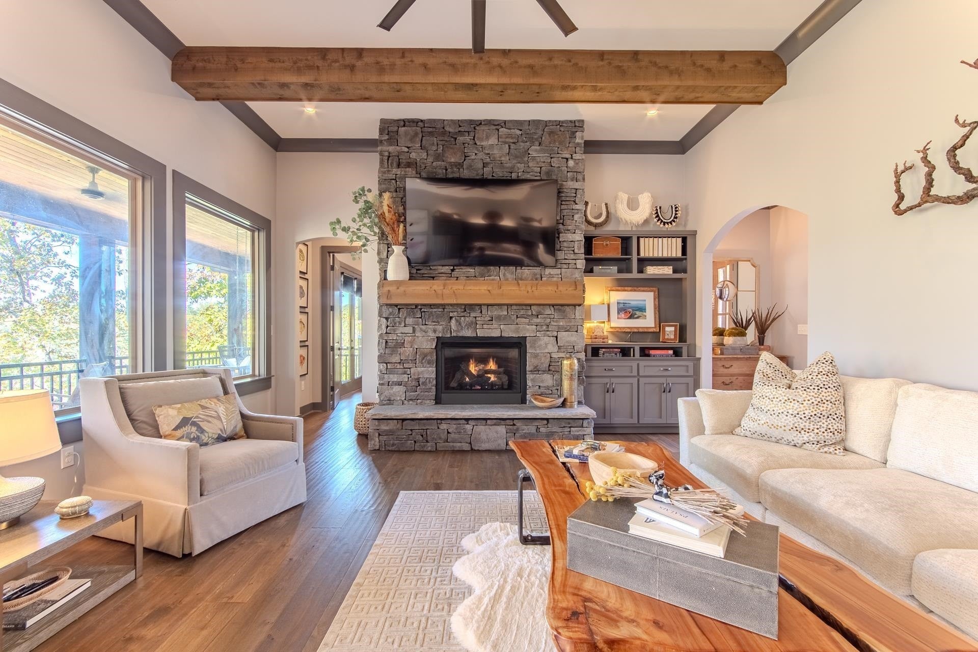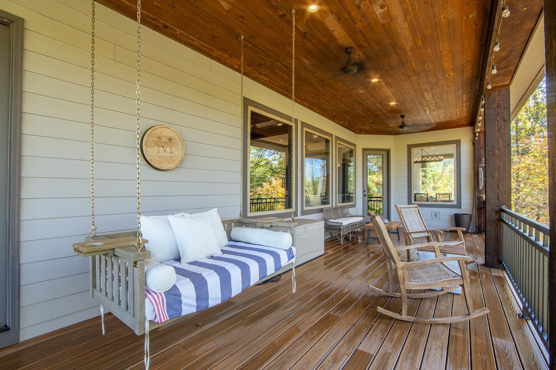 Nestled within the prestigious gated community of The Preserve at Pickwick, this stunning four-bedroom home offers luxurious living. The main level welcomes you with an open-concept design, showcasing hardwood floors, a striking stone fireplace, & rustic cedar beams. The gourmet kitchen features custom cabinetry, elegant quartz countertops, & stainless steel appliances. The master suite is complete with a tile shower & heated floors. Step outside onto the covered porch over looking the wooded scenery & the waters of Pickwick Lake. Boating enthusiasts will appreciate the convenience of a covered slip in a private dock, equipped w/ a ski boat lift & seadoo port. The lower level is designed for relaxation & entertainment, boasting a spacious den/media area, three additional bedrooms, & a full bath. Enjoy the outdoors year around on the large screened porch. Enjoy access to amenities including, clubhouse w/ swimming pool, golf simulator, HydroMassage, putt-putt, pickleball, tennis & more!