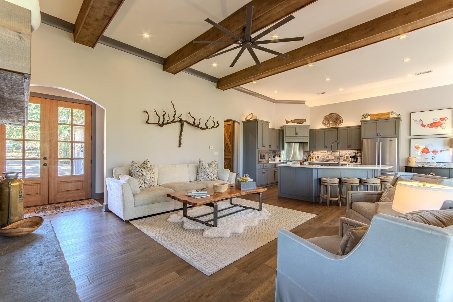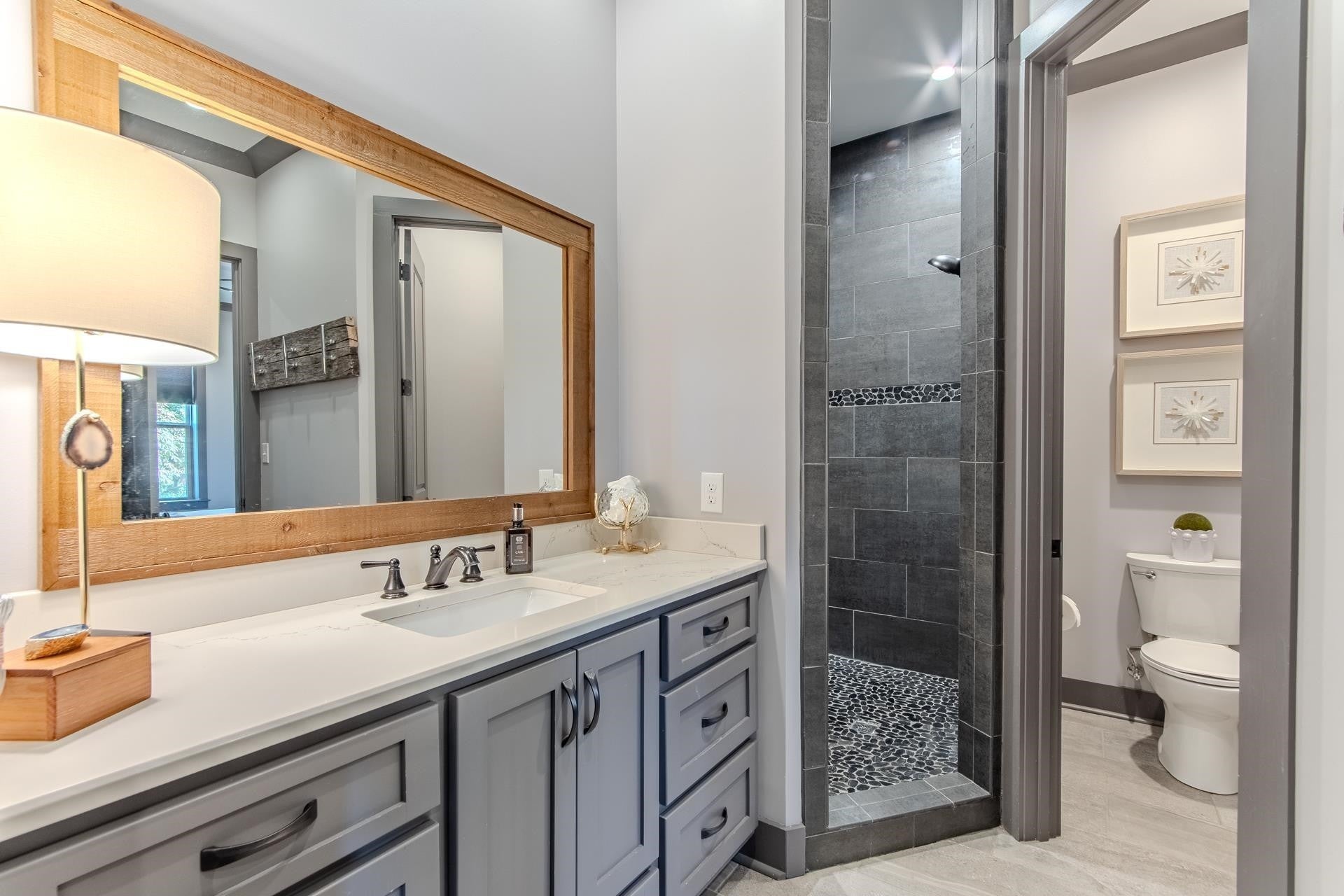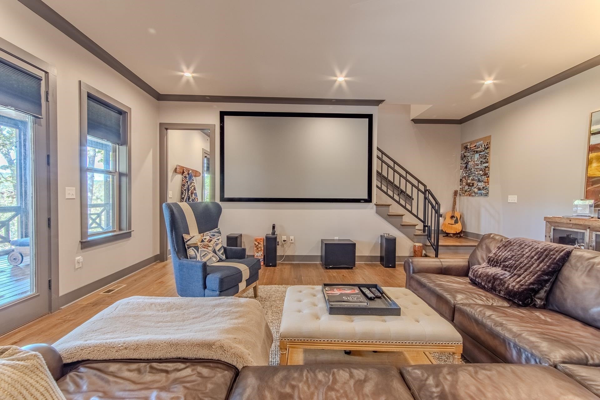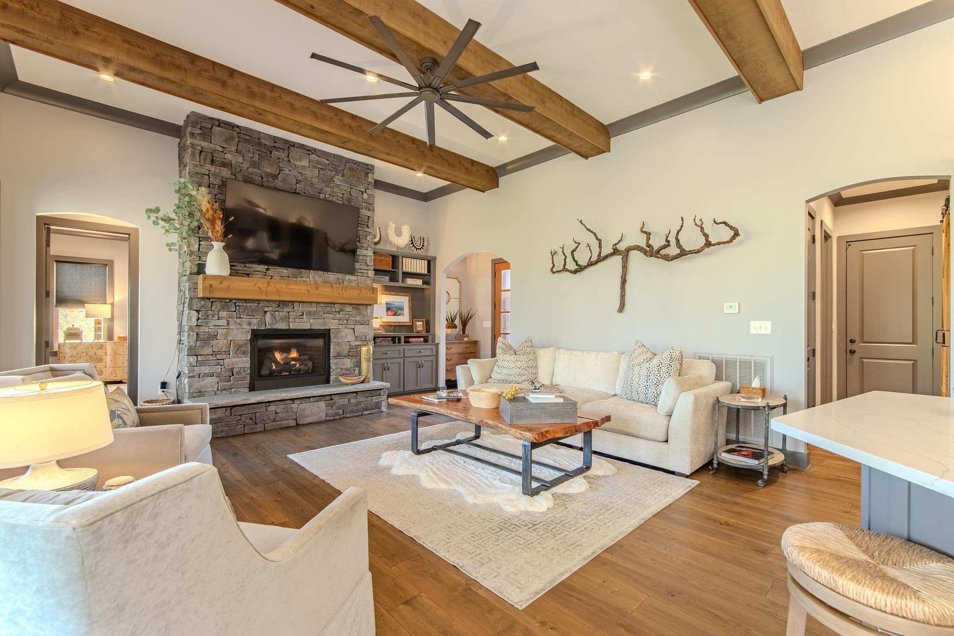 Nestled within the prestigious gated community of The Preserve at Pickwick, this stunning four-bedroom home offers luxurious living. The main level welcomes you with an open-concept design, showcasing hardwood floors, a striking stone fireplace, & rustic cedar beams. The gourmet kitchen features custom cabinetry, elegant quartz countertops, & stainless steel appliances. The master suite is complete with a tile shower & heated floors. Step outside onto the covered porch over looking the wooded scenery & the waters of Pickwick Lake. Boating enthusiasts will appreciate the convenience of a covered slip in a private dock, equipped w/ a ski boat lift & seadoo port. The lower level is designed for relaxation & entertainment, boasting a spacious den/media area, three additional bedrooms, & a full bath. Enjoy the outdoors year around on the large screened porch. Enjoy access to amenities including, clubhouse w/ swimming pool, golf simulator, HydroMassage, putt-putt, pickleball, tennis & more!