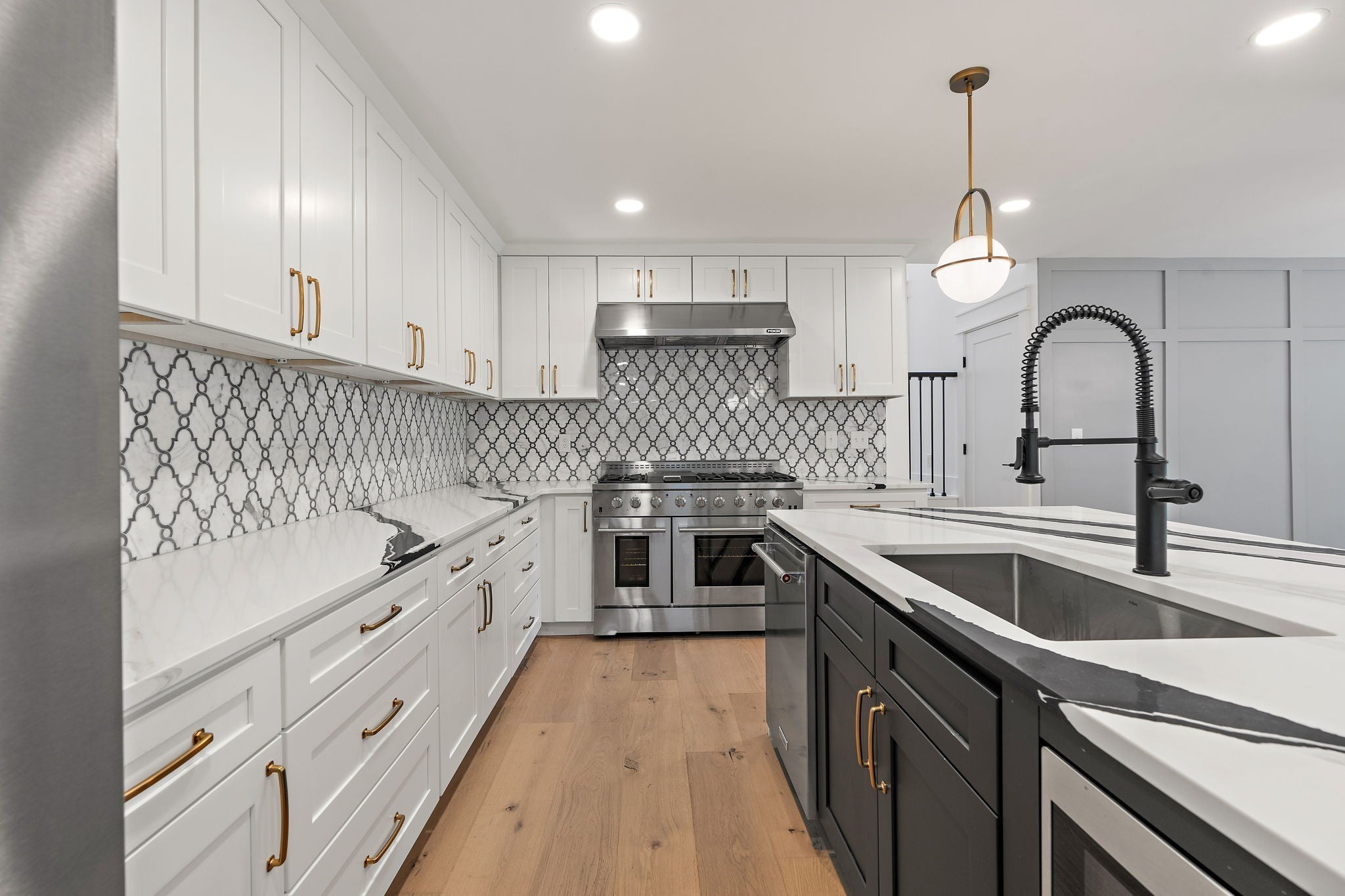 - Double Oven, Gas Oven, Gas Range, Dishwasher, Microwave, Refrigerator, Stainless Steel Appliance(s)