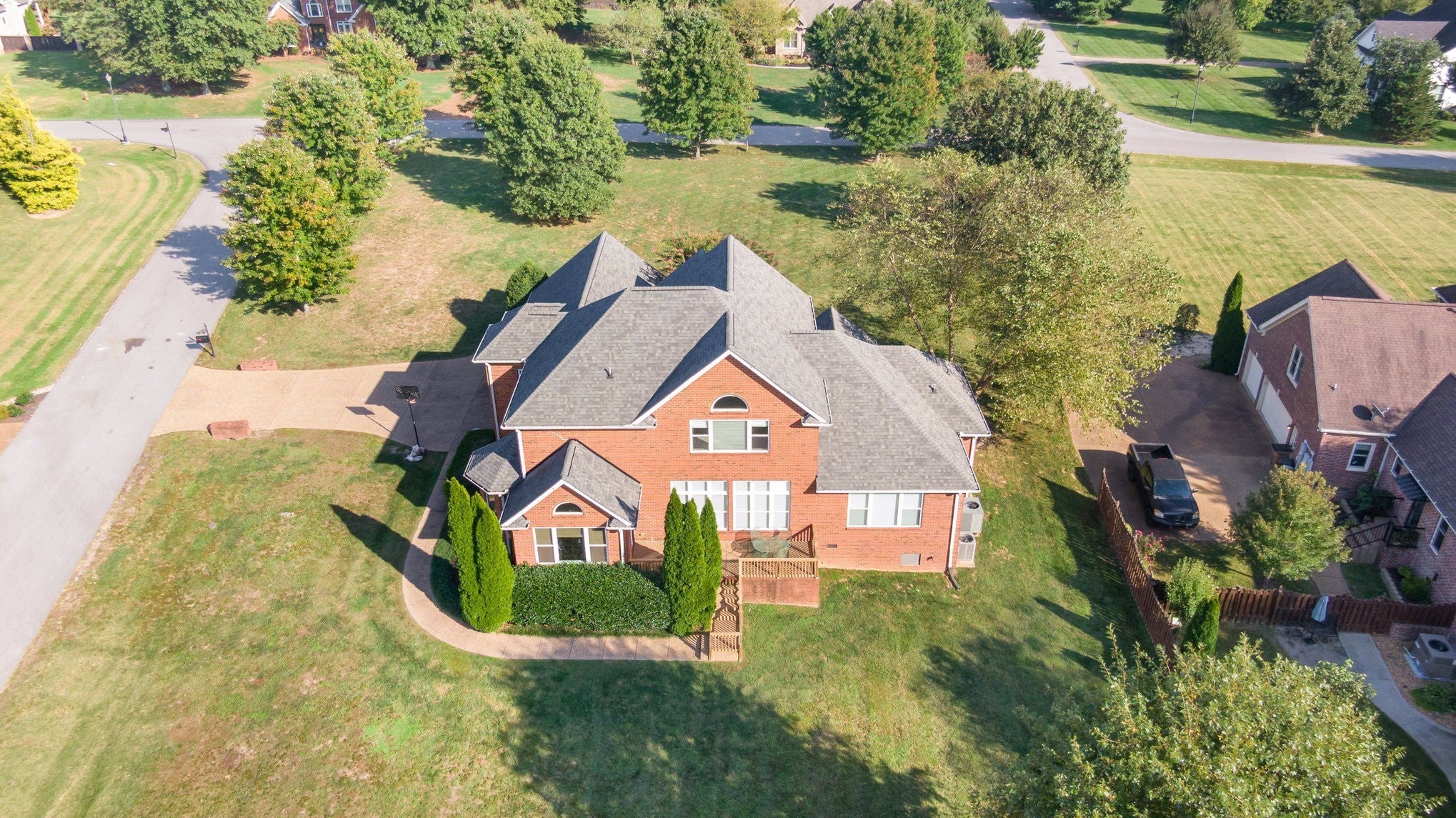 OPEN HOUSE SUN NOV 16TH 2-4 PM!!! Welcome to this stunning all-brick home on a desirable flat corner lot, offering timeless curb appeal and thoughtful custom builder design. This home sits on over an acre, perfect for a pool or extra space to fit your dreams. Step inside to an open-concept layout filled with natural light pouring in from oversized windows, creating a bright and inviting atmosphere throughout. The spacious kitchen is the heart of the home, featuring a large island perfect for entertaining, ample seating, and multiple dining spaces including a formal dining room. Whether hosting gatherings or enjoying everyday meals, this home offers the perfect balance of function and style. The main-level owner’s suite is a true retreat with two generous walk-in closets and a spa-like bathroom complete with double vanities. Upstairs, you’ll find two oversized bedrooms along with two flexible spaces—choose between two bonus rooms or easily convert one into an additional bedroom to suit your needs. With its versatile layout, elegant finishes, and abundant natural light, this home is designed for both comfortable living and entertaining. Schedule your showing today!
