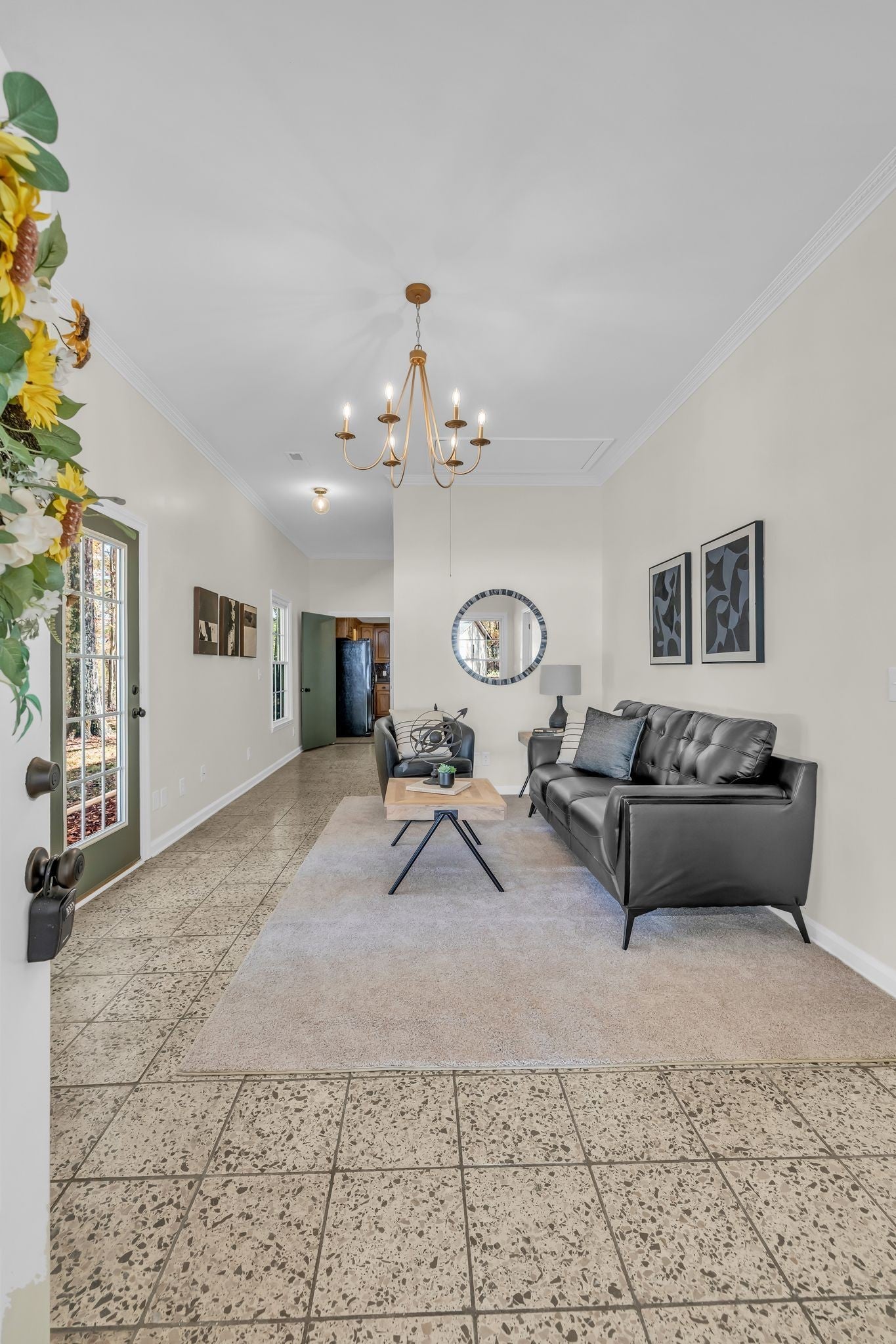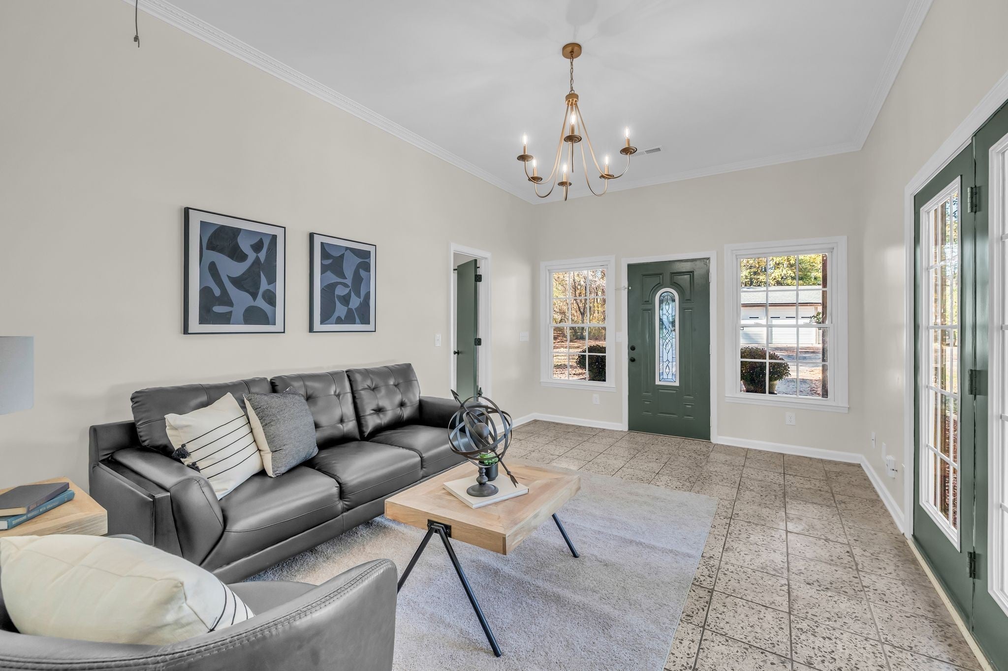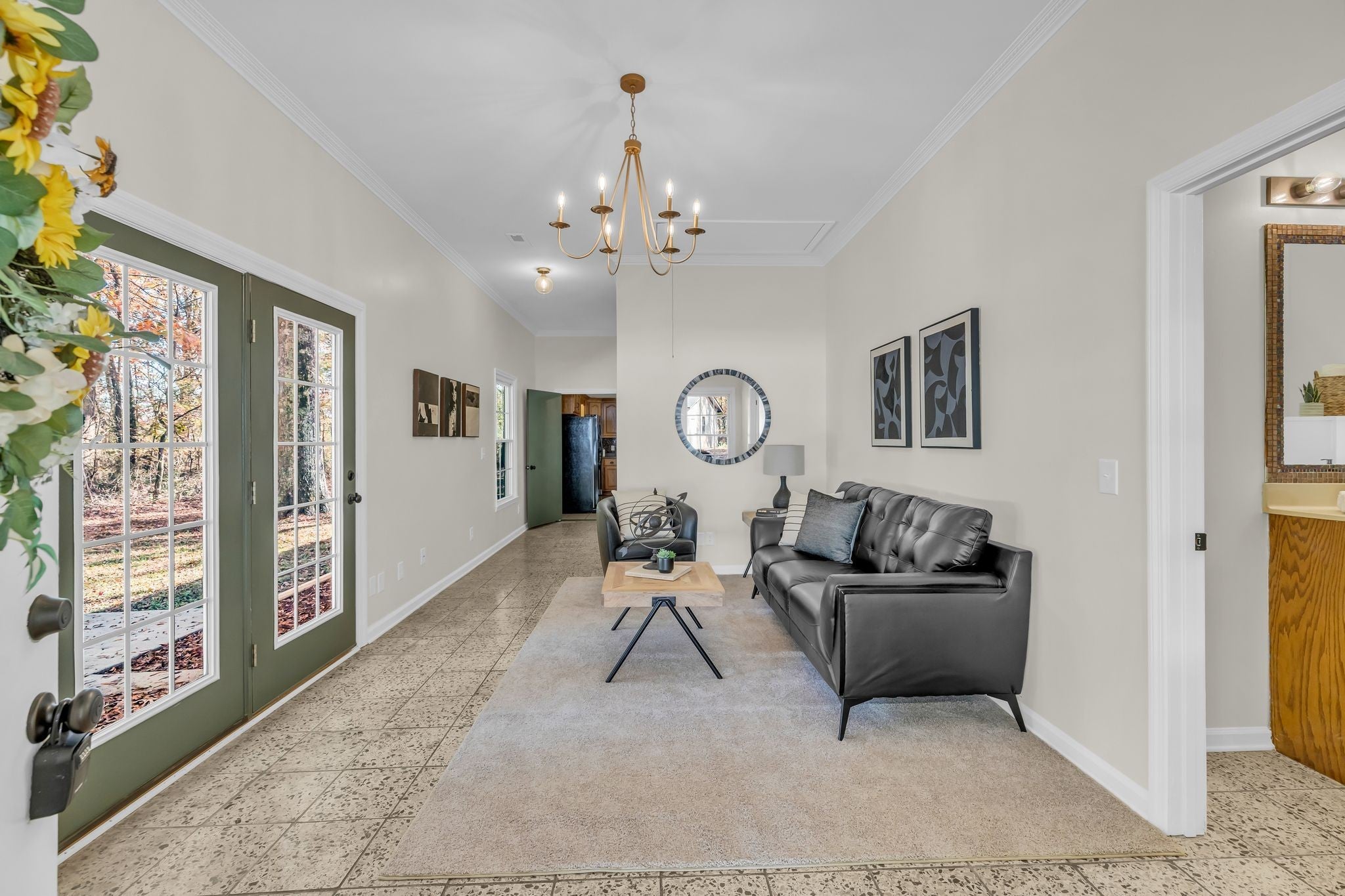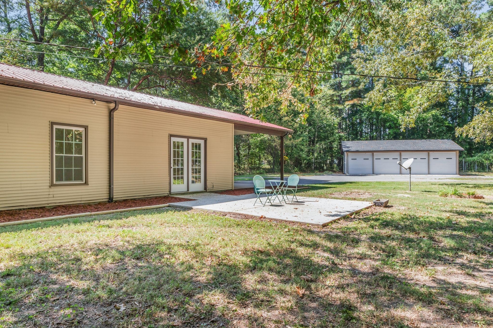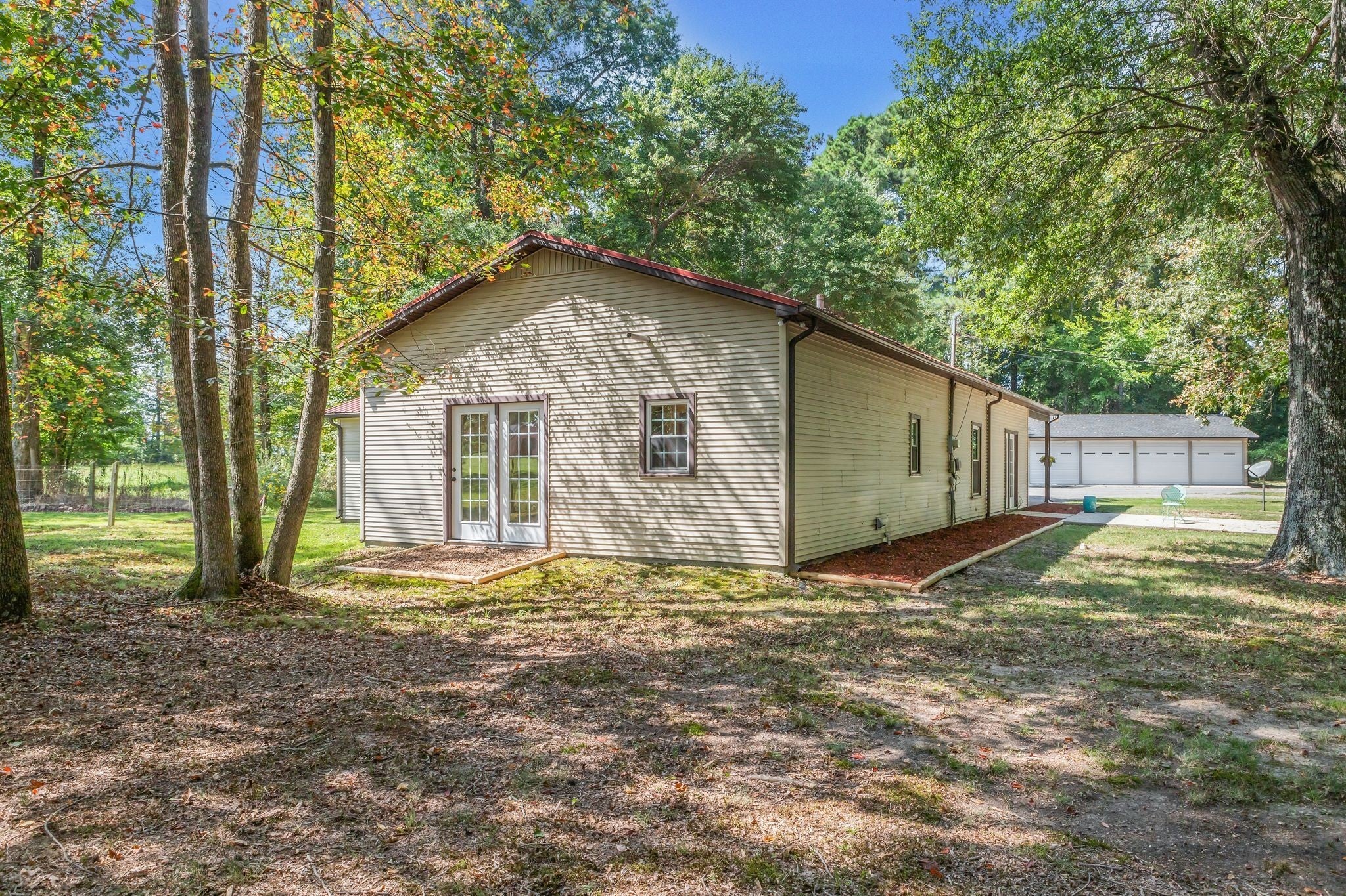 All boxes checked - beautifully renovated 3 bedroom 2 bathroom home, detached 4 car garage, 1.4 acre lot with a winding driveway through mature trees and with the home tucked back in the rear, it feels like your own private retreat. The home has 10 foot ceilings which makes it feel so much larger with a flexible layout that could allow a home office. So many updates: fresh paint top to bottom, new modern light fixtures, fresh landscaping, 1,000 gallon septic tank just cleaned out, brand new roof on the garage, new underground power ran to garage, new refrigerator, beautiful solid wood kitchen cabinets, two water heaters, metal roof, windows + HVAC in great condition, an additional storage shed right off the front porch. Intricate crown molding in many of the rooms accentuate the tall ceiling height. This home truly has it all - 1,742 sq feet, large closets in the bedrooms, no city taxes with a Tullahoma address in Franklin county, the incredible 4 car garage, tree lined driveway - all less than 1 mile to North Lake elementary school! Not uncommon to see deer grazing on the property. Owner / agent