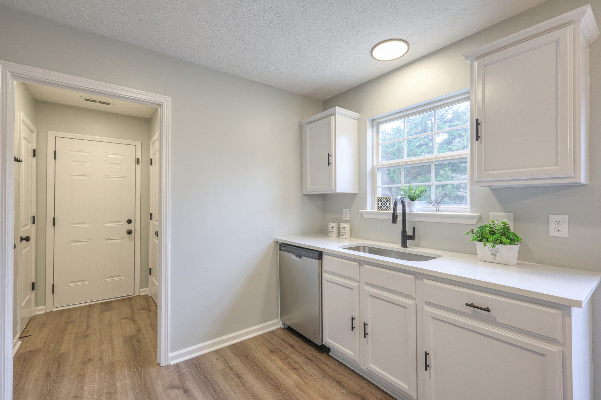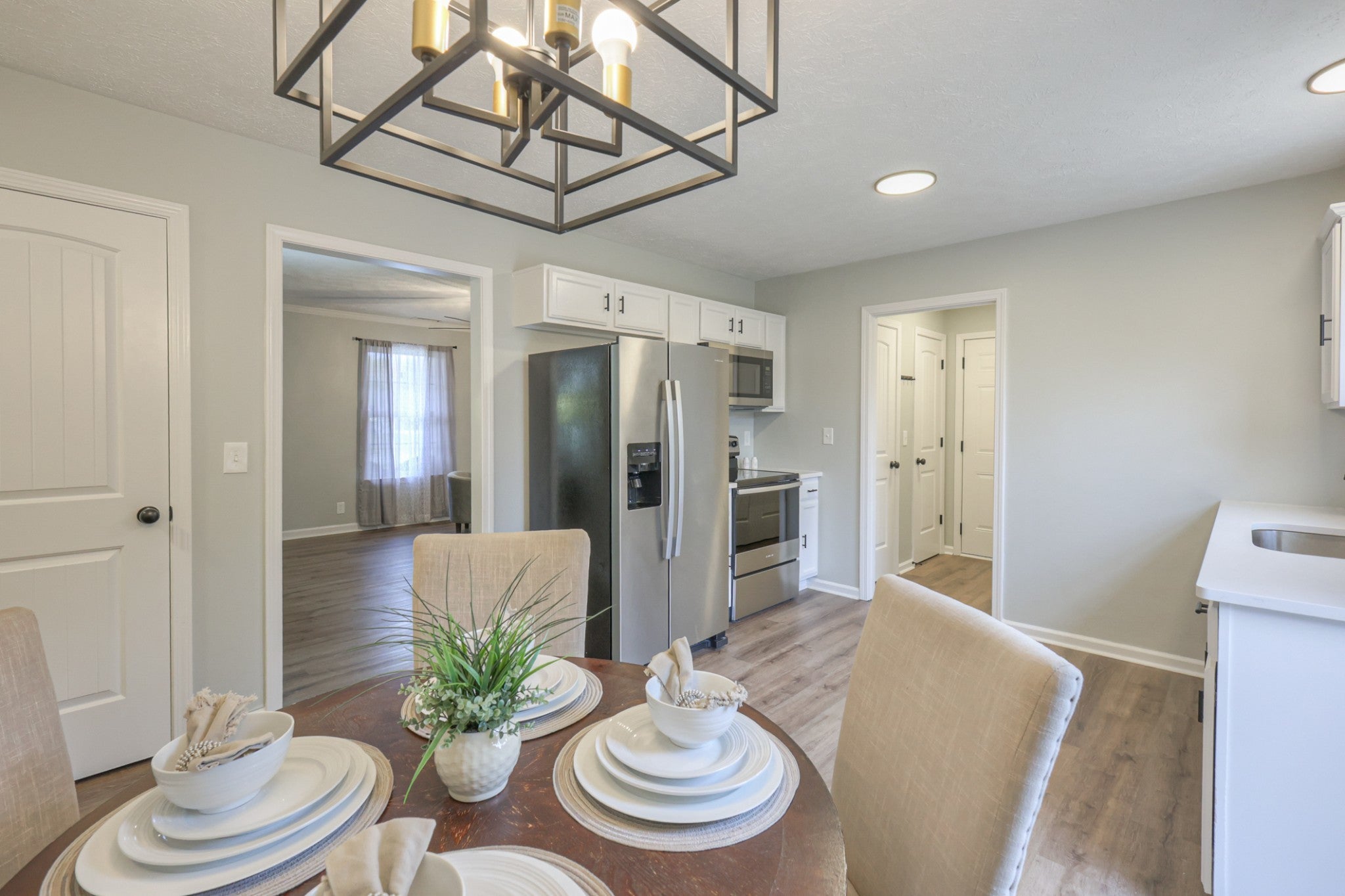 Beautifully updated and move-in ready, this 3-bed, 2-bath home offers 1,590 sq ft of comfortable living on nearly an acre (.91). Inside, enjoy updated lighting and flooring (no carpet on main level), and a bright, welcoming feel. The kitchen features white cabinetry, new countertops, stainless appliances, and modern black fixtures. Bathrooms include upgraded vanities, subway-tile surrounds, and matching black hardware for a cohesive look. Outside, a large fenced backyard provides privacy and space to relax, with a shed included. No HOA means flexibility to make it your own. Conveniently located near shopping, dining, and quick access to I-24 and 231.