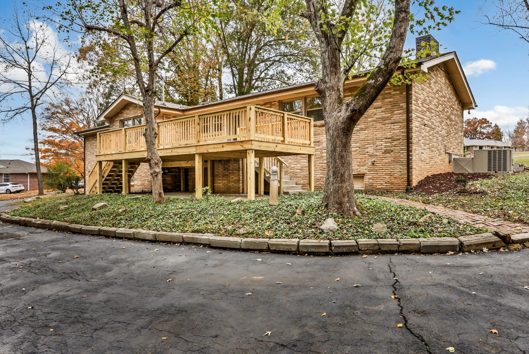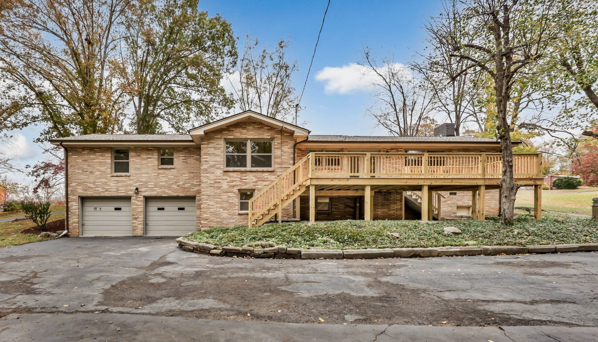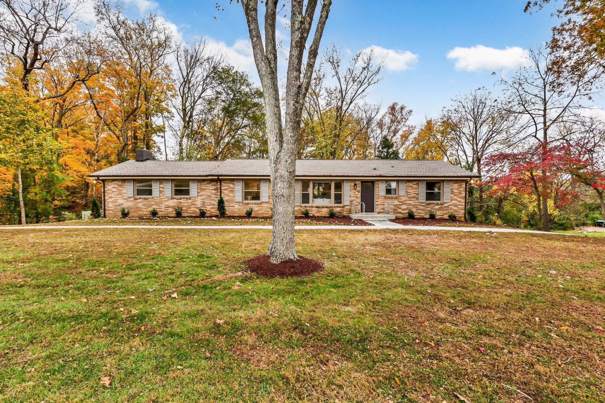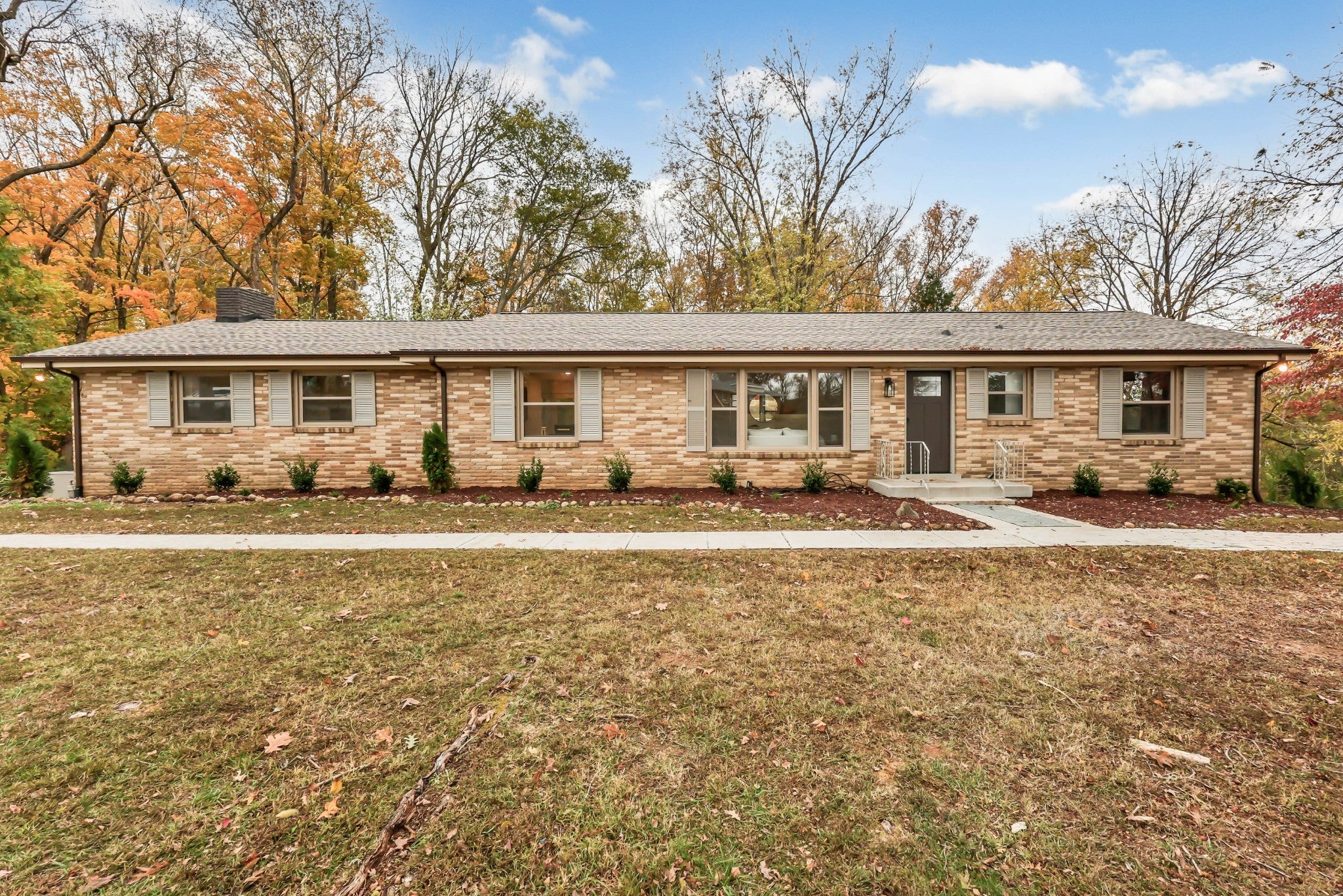 This all-brick ranch is a perfect blend of timeless character and modern design. Step inside to find gleaming hardwood floors, fresh finishes, and inviting spaces throughout. The kitchen is a showstopper—featuring new quartz countertops, new cabinetry, stainless steel appliances, a farmhouse sink, and an oversized walk-in pantry. The primary suite offers a cozy fireplace, walk-in closet, and stylishly updated bath. Every corner shines with updates: new roof, windows, flooring, bathrooms, light fixtures, landscaping, gutters, and a spacious new deck. A true laundry room with sink and storage, resurfaced wrap-around driveway, and a 20x23 storm shelter in the sub-basement with poured concrete walls complete the package. Move-in ready and beautifully redone from top to bottom.