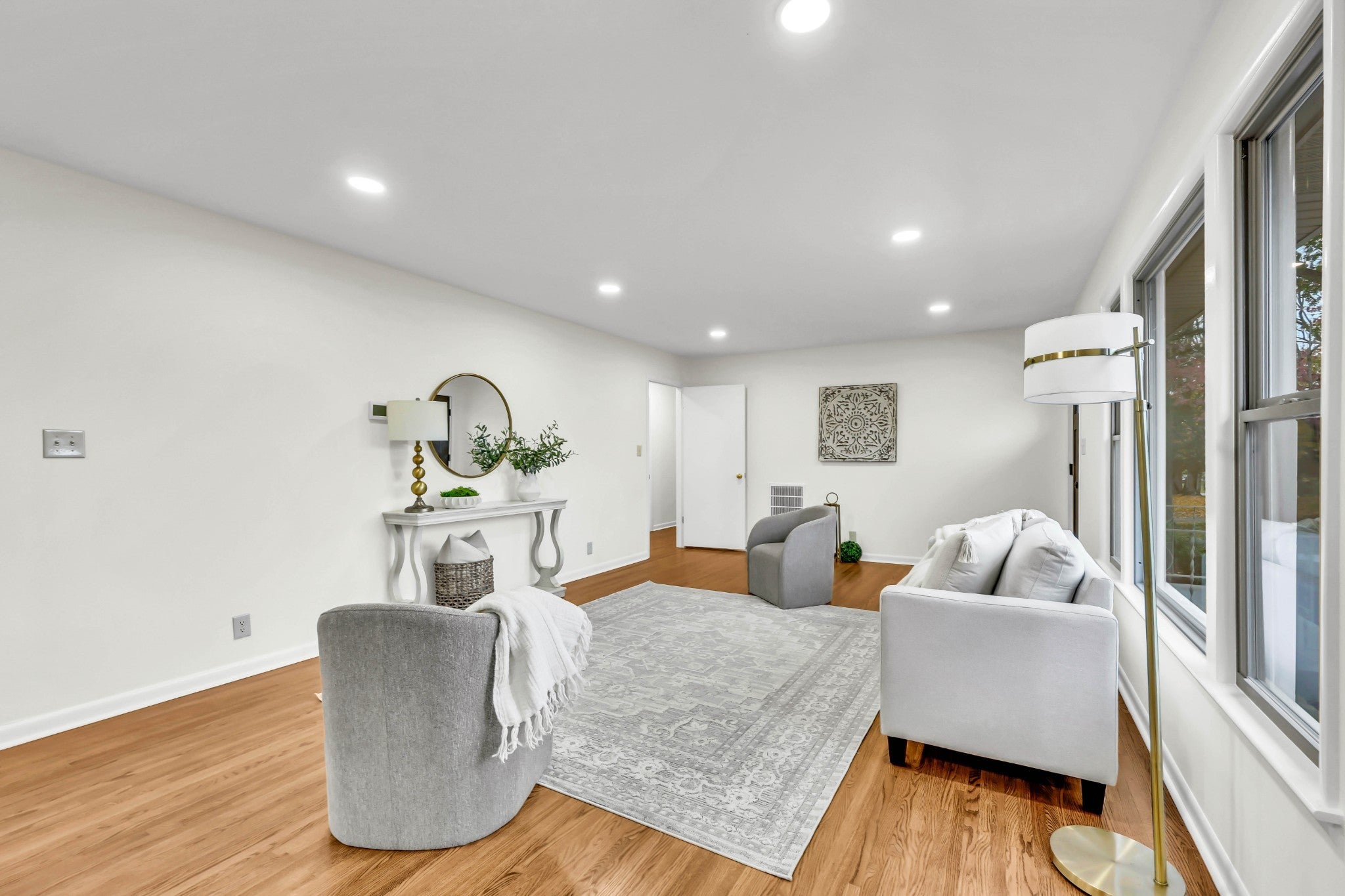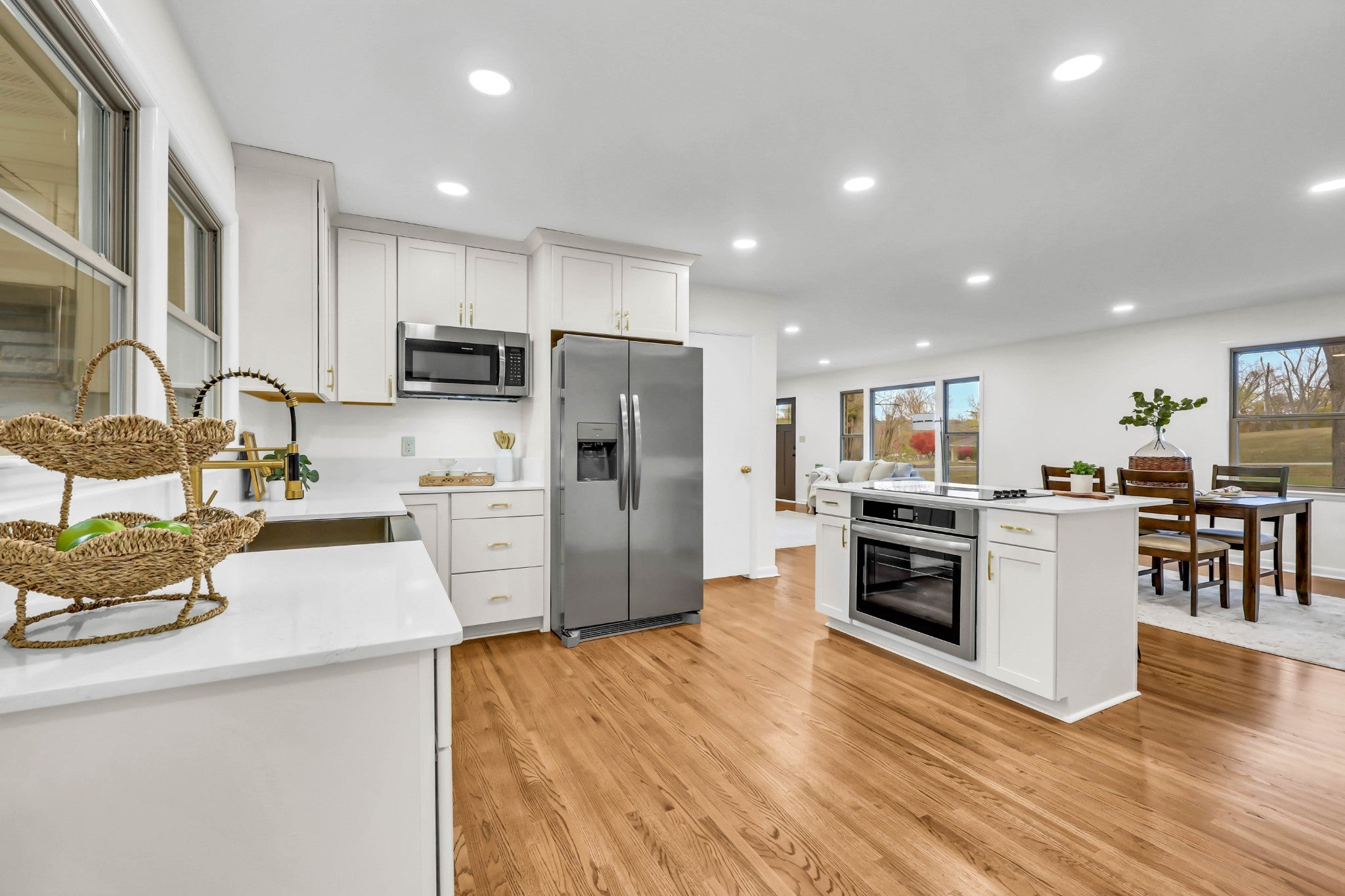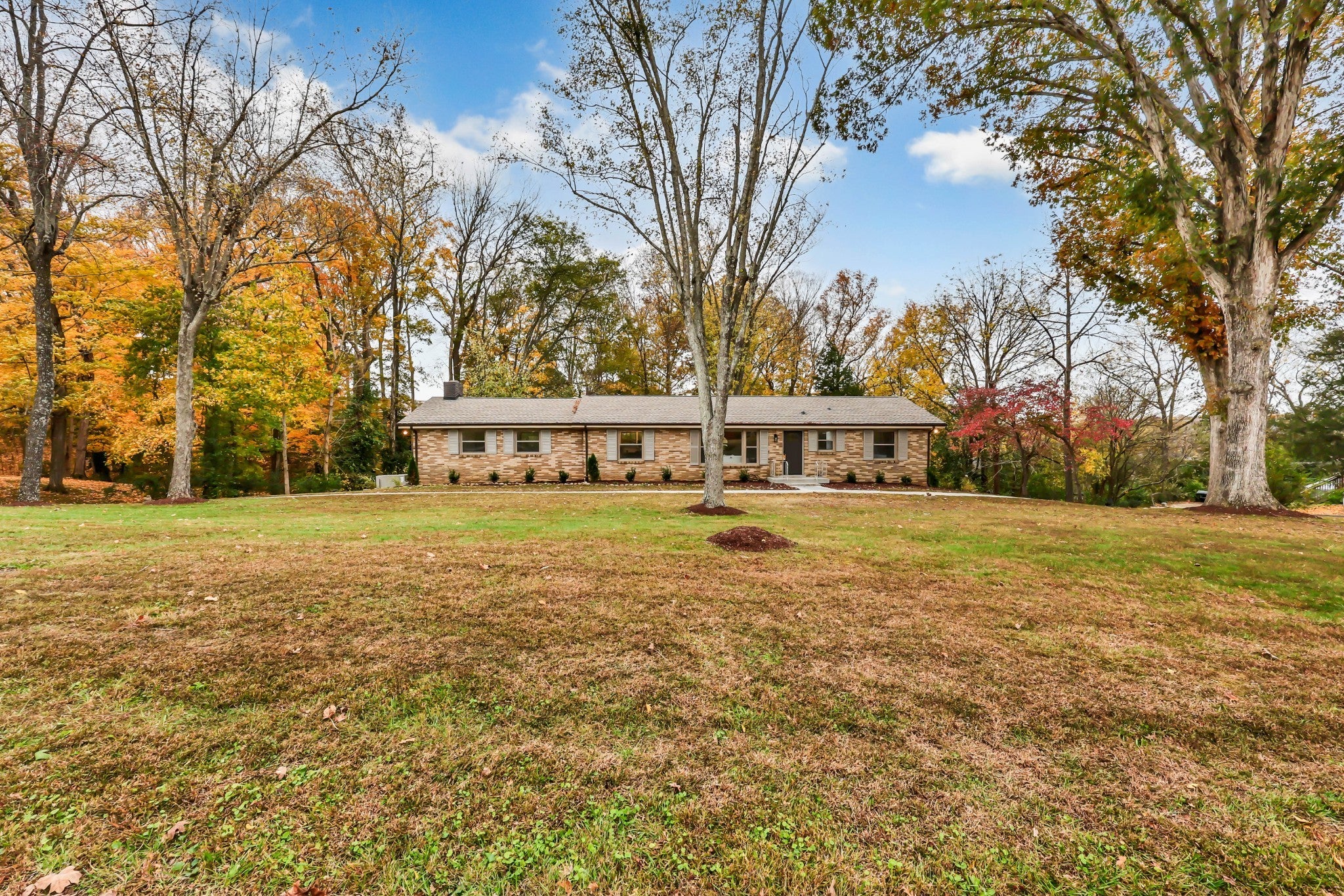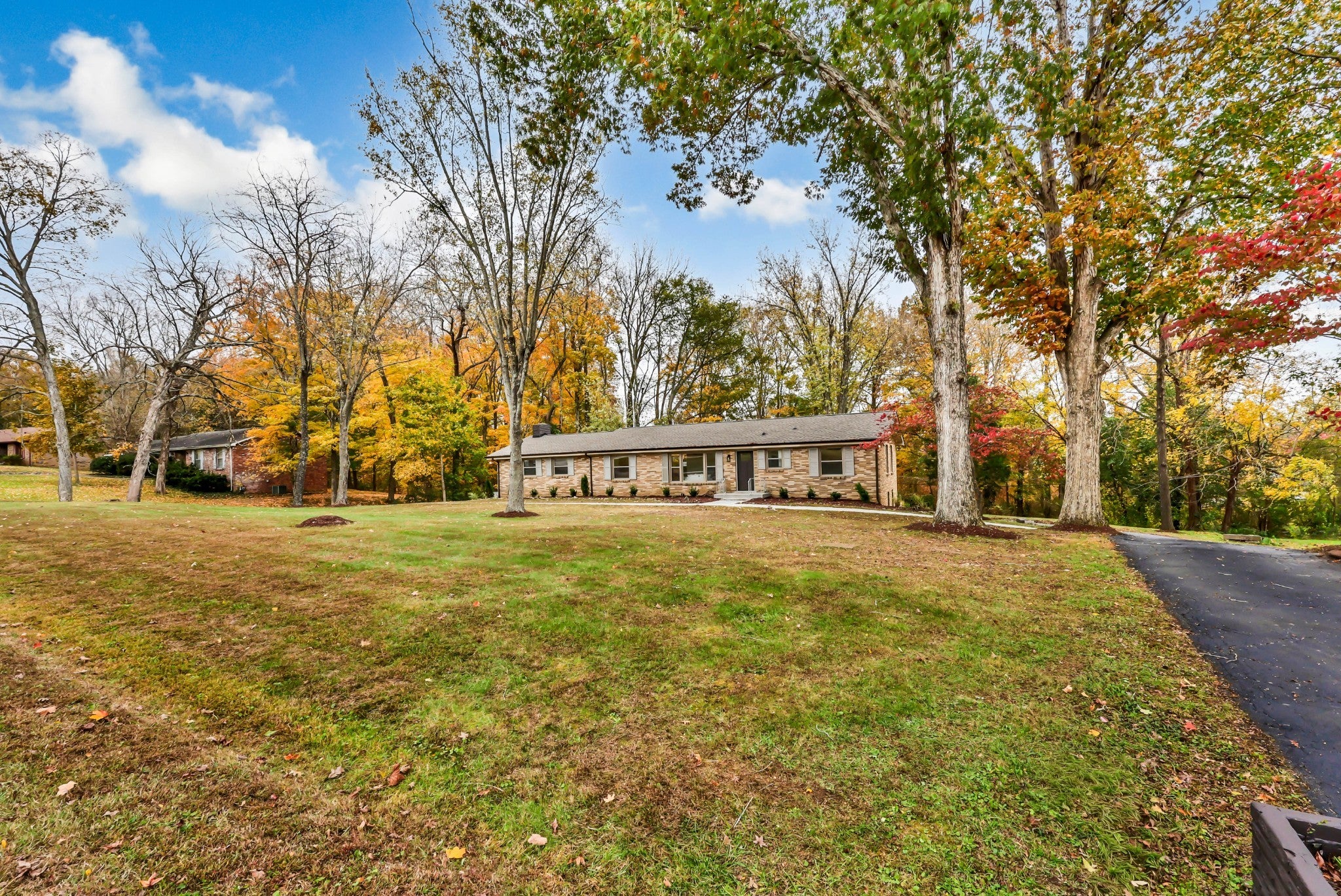 This all-brick ranch is a perfect blend of timeless character and modern design. Step inside to find gleaming hardwood floors, fresh finishes, and inviting spaces throughout. The kitchen is a showstopper—featuring new quartz countertops, new cabinetry, stainless steel appliances, a farmhouse sink, and an oversized walk-in pantry. The primary suite offers a cozy fireplace, walk-in closet, and stylishly updated bath. Every corner shines with updates: new roof, windows, flooring, bathrooms, light fixtures, landscaping, gutters, and a spacious new deck. A true laundry room with sink and storage, resurfaced wrap-around driveway, and a 20x23 storm shelter in the sub-basement with poured concrete walls complete the package. Move-in ready and beautifully redone from top to bottom.