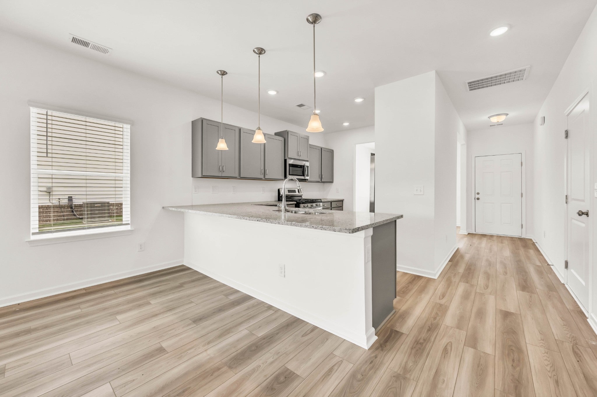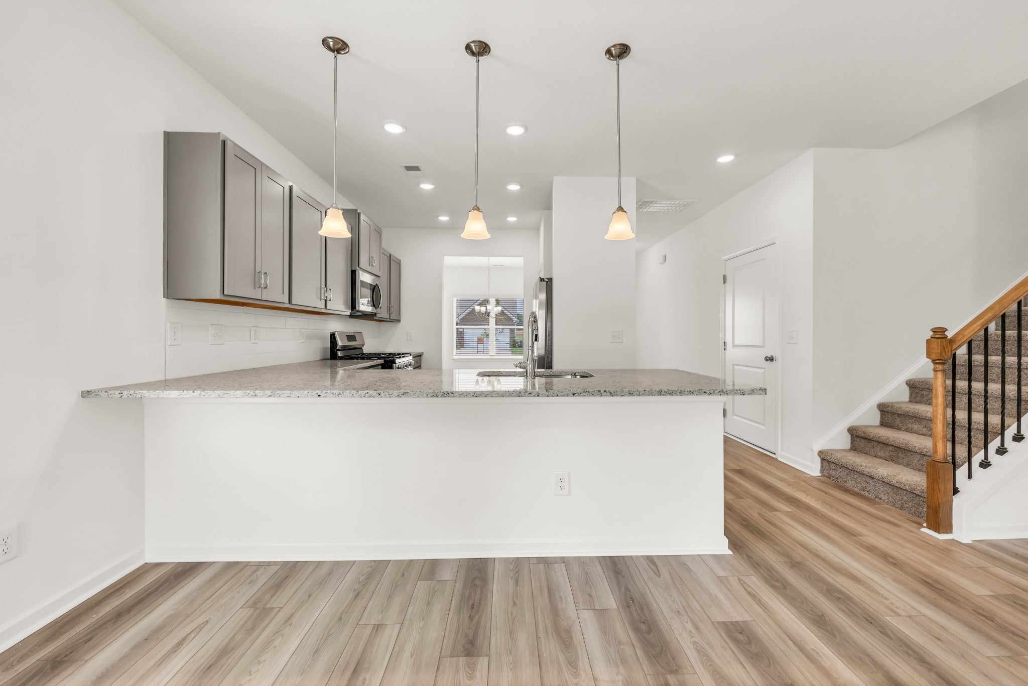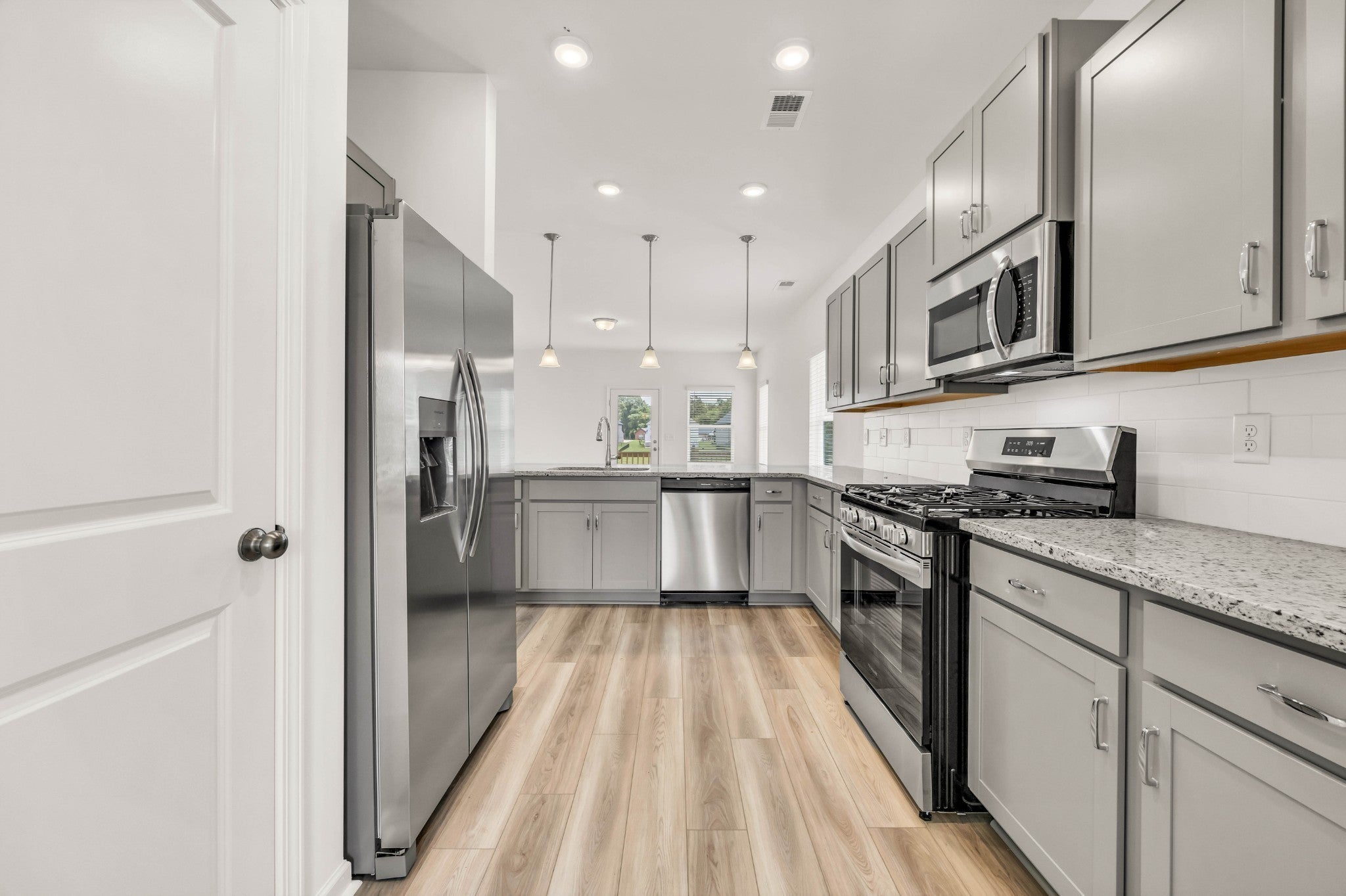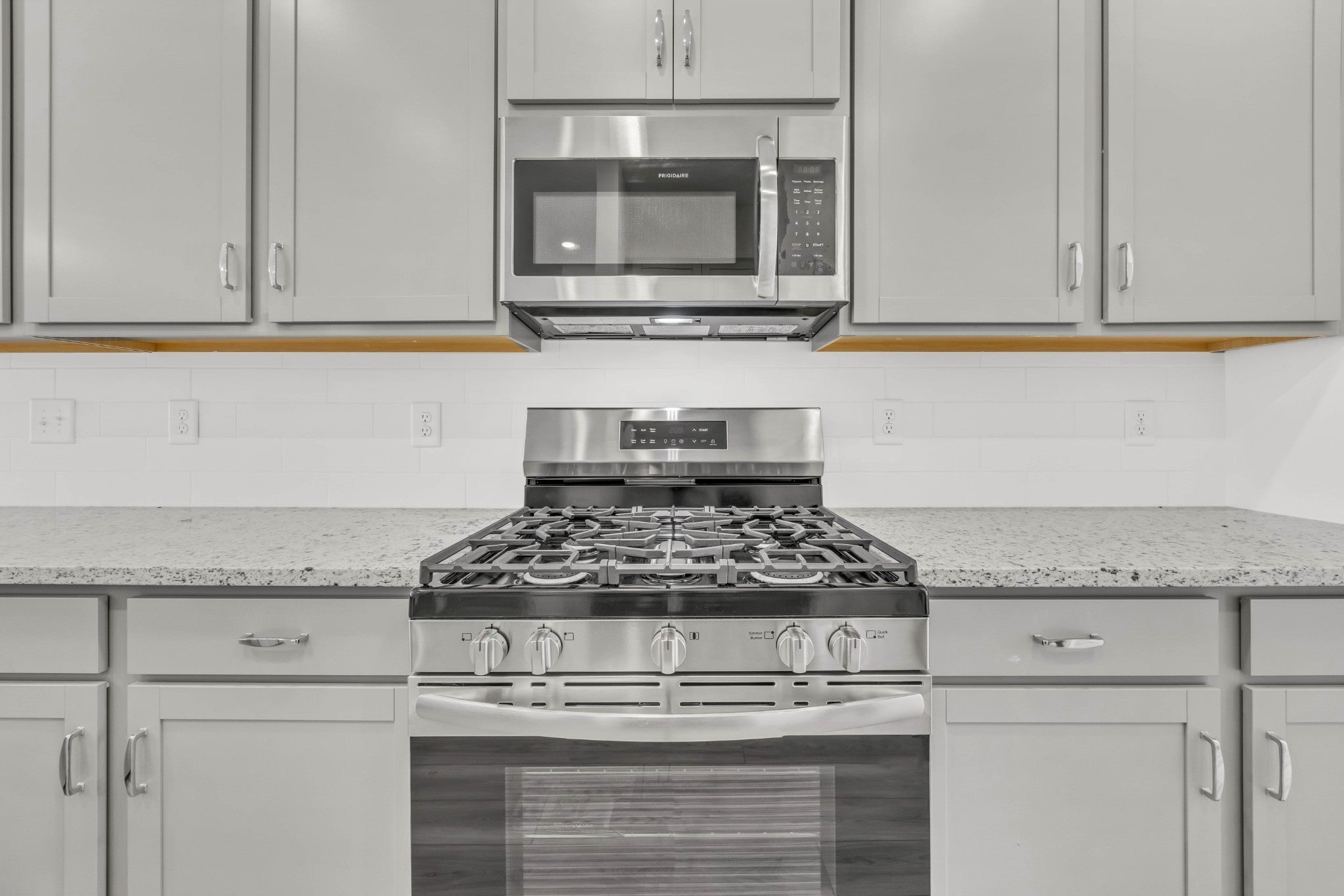 - Gas Range, Dishwasher, Disposal, Microwave, Refrigerator, Stainless Steel Appliance(s)