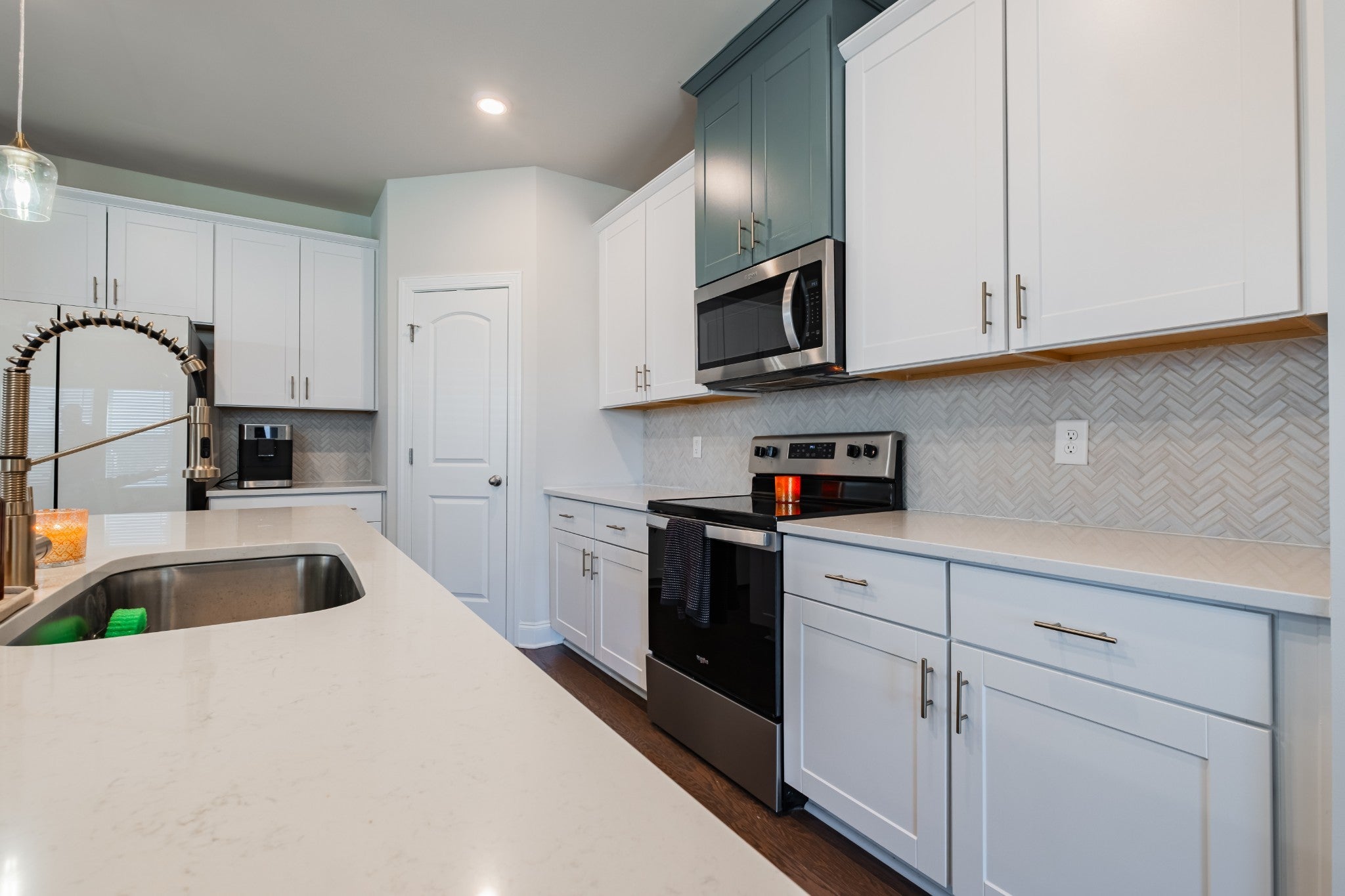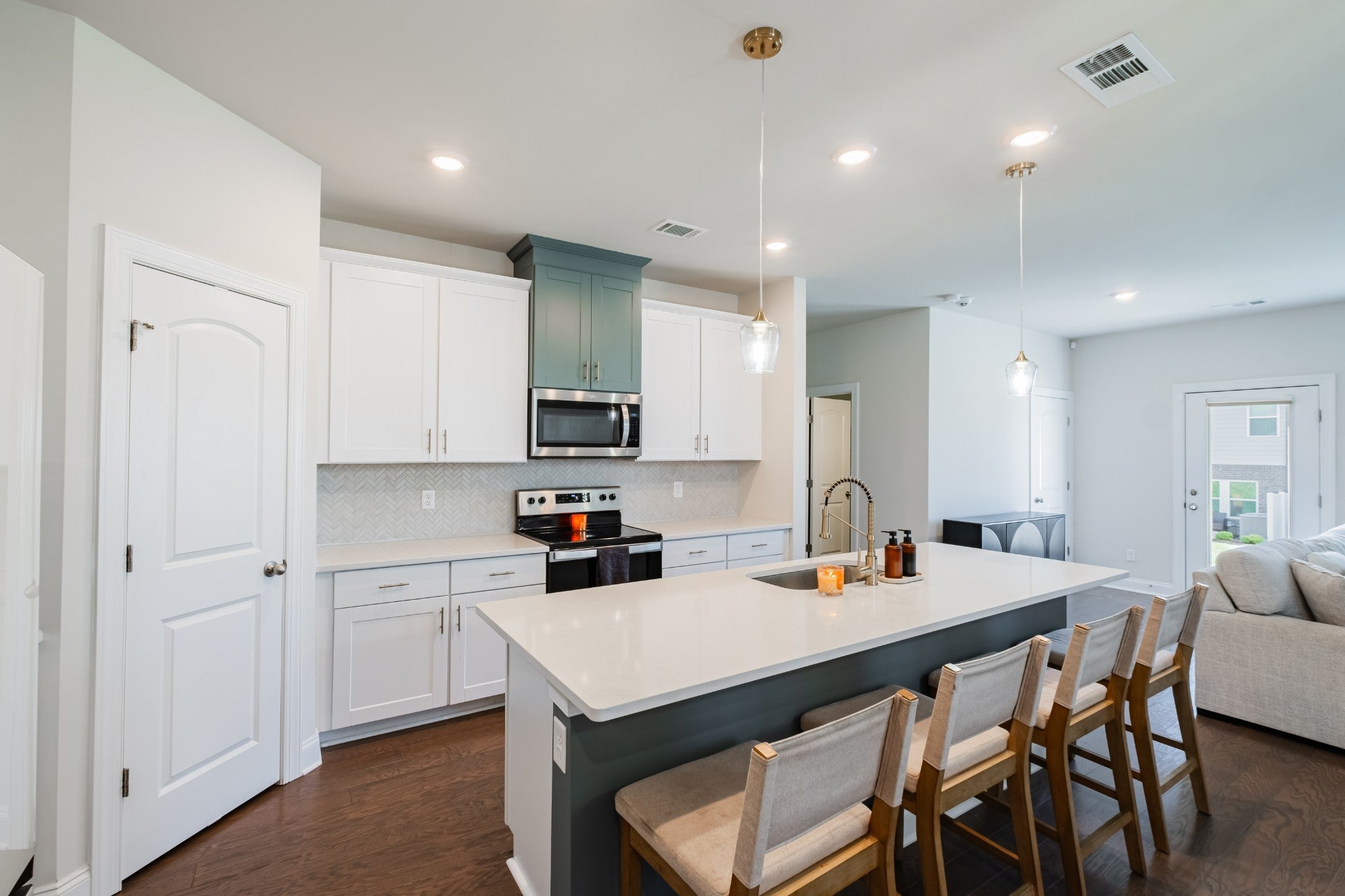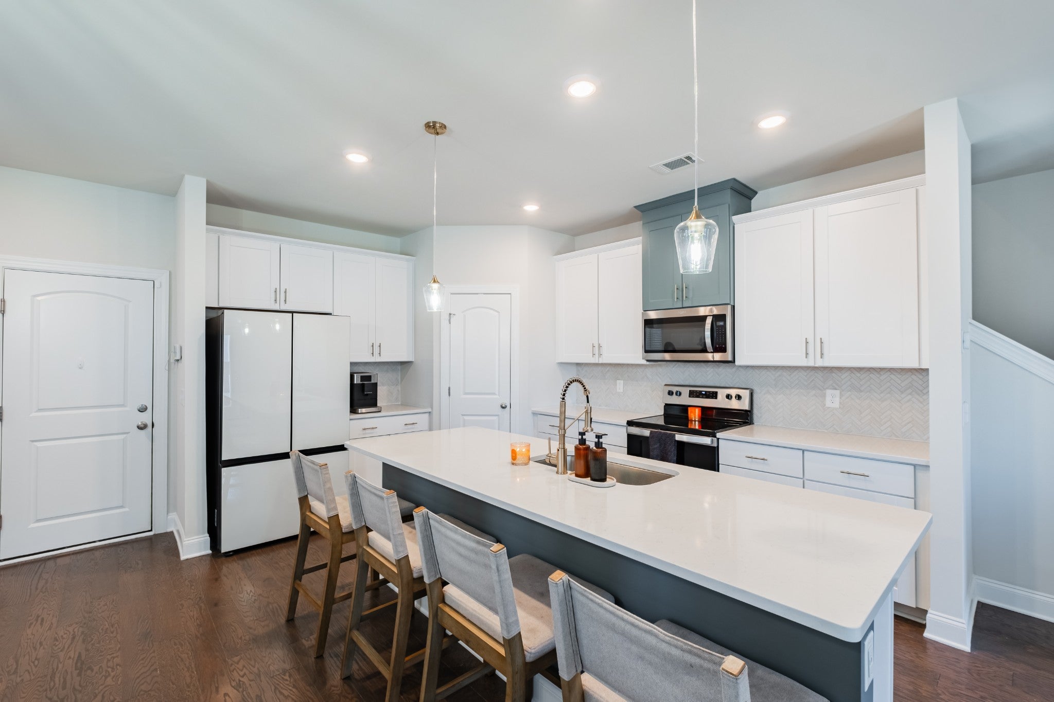 Stylish End Unit with Rare Outdoor Space in West End Station. This upgraded 1,861-sq-ft end unit stands out with its extra light, curb appeal, and private outdoor living space you won’t find elsewhere. The open main level feels bright and social, with a kitchen featuring quartz counters, a mix of white and blue cabinetry, and a custom herringbone tile backsplash. Upstairs, the loft works perfectly as an office or reading nook, and the primary suite includes a spacious layout and tile shower. Step outside to your inviting patio with added landscaping, ideal for morning coffee or evening get-togethers. Located on a dead-end street just a short stroll from the community pool. Fresh paint, professionally cleaned carpets, and updated hardware and fixtures make it move-in ready. Lebanon continues to grow with new shopping, restaurants, and entertainment coming this year and beyond. 1% lender credit with preferred lender.