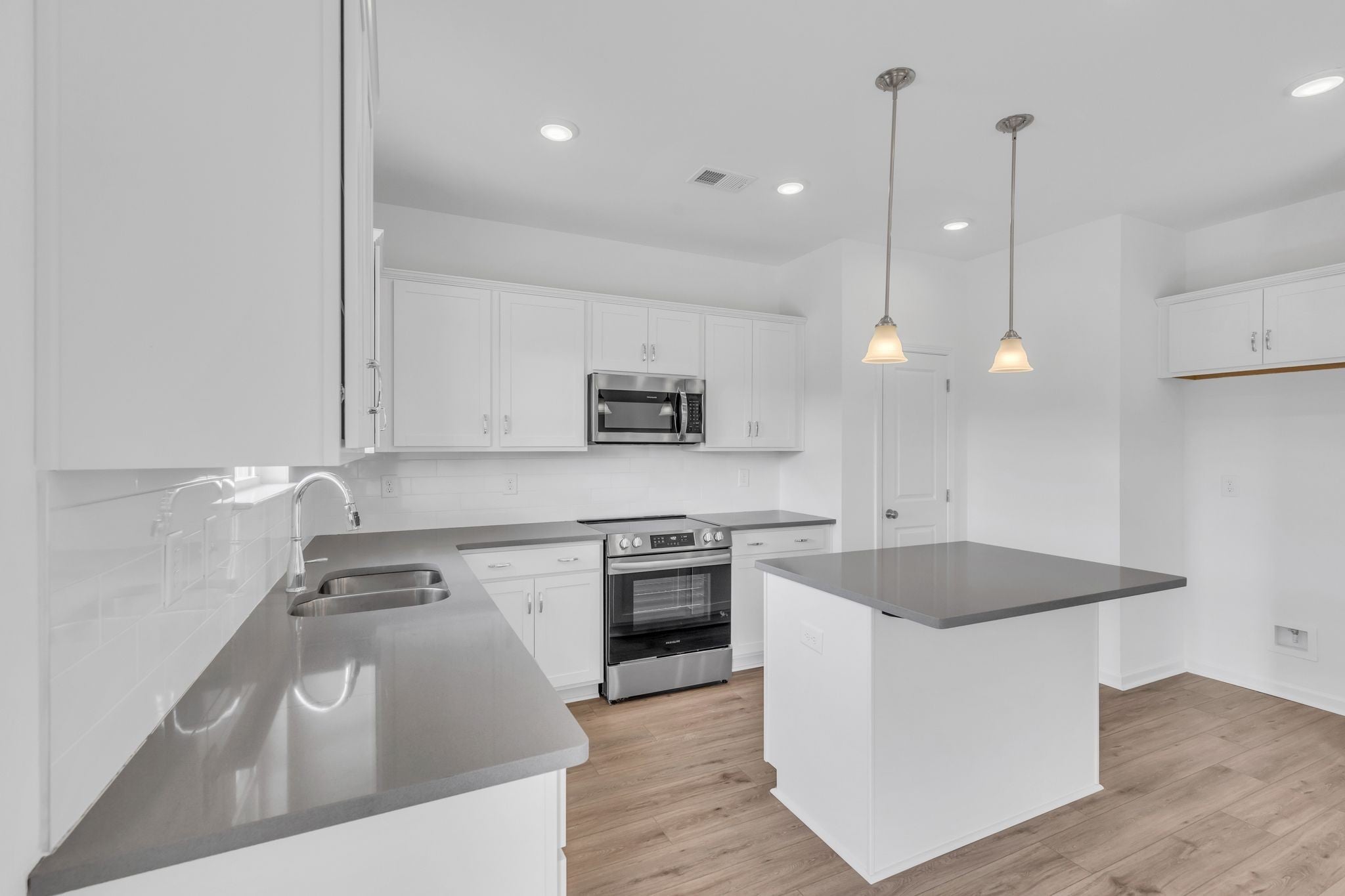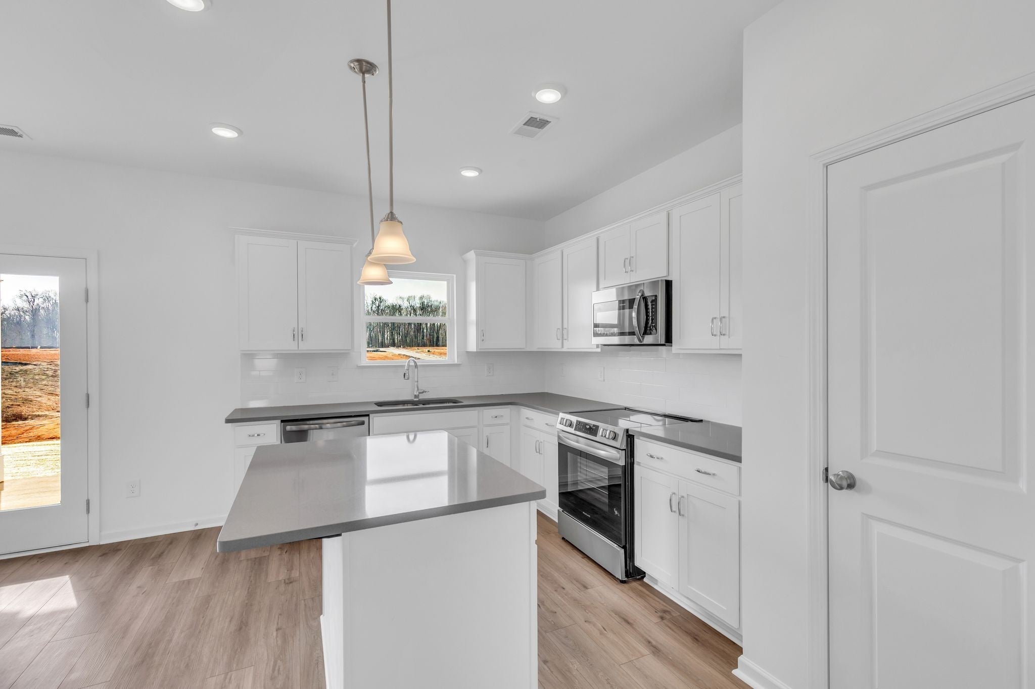 - Electric Range, Dishwasher, Disposal, Microwave, Stainless Steel Appliance(s)