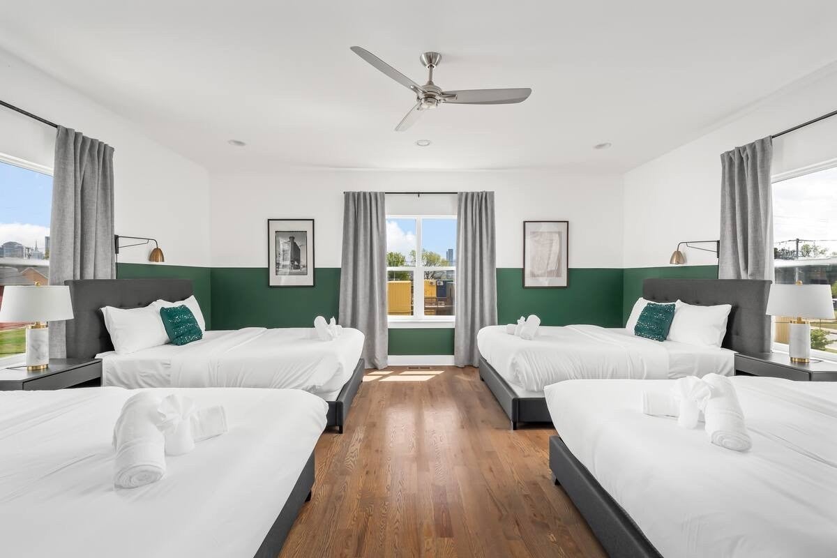 This home is a stunning, income-producing modern property in the heart of Nashville—offering a rare blend of luxury, design, and location. This three-level, four-bedroom, four-bathroom home with a large bonus room was built for both comfort and entertainment, featuring a bold, music-inspired interior and an open-concept layout perfect for hosting or relaxing. The chef’s kitchen includes stainless steel appliances, quartz countertops, and custom cabinetry, opening to a spacious living and dining area ideal for gatherings. Upstairs, the primary suite boasts a walk-in closet and spa-style bath, while the massive third-floor bonus room offers four queen beds and lounge space—perfect for guests or short-term rentals. With high-speed fiber internet, a 65” 4K Smart TV, in-home laundry, and free parking, every detail is turnkey and professionally designed. Located just minutes from Broadway, Vanderbilt University, and Nashville’s top attractions, this property delivers exceptional value as a high-performing STR.