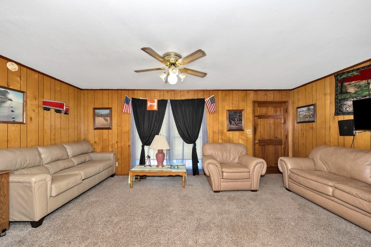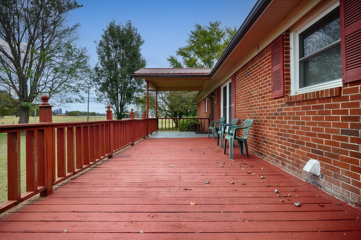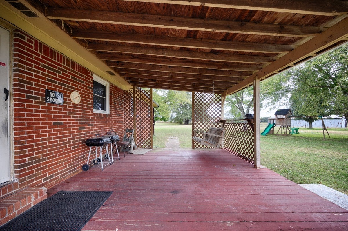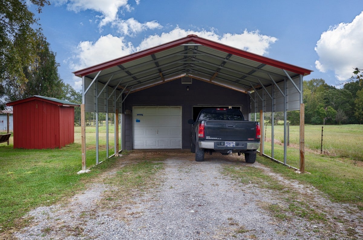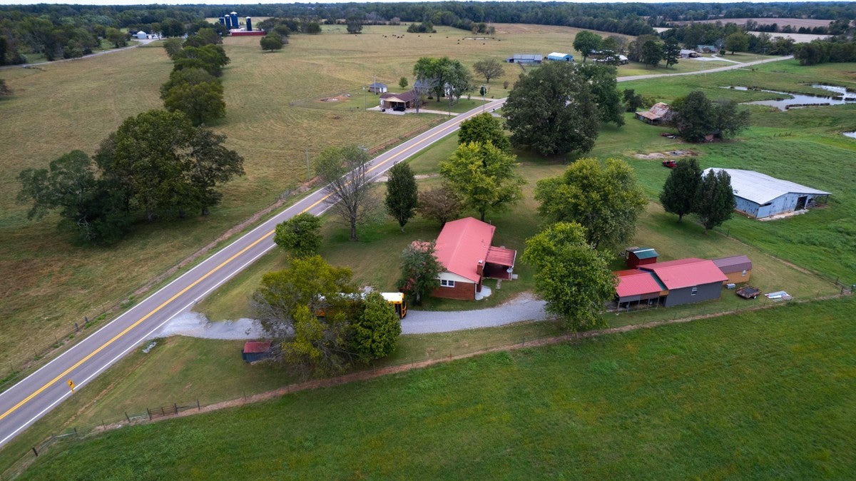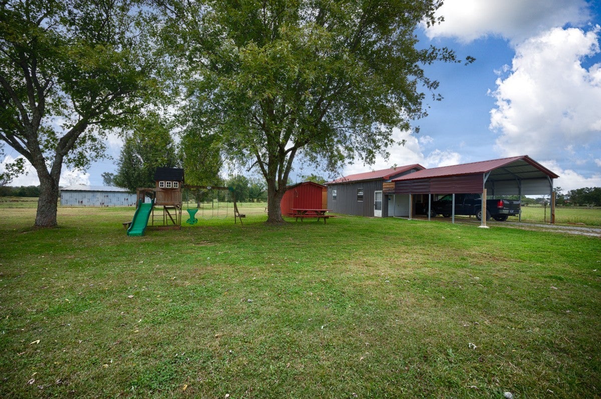 3 Bed 1 Full Bath, located on Approximately 1.2 Acres. Interior Offers a Formal Living Room, and Dining Room, Spacious Cozy Den. Inside Flooring Features Carpet, Wood Laminate, and LVP Flooring, Ceiling Fans, Textured, and Smooth Ceilings. Spacious Separate Laundry Room with Hot Water Heater. 3 Ton Central Heat and Air installed in 2010. Large Front Porch. Covered Back Porch for your Grilling and Entertaining Needs. 24x32 Detached 2 Car Garage with Electrical. 20x20 Awning at Garage for Ample Parking Needs. 08x16 Storm Cellar. Sold As-Is