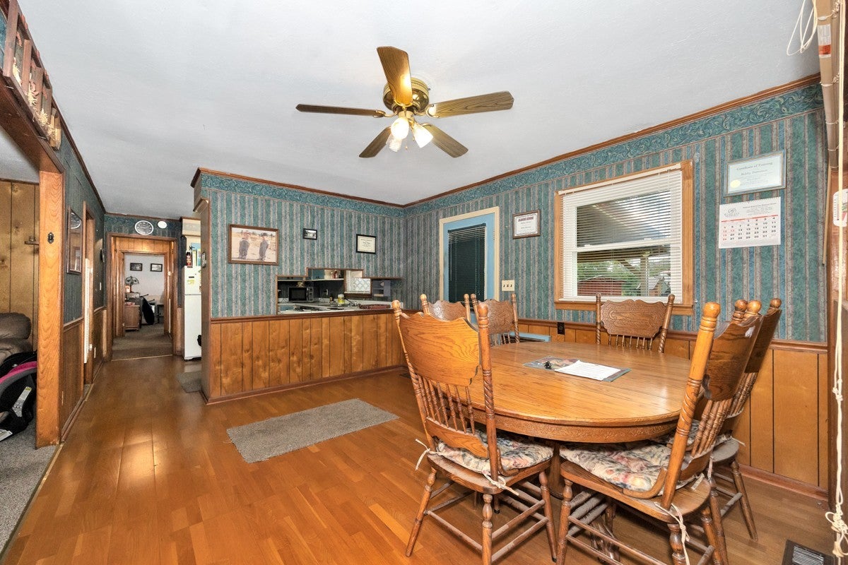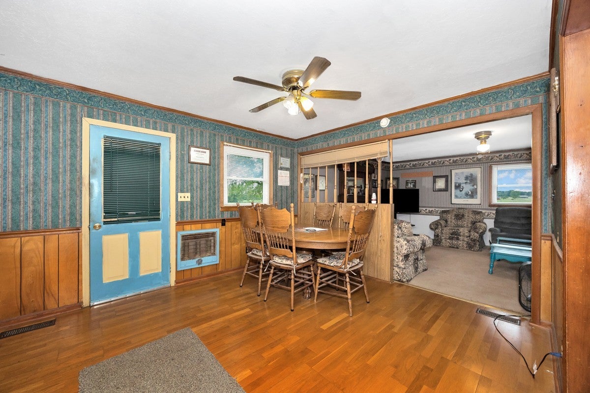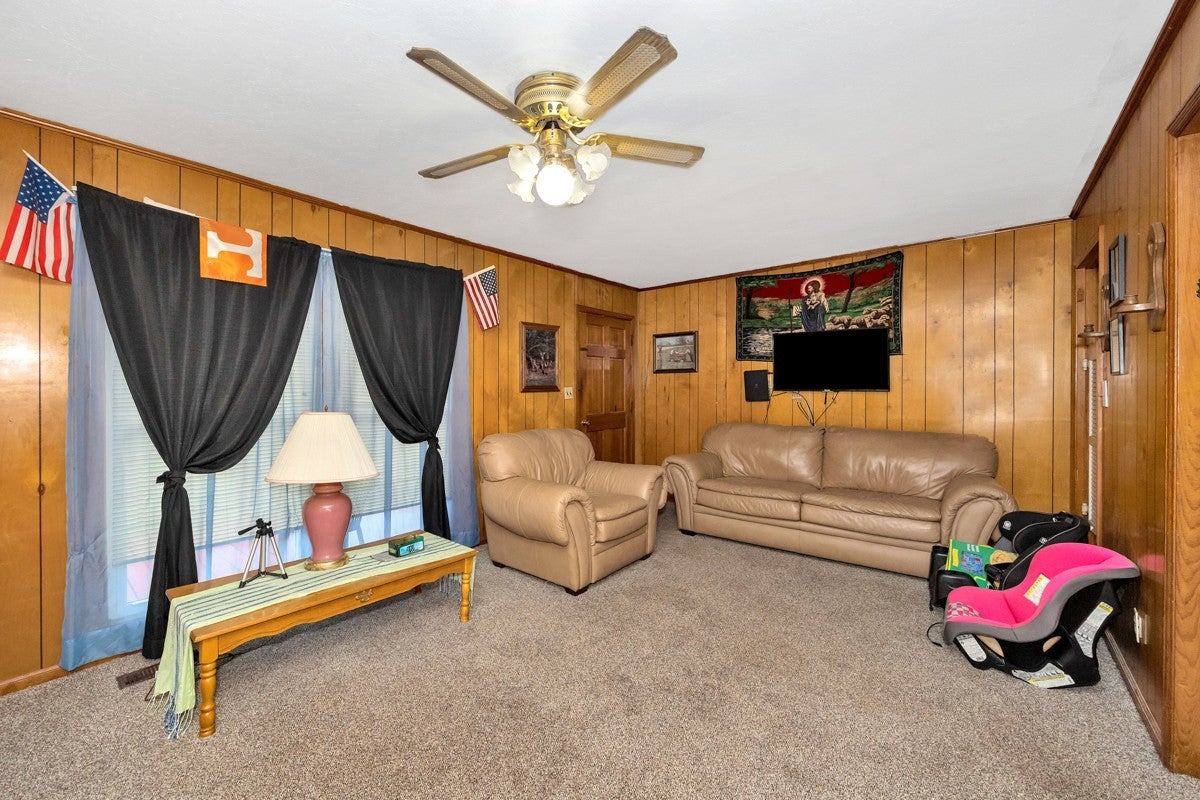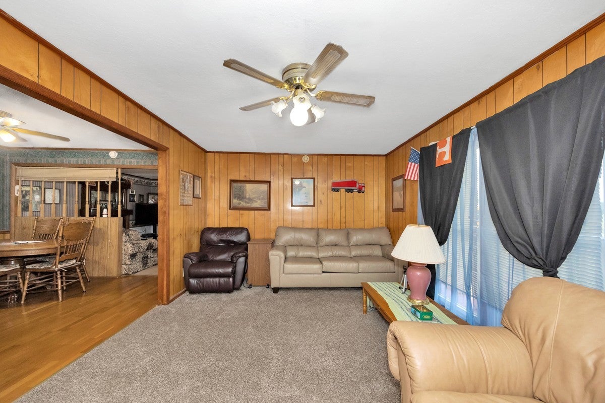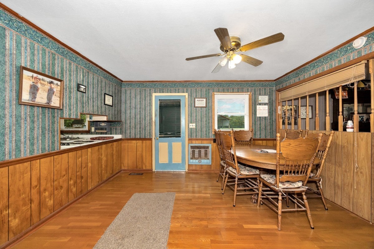 3 Bed 1 Full Bath, located on Approximately 1.2 Acres. Interior Offers a Formal Living Room, and Dining Room, Spacious Cozy Den. Inside Flooring Features Carpet, Wood Laminate, and LVP Flooring, Ceiling Fans, Textured, and Smooth Ceilings. Spacious Separate Laundry Room with Hot Water Heater. 3 Ton Central Heat and Air installed in 2010. Large Front Porch. Covered Back Porch for your Grilling and Entertaining Needs. 24x32 Detached 2 Car Garage with Electrical. 20x20 Awning at Garage for Ample Parking Needs. 08x16 Storm Cellar. Sold As-Is