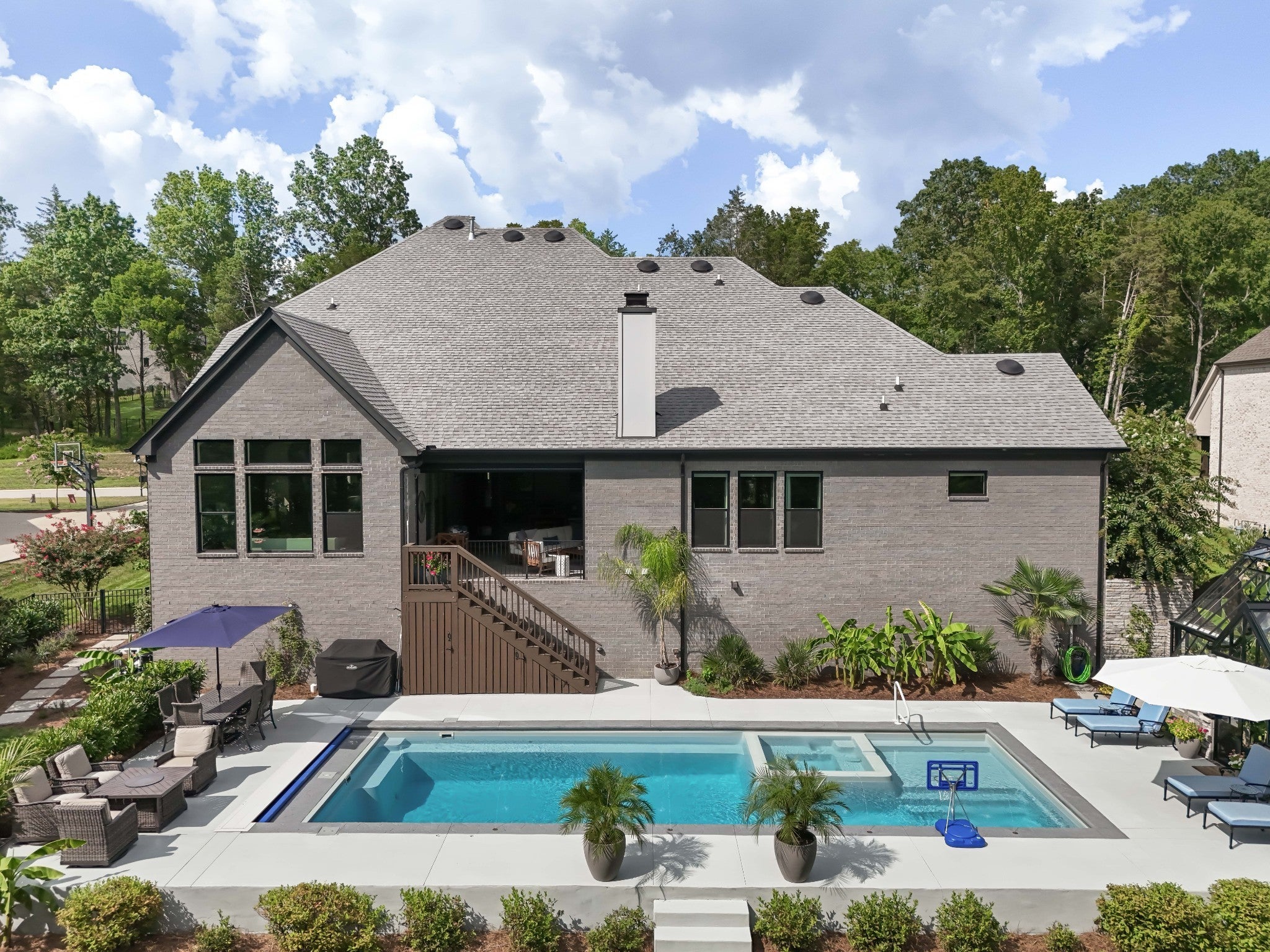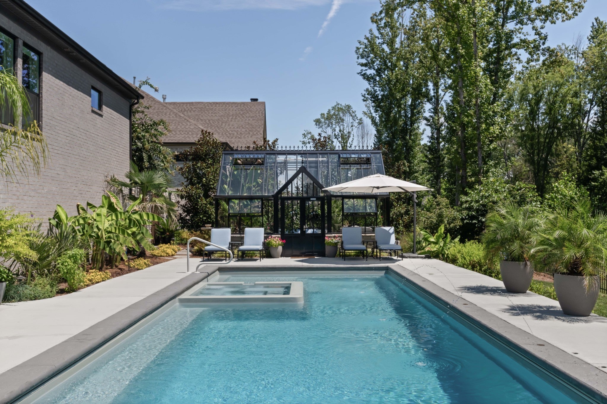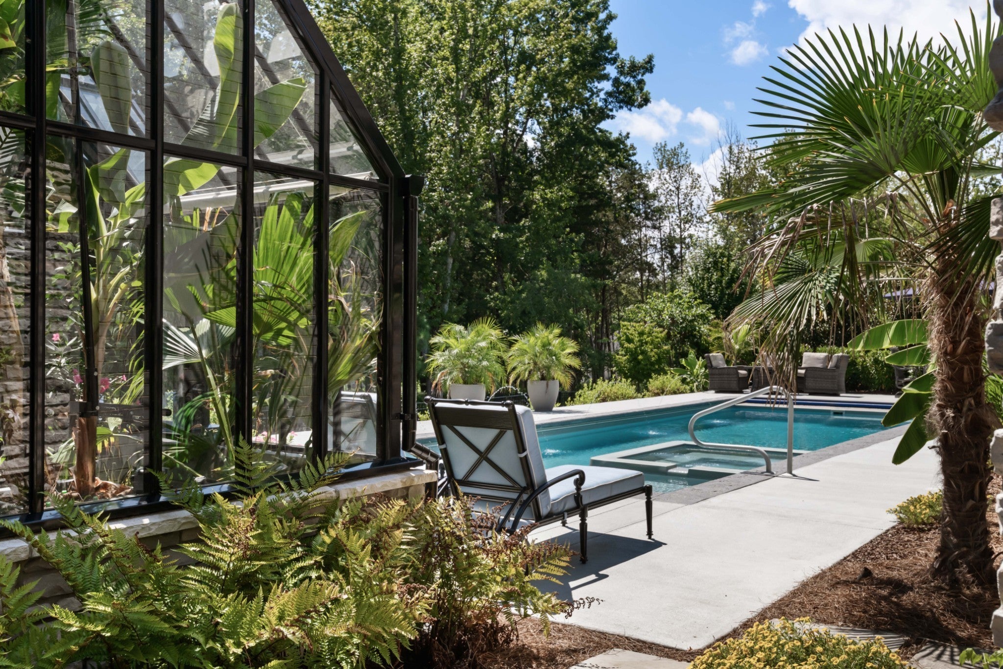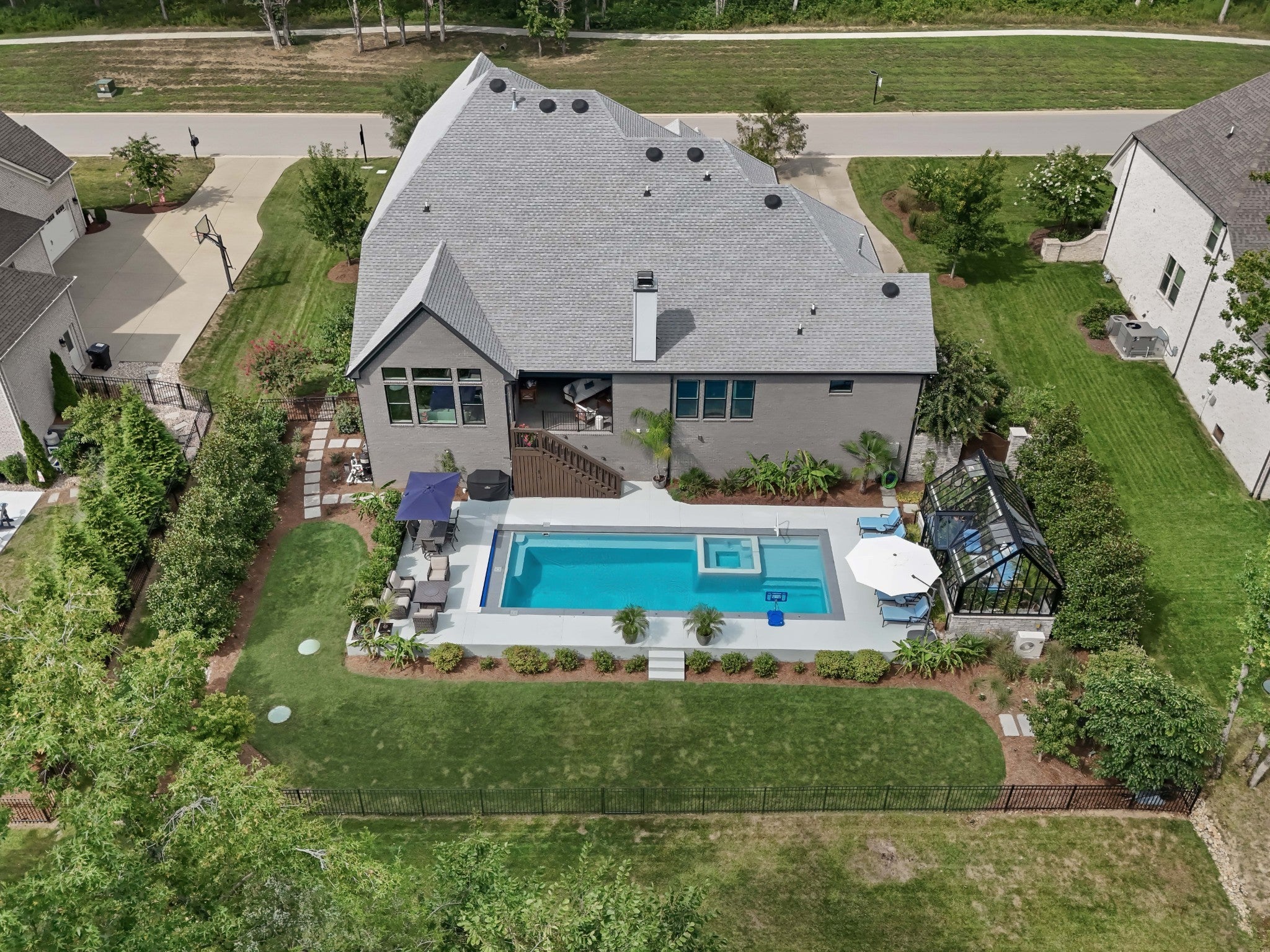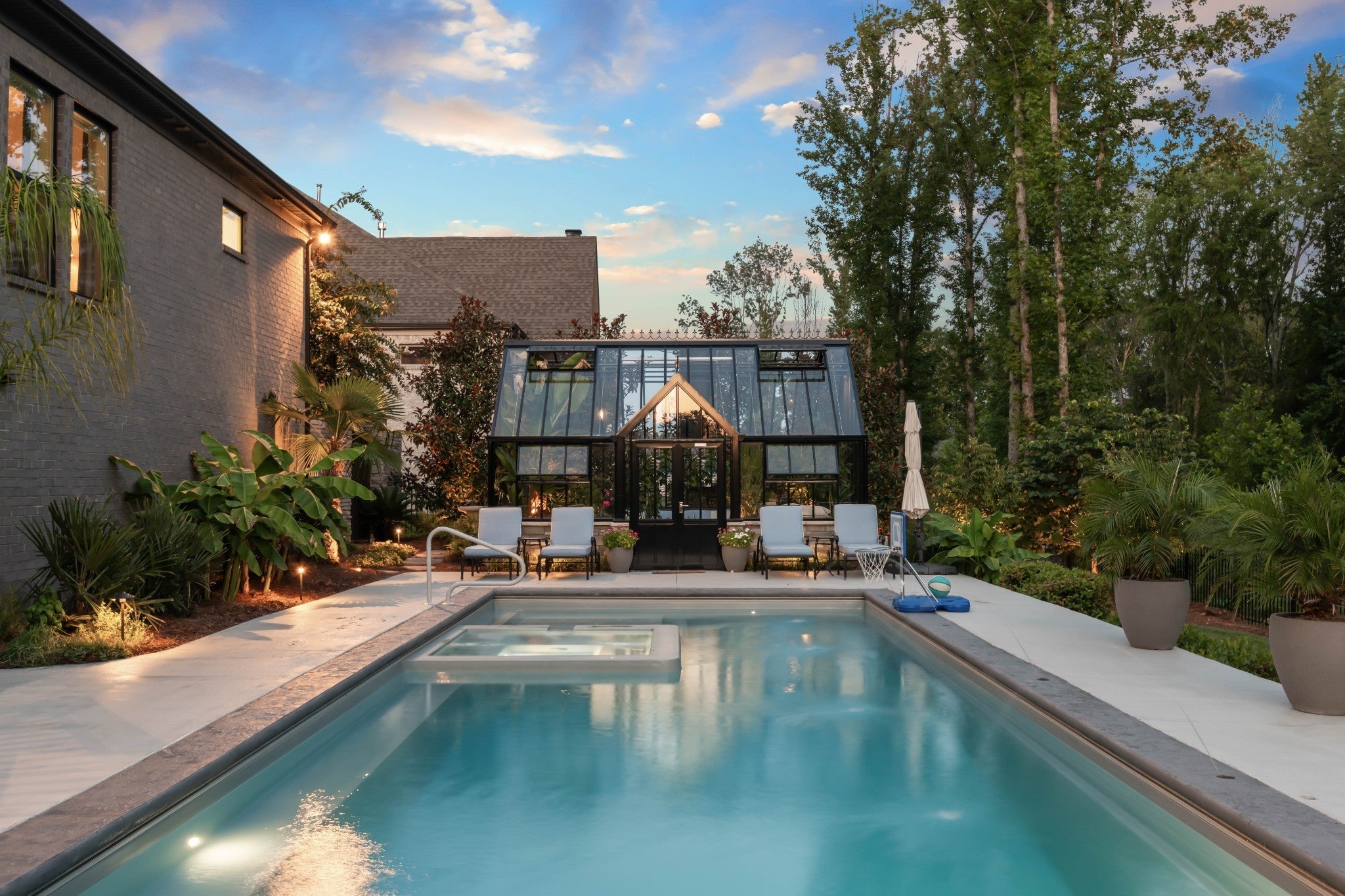 Offering a 4.25% rate buy-down with our preferred lender, inquire for details! Turn-key perfection in sought-after King's Chapel in Arrington. This 2021 built home features 5 bedrooms, 2 on the main floor, with ensuite baths. The home is centered around a wonderful kitchen and great room with vaulted ceilings, a stacked stone fireplace, and a wall of windows looking out over the covered rear porch and a delightful private back yard featuring an incredible space for entertaining and enjoying time together. An in-ground pool with integrated hot tub/spa centers the space, while a hand-made, British conservatory from Hartley Botanic set onto a stone foundation bookends the pool area. Imagine the four-season entertaining options available to you with this incredible feature! Enjoy coffee or a glass of wine surrounded by the peacefulness of your house plants, or open the space up and utilize it as a pool house to entertain guests as the sun sets over the Tennessee hills! Furthermore the property backs up to green space, ensuring privacy, and mature, well-cared for landscaping surrounds the home and property. Back inside you'll find a formal dining room, butlers pantry, and dedicated office space on the main floor, while upstairs features 3 more bedrooms suites, and a large family den/game room. One of Williamson Counties most desirable communities, Kings Chapel offers great schools, easy highway access, and amenities including a pool, clubhouse, fitness center, and more! Step into your Tennessee dream lifestyle here!