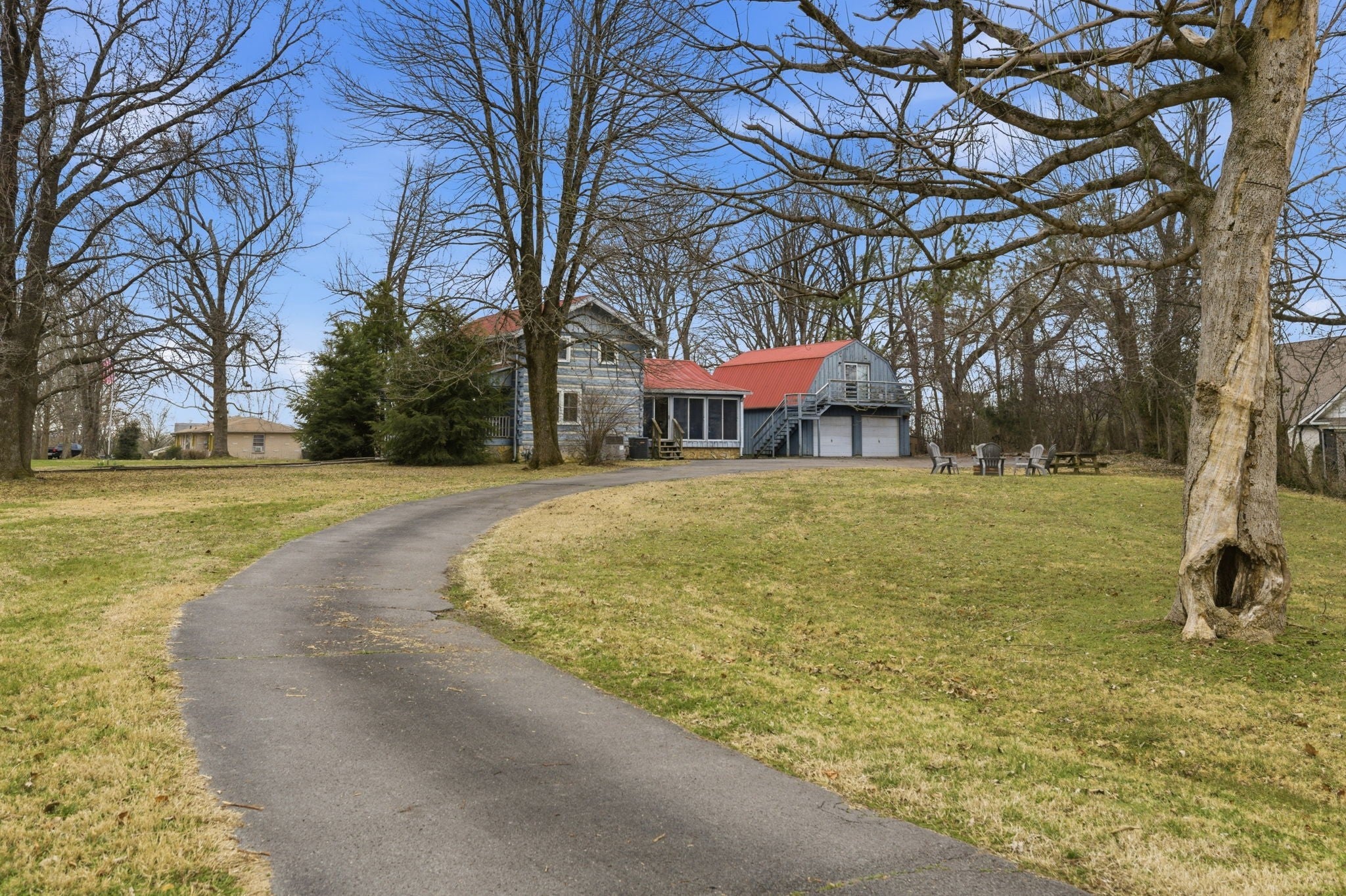Serious Seller | Serious Price | Unique Rustic Retreat on 1+ Acre | Guest Space/LTR/OOSTR If you’ve been searching for privacy, land, and flexibility close to the city, this one is worth a second look. Tucked at the end of a quiet dead-end street, this log cabin retreat sits on a level one-acre lot surrounded by mature trees — a rare find in this location. The main home offers 3 bedrooms, 2 baths, a welcoming front porch, three-season sunroom, and a cozy living area with gas fireplace. Detached two-car garage with guest apartment/DADU/AirBNB above provides additional living, workspace, or rental flexibility. Well maintained and fully functional, the home & price allows the next owner the opportunity to personalize and update over time to match their vision. Recent price improvement creates an attractive entry point for buyers seeking character, space, and options not often found this close to Nashville. Minutes from Downtown Nashville, BNA, Opry Mills etc Long Term Rental/Owner-occupied short-term rental potential. A unique property with flexibility for a variety of lifestyles