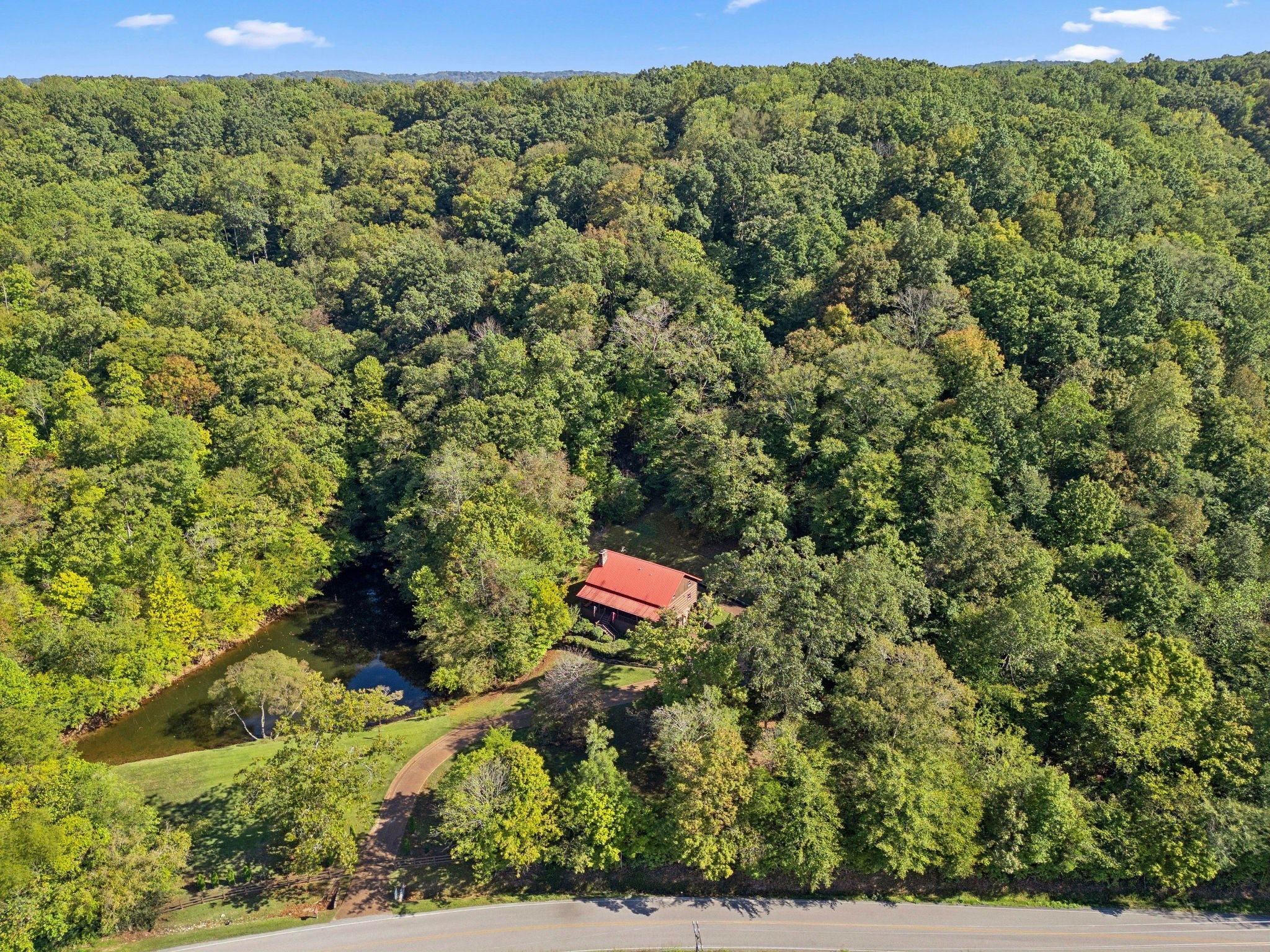 Enjoy the private seclusion of this quaint log home situated on 38.1 acres of beautiful hardwoods. Plenty of flat land for strolling or two more homes can be built up top. All very nice and flat. All are sitting in the Fernvale Valley with the West Harpeth River flowing through there as well. Come and enjoy.