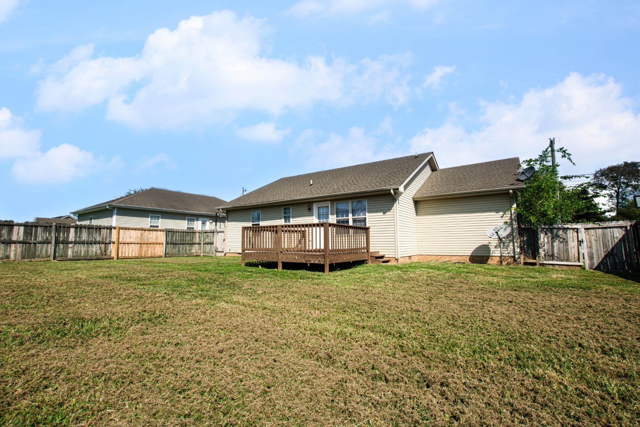 Great ranch home just minutes from shopping, restaurants, Fort Campbell and more! New flooring, fresh paint, and all new appliances! Spacious living room, eat in kitchen kitchen, primary suite with full bath, generously sized guest rooms, and great outdoor space with deck and fenced yard! Pet rent applicable.
