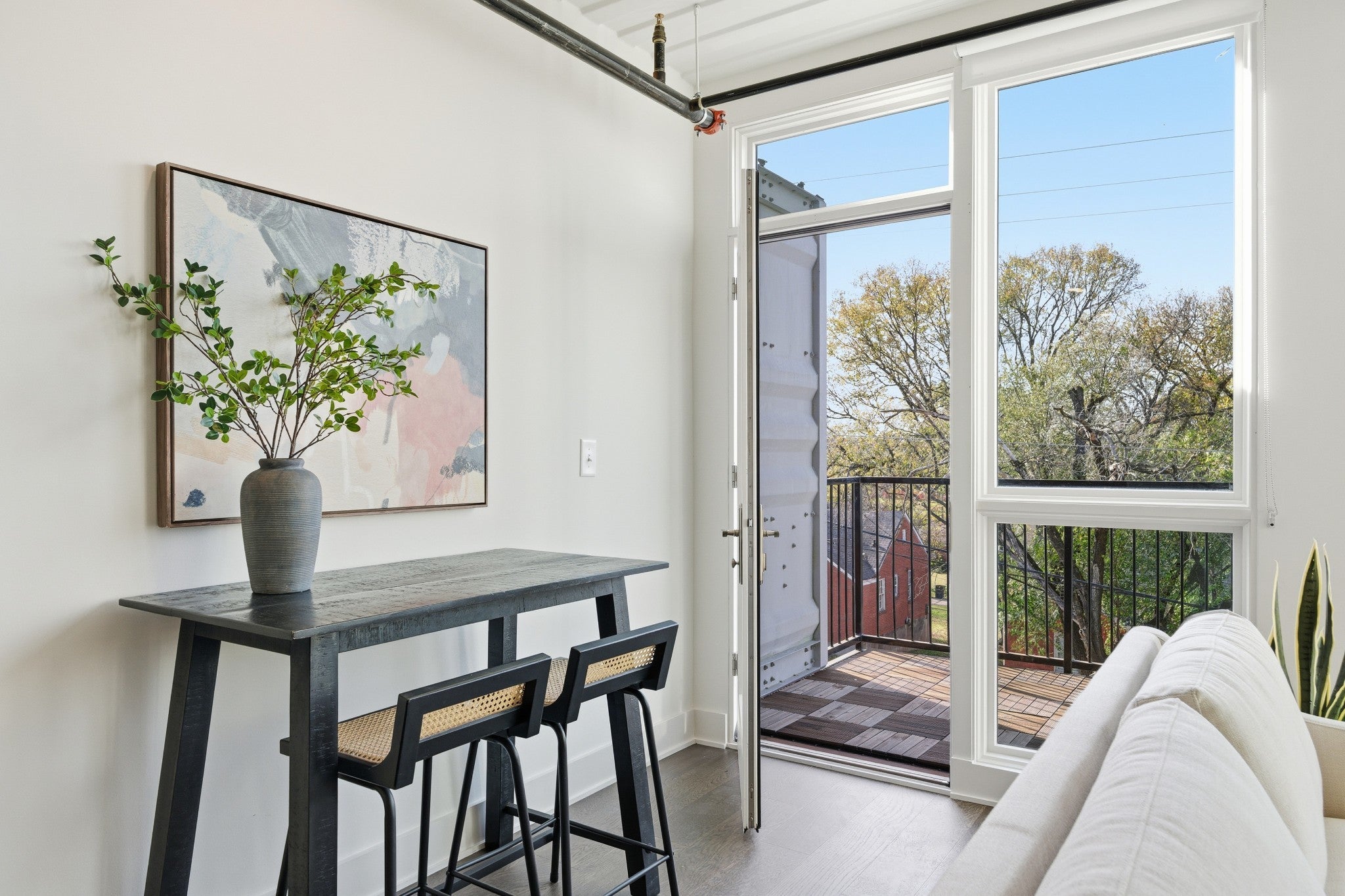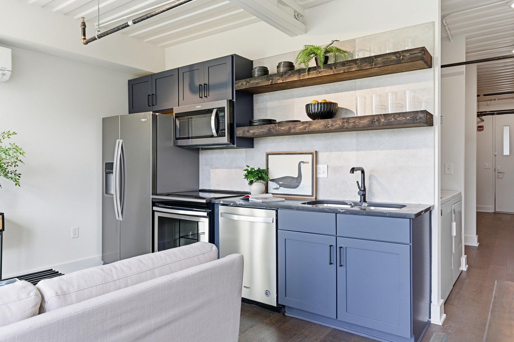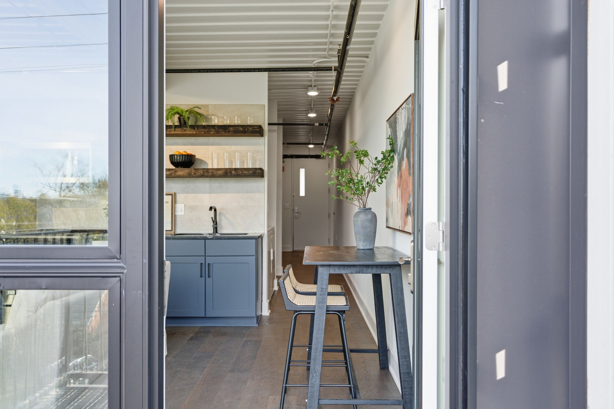 In the center of WeHo, this top floor, newly updated 1-bedroom condo at 83 Freight delivers a perfect mix of style and everyday practicality. It showcases brand-new flooring, redesigned kitchen counters and backsplash, new wood floating shelves, fresh interior paint, full-size appliances, and an in-unit washer and dryer. Outside your door, enjoy unbeatable walkability to Geodis Park, Soho House, Iggy’s, Pastis, Bastion, Il Forno, and more of WeHo’s top spots. 83 Freight stands out as one of Nashville’s most unique residential communities, featuring 83 modern homes built from 173 repurposed shipping containers. With an emphasis on sustainability, efficiency, and thoughtful design, these condos offer an accessible way to live right in the middle of one of the city’s fastest-growing neighborhoods. Reach out to the sales team for the latest availability.