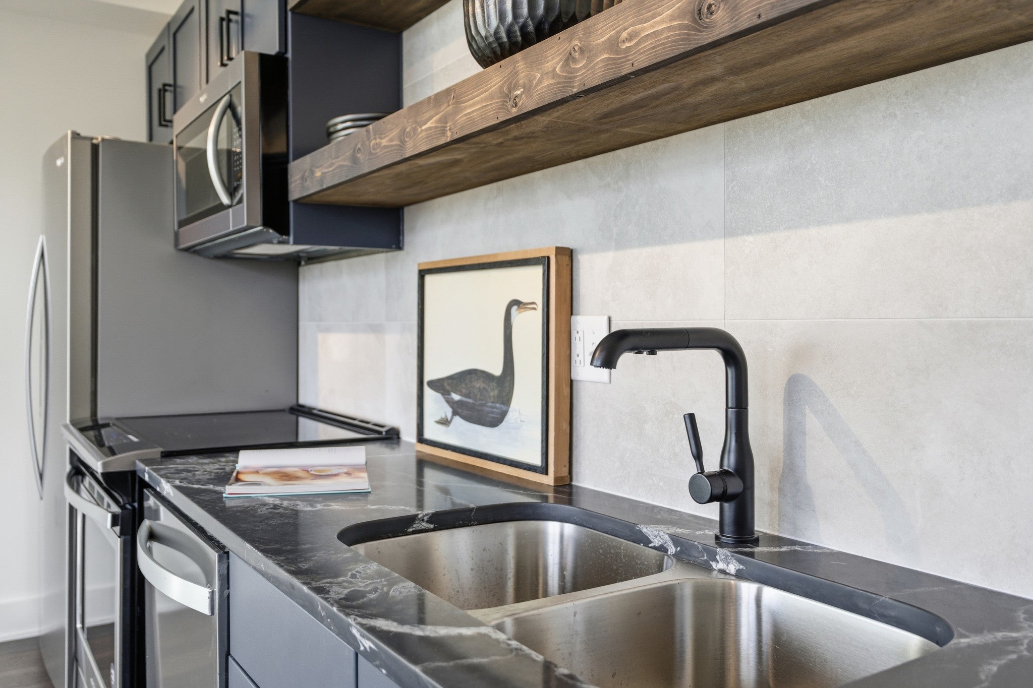 - Electric Oven, Electric Range, Dishwasher, Disposal, Dryer, Microwave, Refrigerator, Stainless Steel Appliance(s), Washer