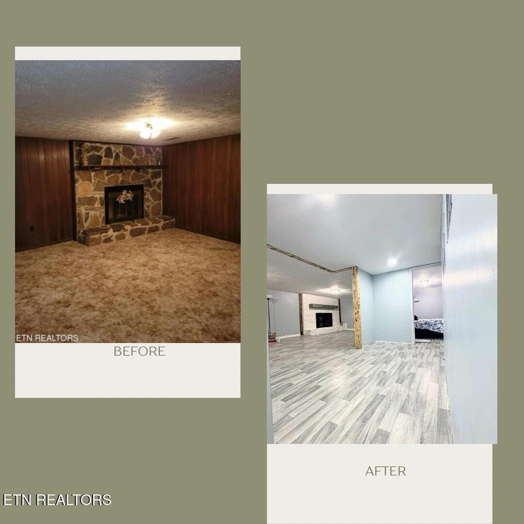 MOTIVATED SELLER: PRICED FOR IMMEDIATE SALE! *NOT A FLIP, Priced under market value because Seller needs to move ASAP DUE TO EMPLOYMENT RELOCATION! Rare opportunity to own a massive, turnkey 2808 sq. ft. ranch in a serene country setting—just 10 MINUTES from the Norris Lake boat landing and 20 minutes from LMU. The seller is relocating for work and has priced home for a quick sale. OVER $50K in updates! completely revitalized home: • New Roof (2023) & Gutters (2024) • New Split Unit Heat Pump (2024) • New Hot Water Heater (2024) • New Stainless Steel Appliances (2024) • New Quartz Countertops and Cabinets • HSA Home Warranty Included! Welcome home to this beautiful property featuring a main-level laundry room and a gorgeous kitchen with a deep apron sink, and a separate butcher block coffee bar. The home is accented with custom Shou Sugi Ban Swedish pine for unique character. FLEXIBLE INCOME POTENTIAL: The walkout basement, complete with its own living space and wood-burning fireplace, could be perfectly configured to be a private rental unit, in-law suite, or dedicated home business area, easily accessed via the private second driveway. Relax on the huge 192 sq. ft. front porch with stunning mountain views, or gather around the outdoor fire pit in the spacious, fenced backyard. Don't forget there is also sunroom off the kitchen! City water, city sewer, and curbside trash are some of the amenities found here. This fully updated, agent-owned property won't last. *Bring your highest and best offer immediately! Buyer to verify listing information and all measurements and information.