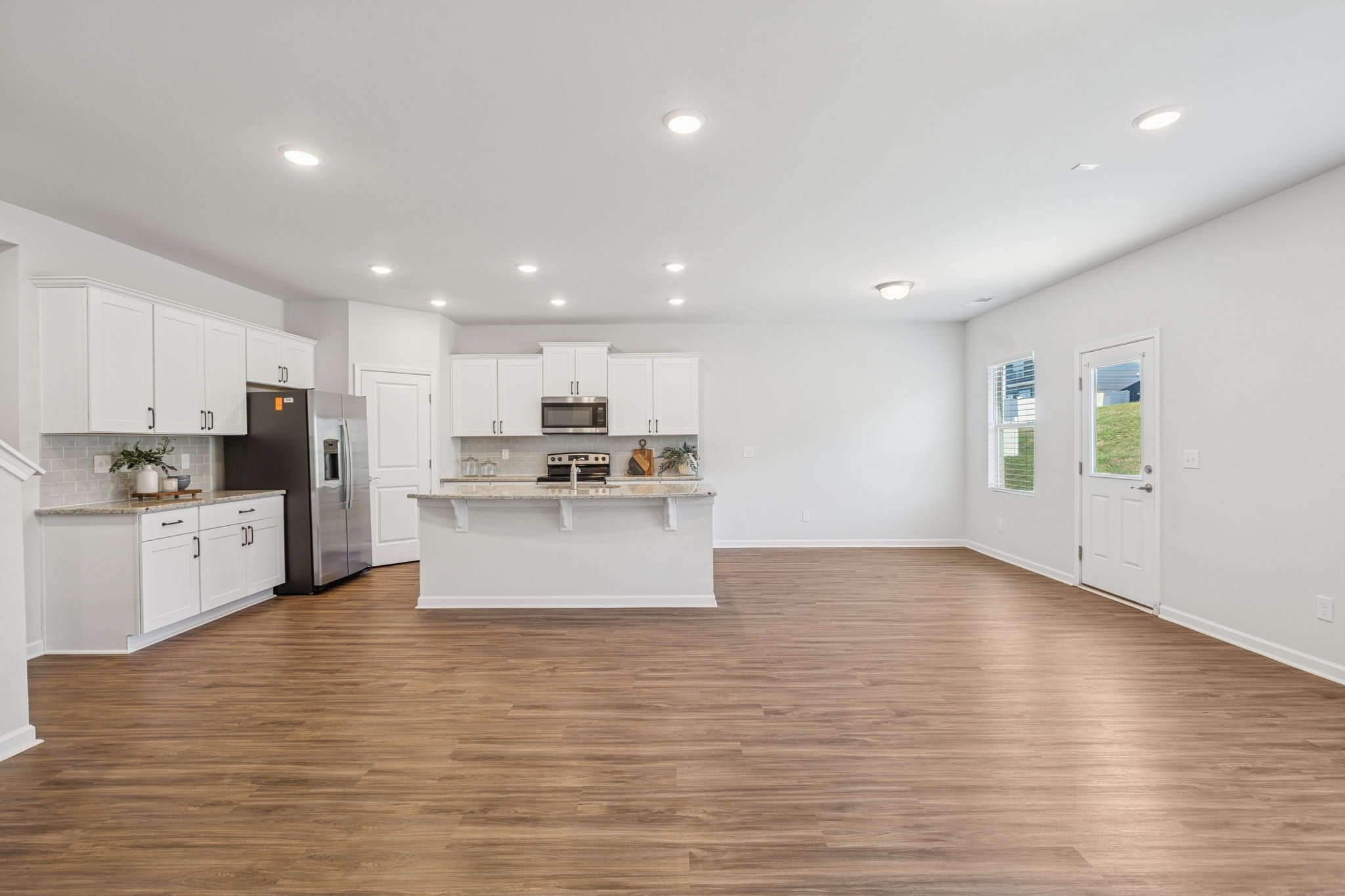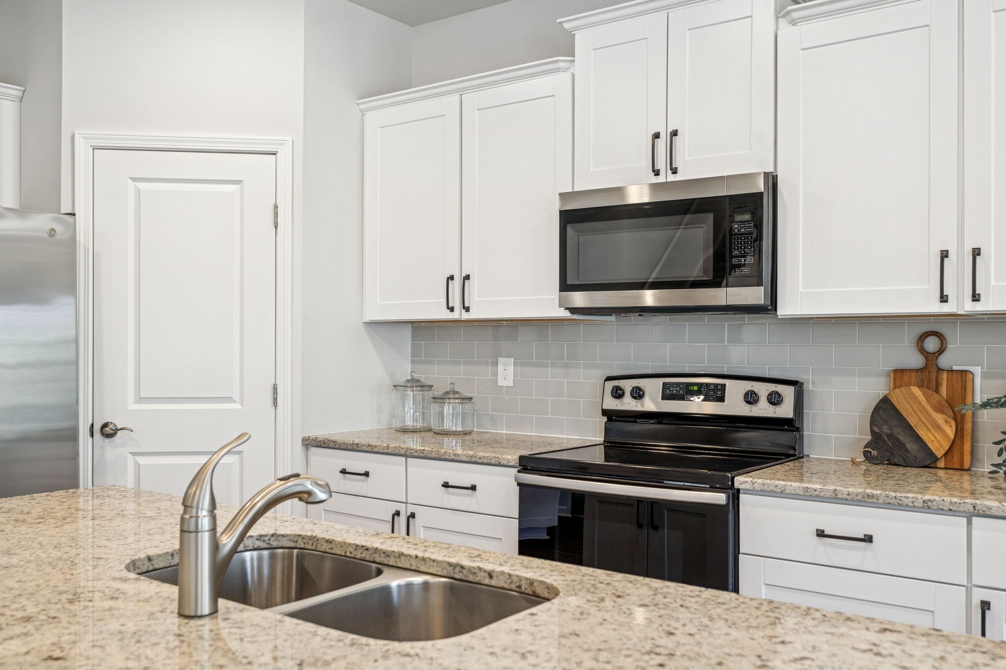 - Electric Oven, Cooktop, Dishwasher, Disposal, Microwave, Refrigerator, Stainless Steel Appliance(s)