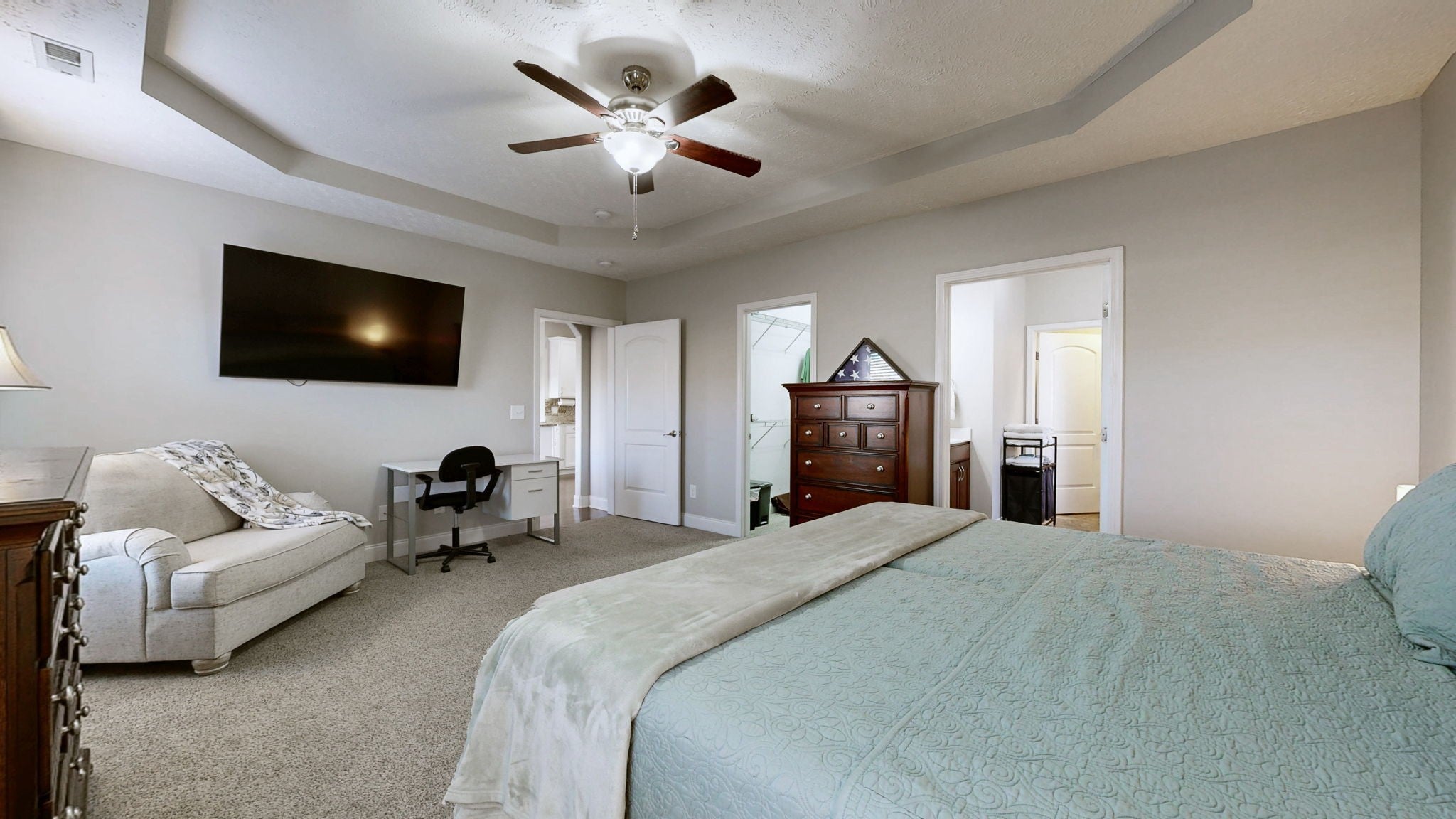- Air Filter, Ceiling Fan(s), High Ceilings, Walk-In Closet(s), High Speed Internet