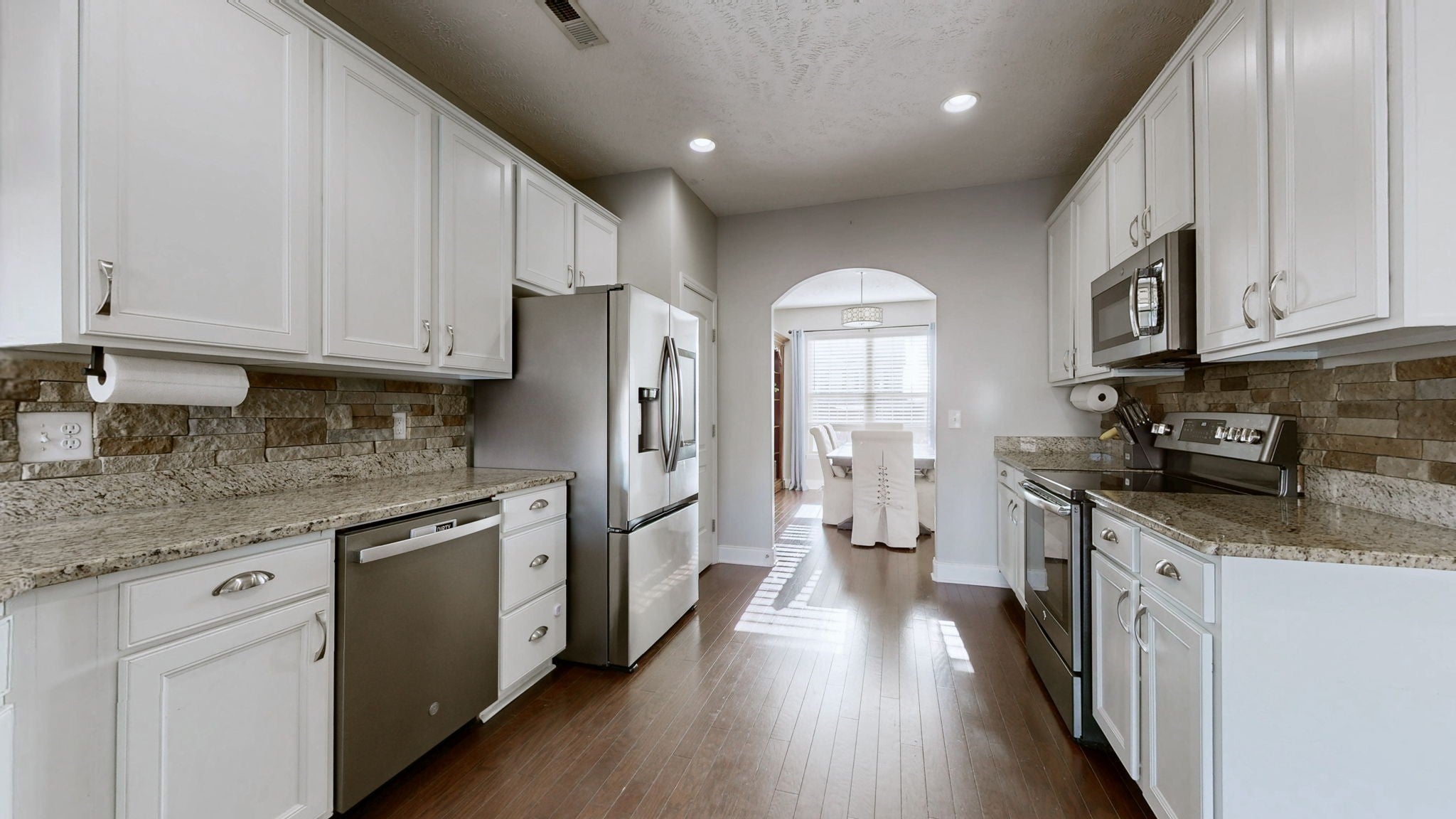 - Electric Oven, Cooktop, Electric Range, Dishwasher, Disposal, Dryer, Microwave, Refrigerator, Stainless Steel Appliance(s), Washer