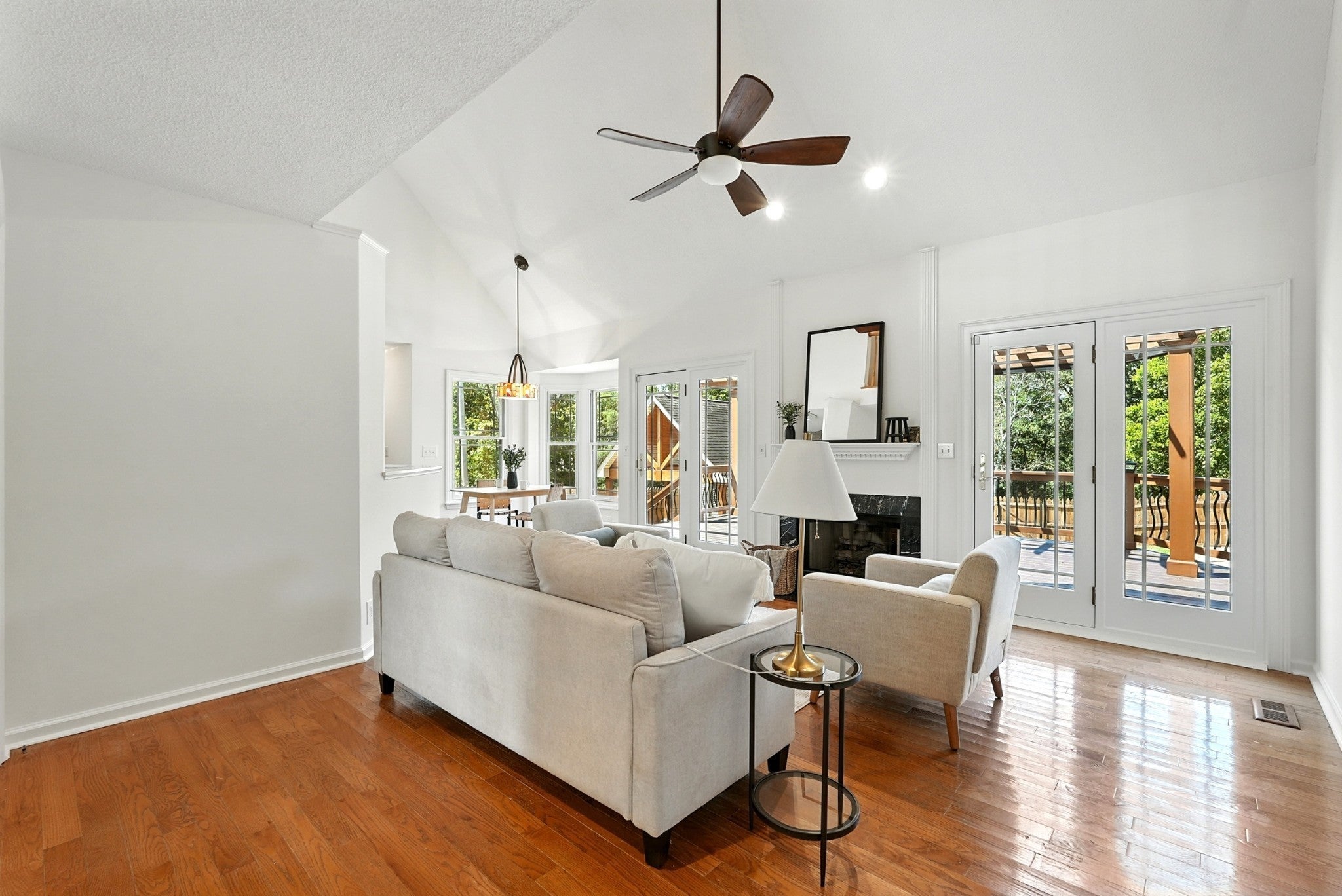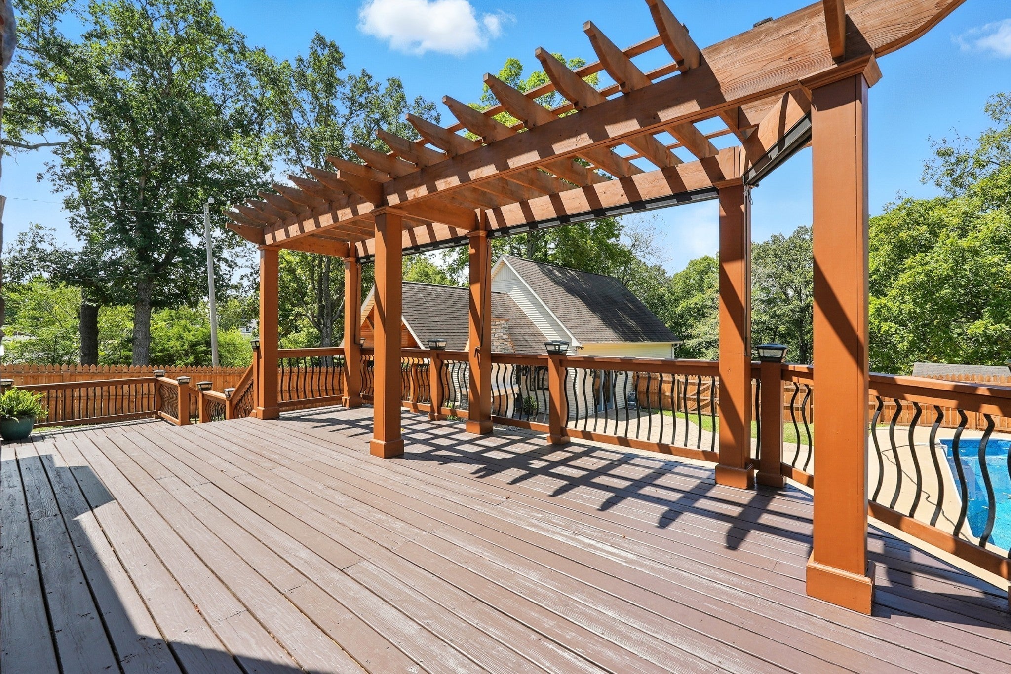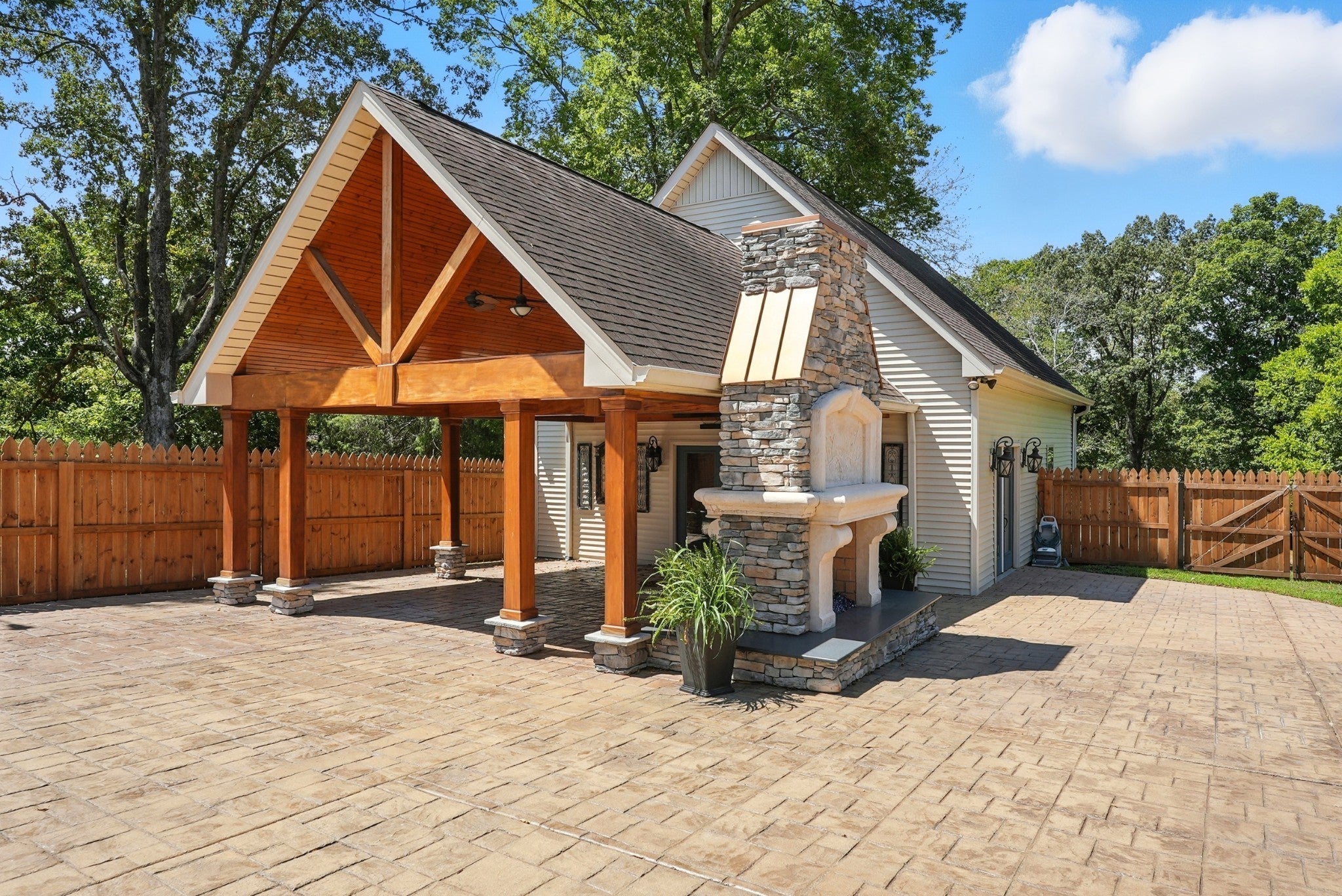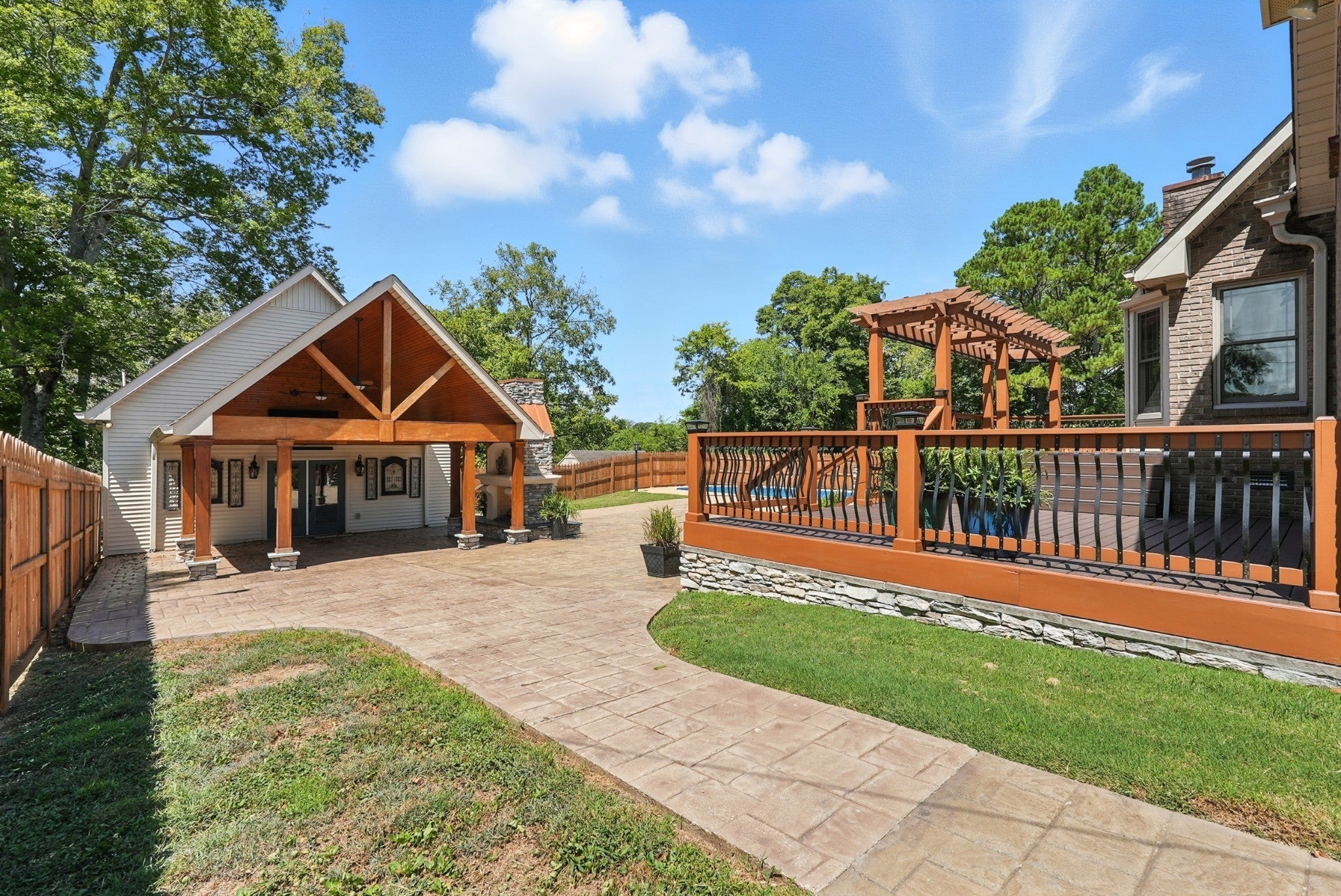 McCreary Heights is a desirable address in a HISTORICAL Dickson neighborhood and this home blends its traditional exterior design with its surroundings perfectly! Situated on a large lot UNDERNEATH THE SHADE OF MATURE MAPLE TREES, OAK TREES and IMMACULATE LANDSCAPING. The all brick exterior and traditional trim transtition to a more CONTEMPORARY FLOOR PLAN. This home bridges past and present and preserves the CHARM OF MCCREARY HIEGHTS! This home is complete with all NEW PAINT in Sherwin Williams SNOWBOUND. Appliances to remain. Primary bedroom is on the ground level with a garden tub and separate shower, LIVING ROOM is OPEN CONCEPT with natural lighting from floor to ceiling windows flanking the gas fireplace ~ VAULTED CEILINGS and BALCONY OVERLOOKING LIVING ROOM, some lighting has been updated ~ POTENTIAL FOR ADDITIONAL LIVING QUARTERS IN THE POOL HOUSE/COTTAGE ~ OUTDOOR PERGOLA with sun shades ~ This property has 2 livable structures. Enjoy all 4 Tennessee seasons within the NEWLY INSTALLED PRIVACY FENCE at the POOLHOUSE with KITHCHENETTE ~ PORCH boasts tall AFRICAN MOHOGANY AND PINE VAULTED CEILINGS, OUTDOOR FIREPLACE AND LARGE IN GROUND POOL ** HOST YOUR PARTIES, bring your family, potential for Airbnb, musicians room, pool table, artists studio or HOME OFFICE and the list goes on. This home is within walking distance to DOWNTOWN SHOPS, FARMERS MARKETS, PARADES, SEASONAL FESTIVITIES , RESTAURANTS and much more. This property has been in the sellers family for 100 years and this is a one owner home BUILT IN 1993, well loved ~ well maintained and awaiting its new owners ~ MOVE IN READY!