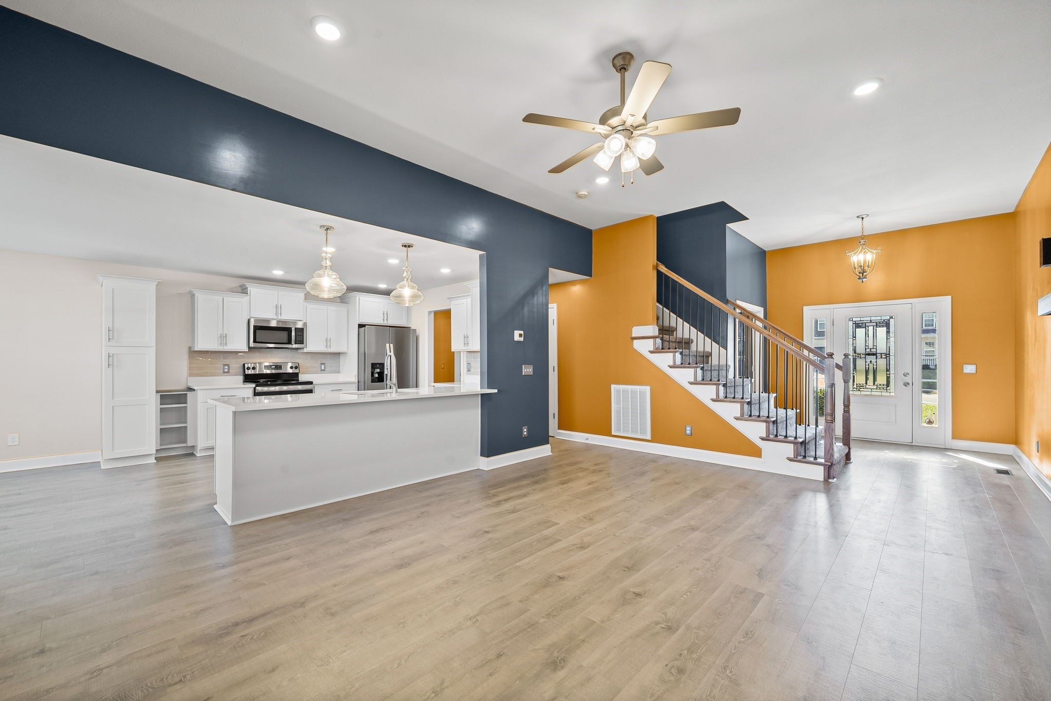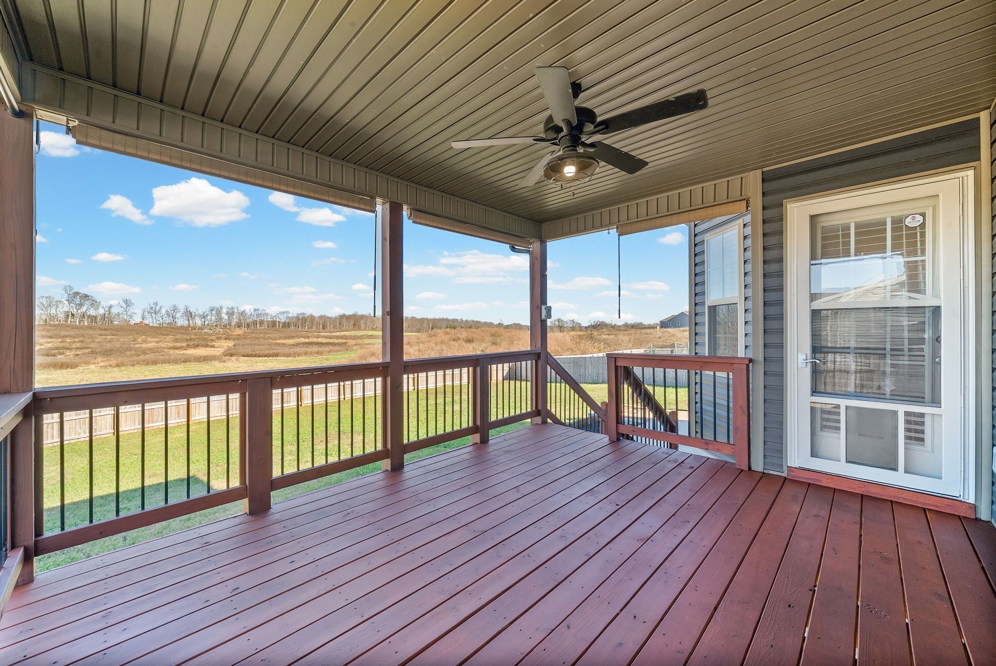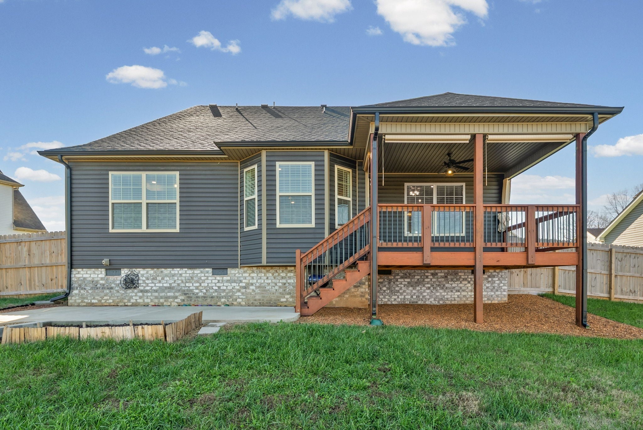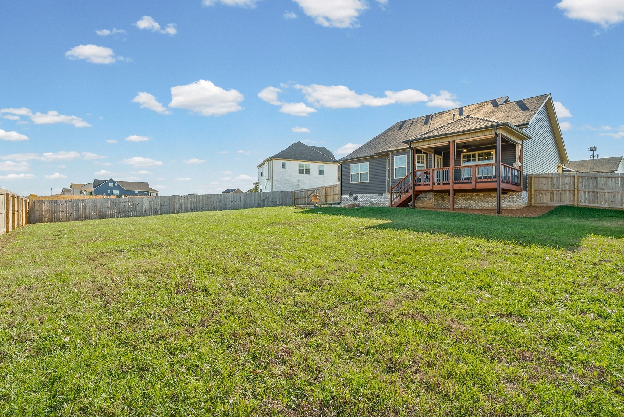 Stunning three-bedroom, 2.5-bath home featuring a large bonus room! The primary bedroom is conveniently located on the main level, with two additional bedrooms and the bonus room upstairs. Enjoy a spacious living room and an eat-in kitchen that offers ample cabinet and counter space. Step outside to a covered back deck overlooking a fully fenced backyard—perfect for relaxing or entertaining. A large laundry room completes this beautiful and functional home. **Owners are open to repainting the orange if a tenant prefers**