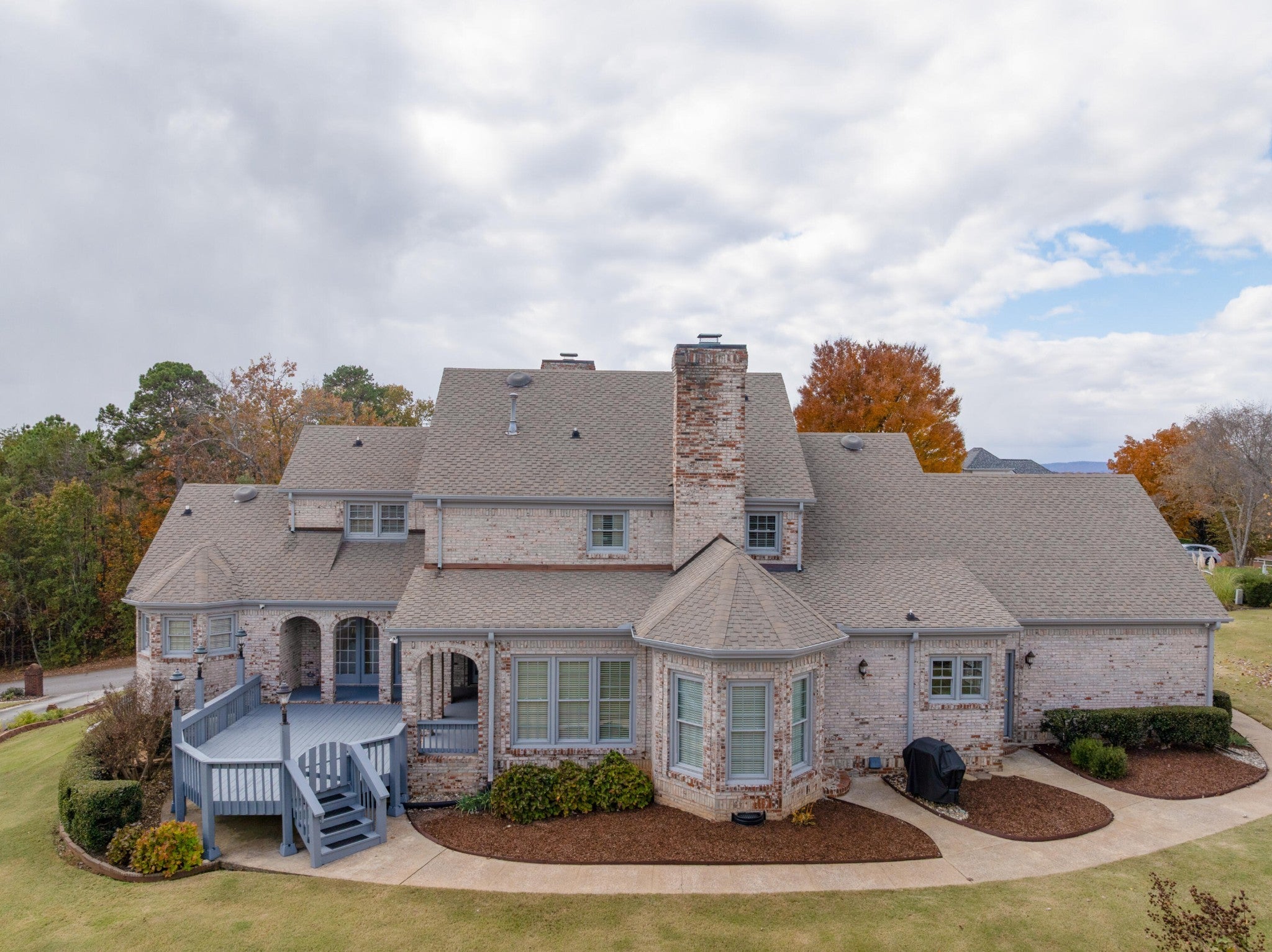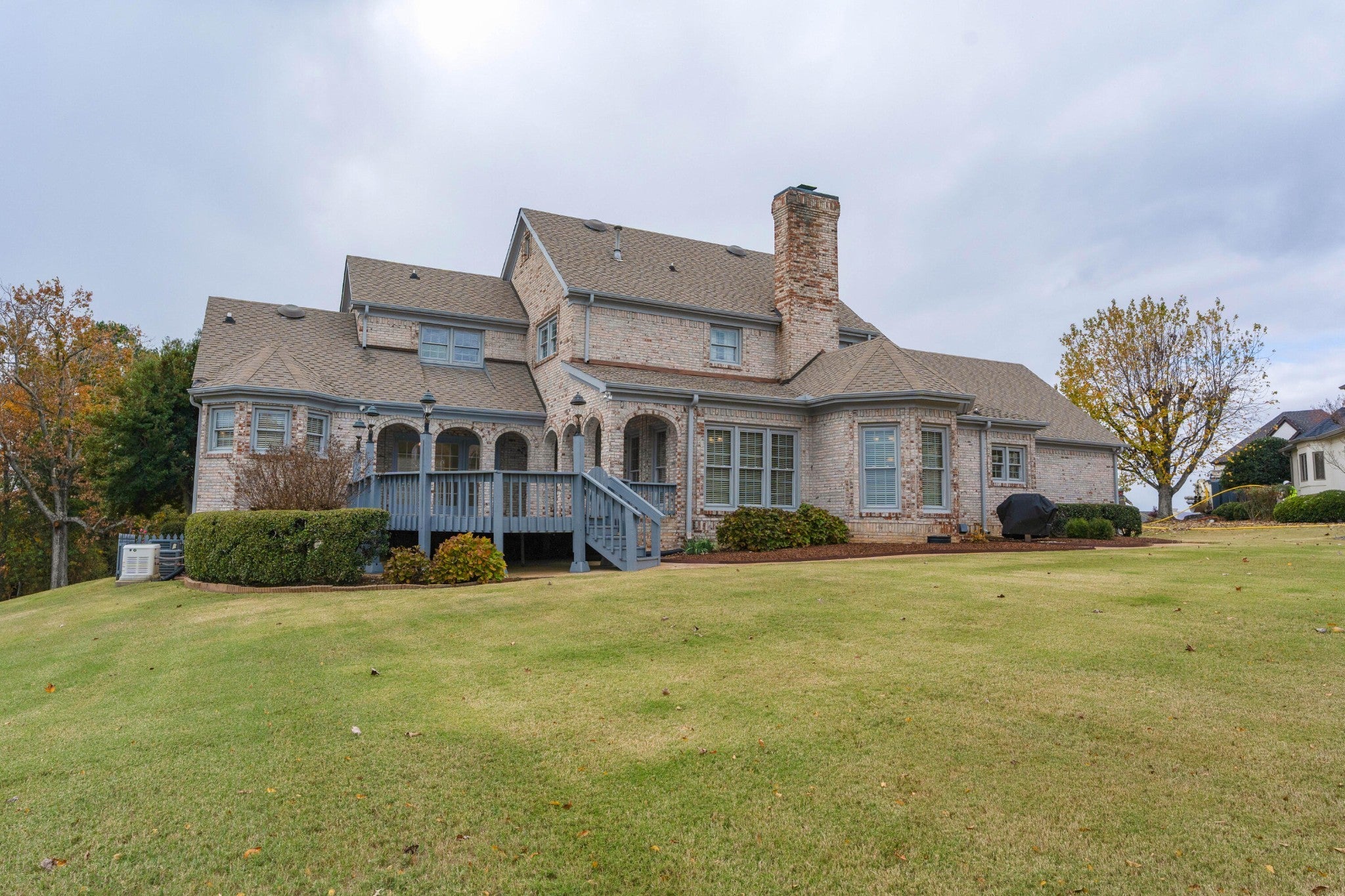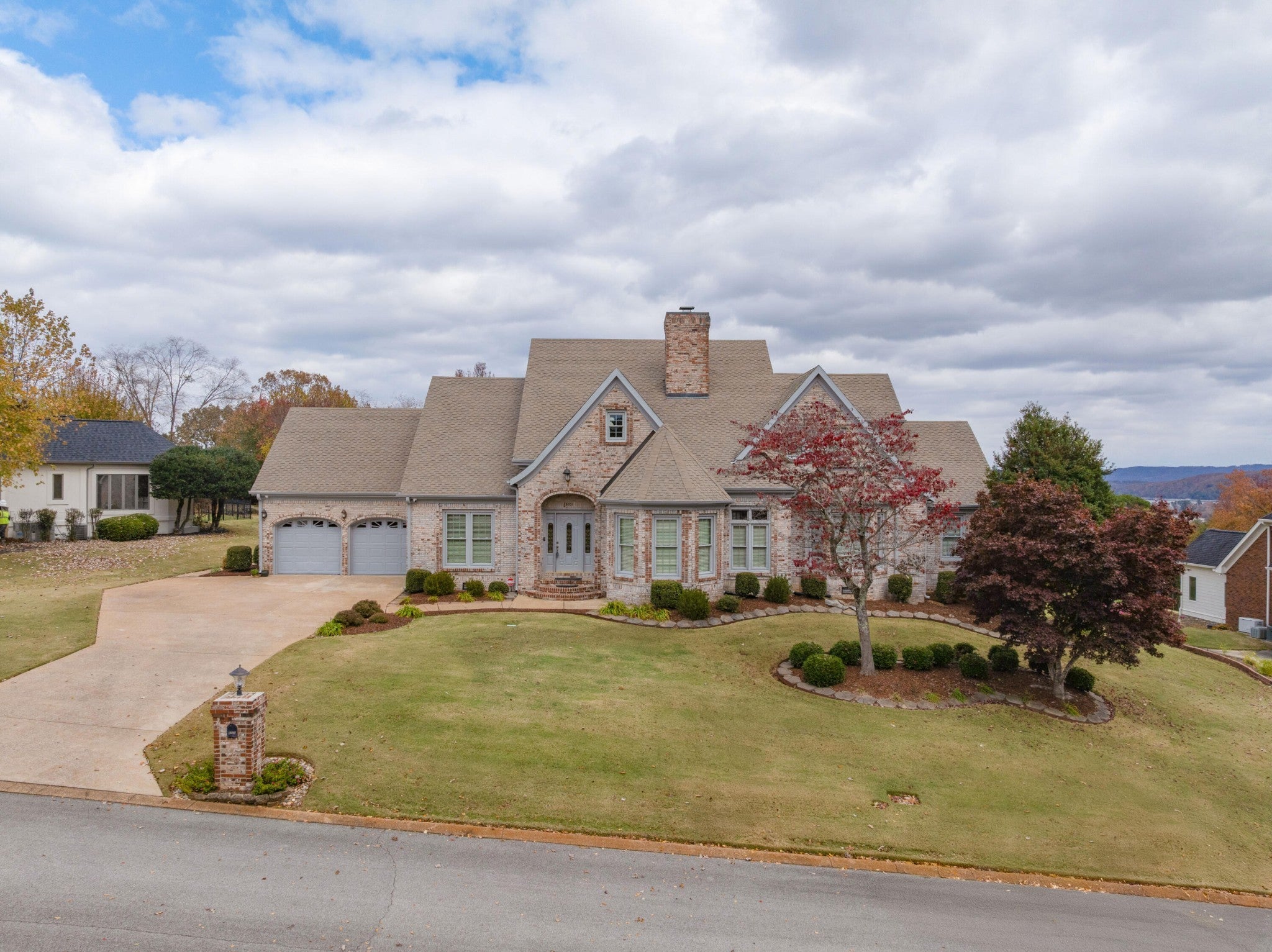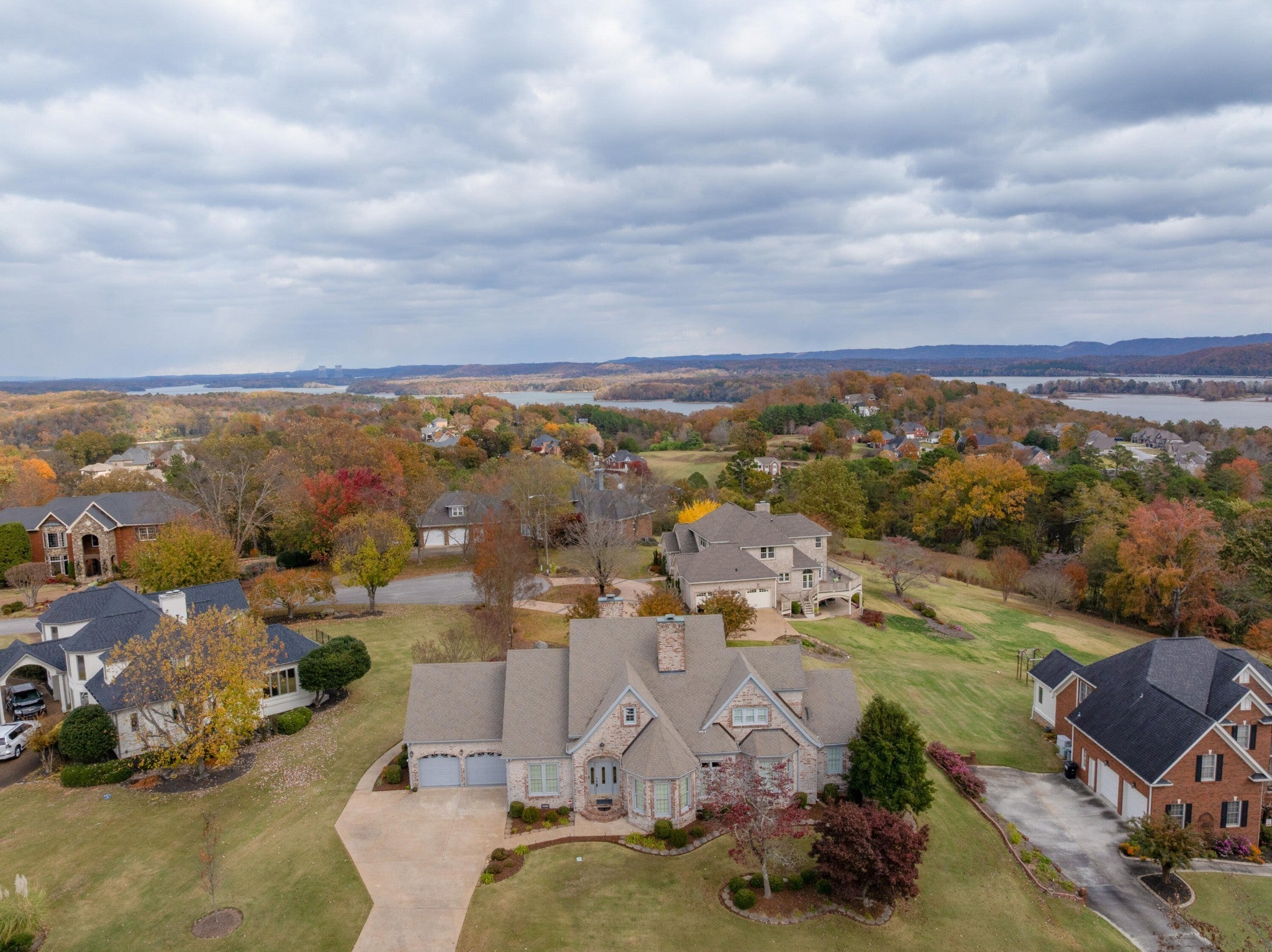All brick, 4 bedroom, 3.5 bath home on a .45 +/- acre lot with views of Harrison Bay in the desirable Eagle Bluff neighborhood just minutes from marinas, schools, shopping and restaurants with easy access to Hixson, Ooltewah and downtown Chattanooga. The home features both formal and informal living spaces, interior and exterior dental moldings, specialty ceilings, the primary suite on the main, double paned metal windows, a 22kw full-house generator, security system with cameras, tankless water heater, great outdoor living area, 2-bay garage with attic storage, irrigation system, outdoor lighting and more! Your tour of the main level begins with the 2-story foyer with access to the dining room on one side and the living room on the other. The living room has a gas fireplace and one of many bay windows. The heart of the home is the spacious family room that has a 3-sided gas fireplace that is also shared by the breakfast room and kitchen, lending a wonderful ambiance to all 3 rooms. The kitchen has a center island with a gas cooktop, double wall ovens, a walk-in pantry and access to the laundry room, the 2nd staircase, and the garage for easy loading and unloading. The powder room is in the hallway off the family room. The primary suite has a double door entry and French door to the rear deck. The primary bath has a dual vanity, jetted tub, separate shower and a walk-in closet. Head upstairs where you will find a landing area that is perfect for an office or sitting area, two bedrooms that are adjoined by a shared bath, and another bedroom with a private bath. Beautifully landscaped, this home is just waiting for the right buyer to make it their own, so please call for more information or to schedule your private showing today. Information is deemed reliable but not guaranteed. Buyer to verify any and all information they deem important.