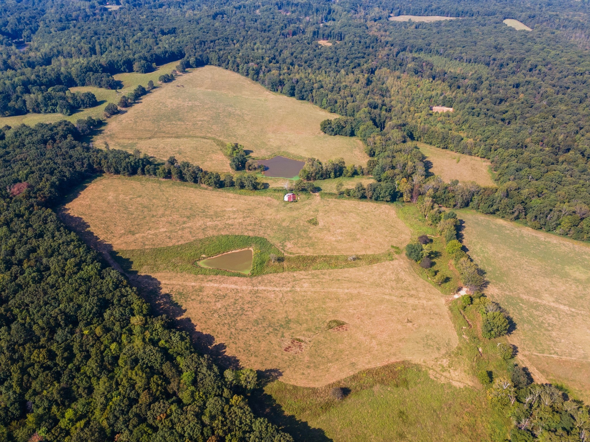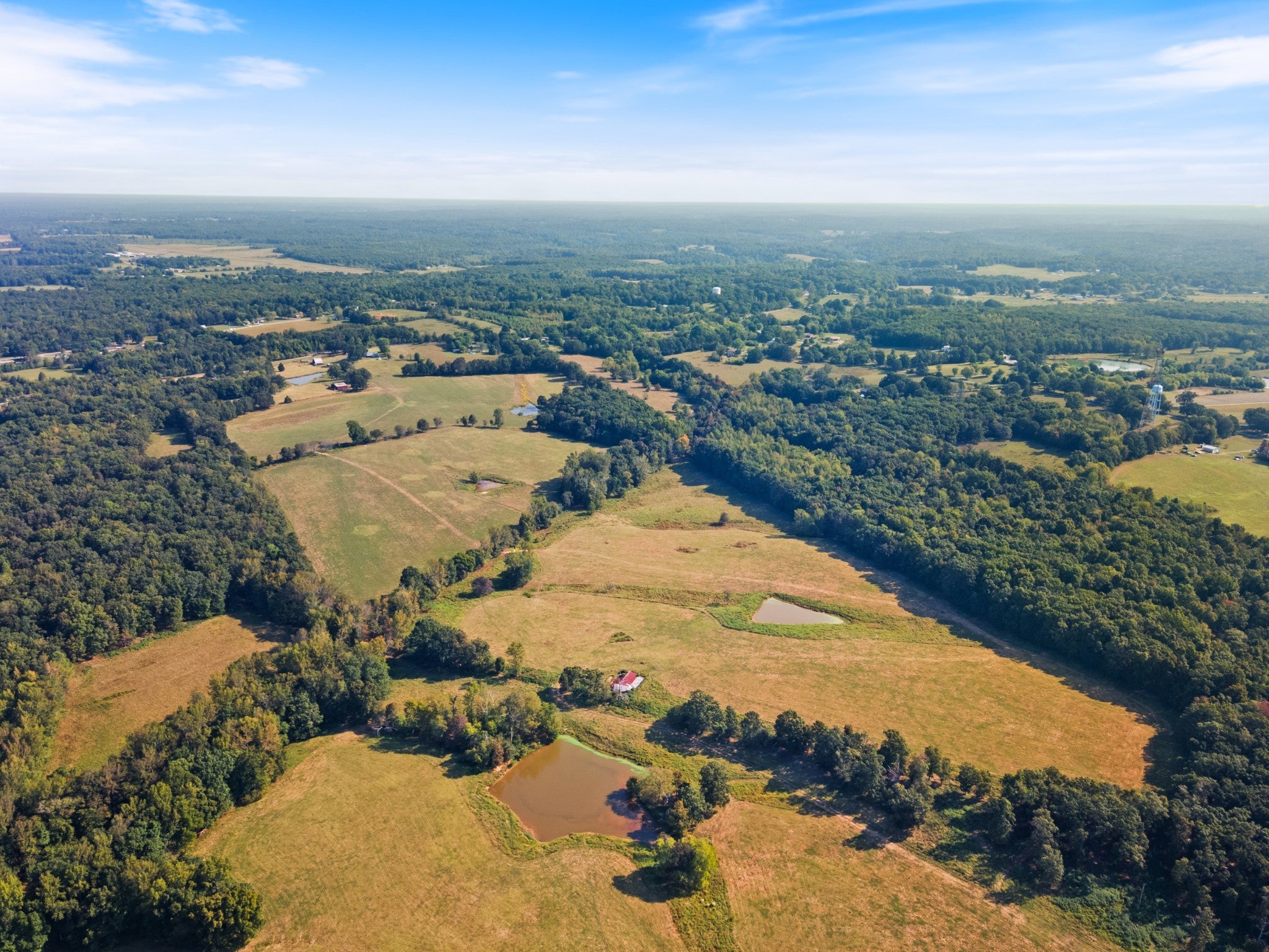 Beautiful 2 bedroom, 2 bath brick/vinyl farmhouse ~ 185.7 Rolling acres ~ Gas fireplace ~ Spacious eat-in kitchen ~ Large den ~ Knotty pine throughout ~ Security doors ~ Covered porch & patio ~ Paved circle drive ~ 7 Scenic ponds ~ West Piney River runs through the property ~ 5 Bay storage building with lean-to ~ Fenced & cross fenced ~ Mix of wooded areas & open pastures ~ Stunning views ~ Multiple stock barns (one with hay loft) ~ Lots of natural beauty ~ Standout opportunity for developers, investors, contractors & long-term landholders ~ Would make a great equestrian community ~ Ideal for a live-and-work property