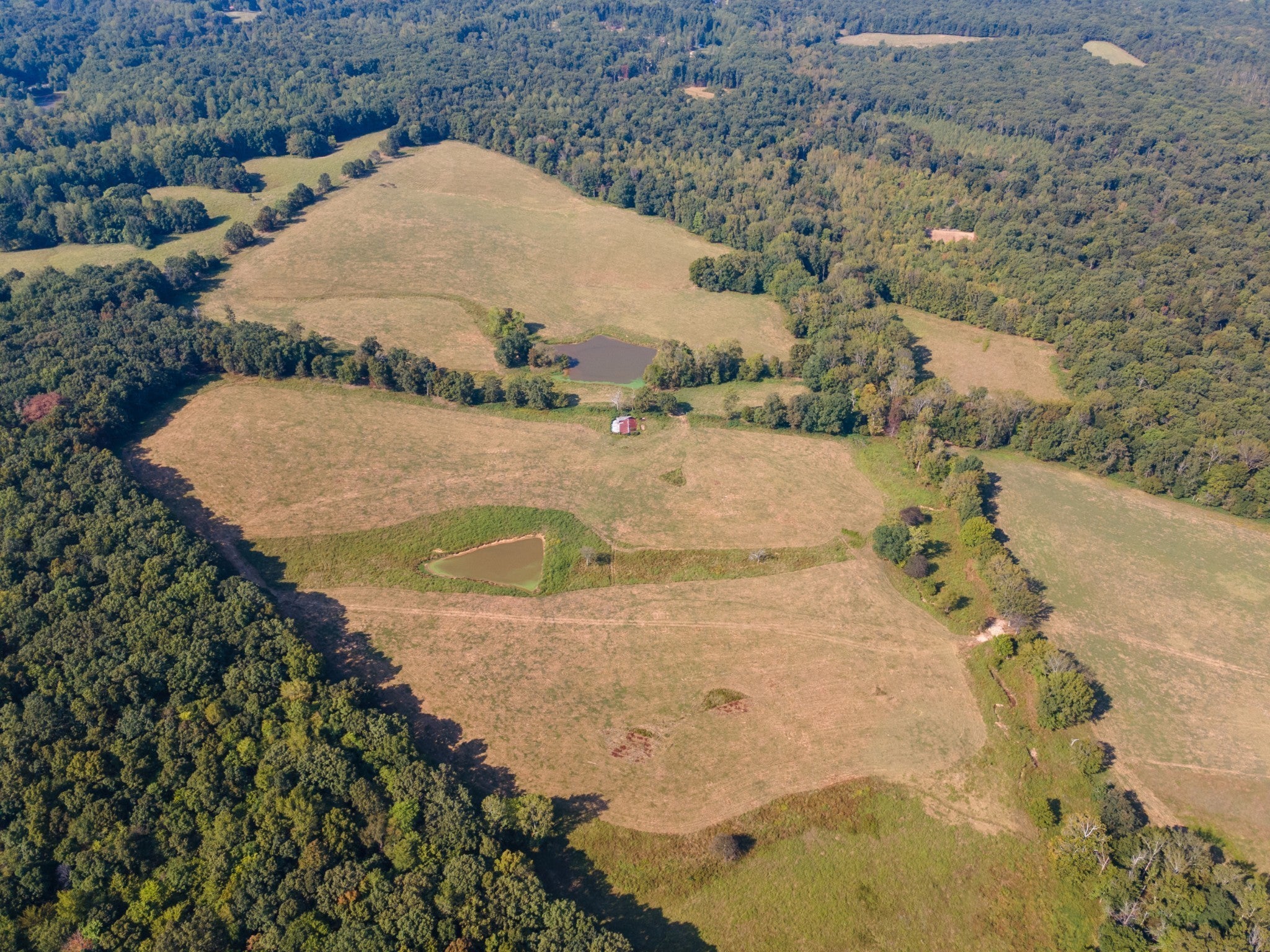 Beautiful 2 bedroom, 2 bath brick/vinyl farmhouse ~ 185.7 Rolling acres ~ Gas fireplace ~ Spacious eat-in kitchen ~ Large den ~ Knotty pine throughout ~ Security doors ~ Covered porch & patio ~ Paved circle drive ~ 7 Scenic ponds ~ West Piney River runs through the property ~ 5 Bay storage building with lean-to ~ Fenced & cross fenced ~ Mix of wooded areas & open pastures ~ Stunning views ~ Multiple stock barns (one with hay loft) ~ Lots of natural beauty ~ Standout opportunity for developers, investors, contractors & long-term landholders ~ Would make a great equestrian community ~ Ideal for a live-and-work property