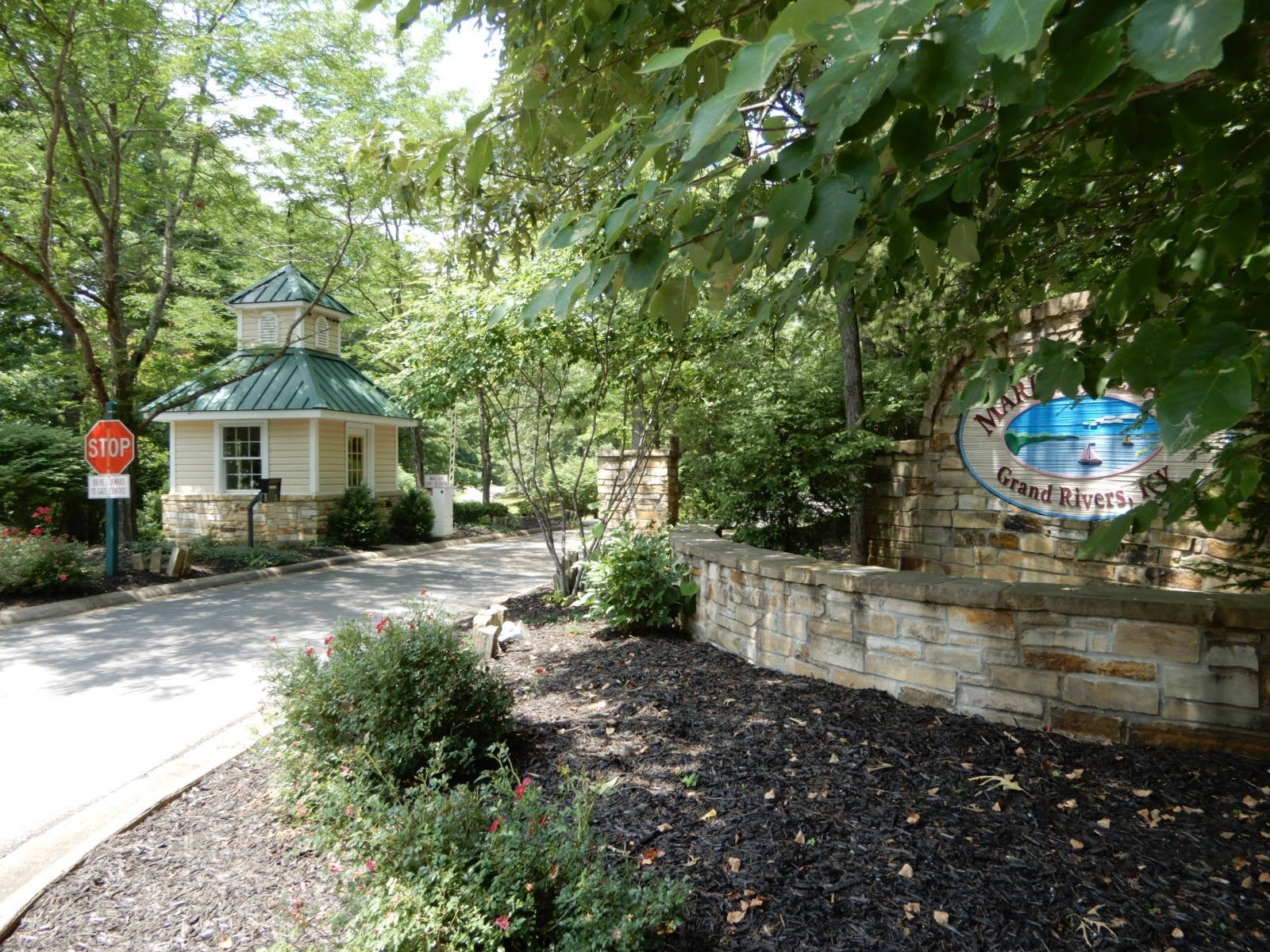 Beautiful Immaculate Custom Built 3 bedroom 3 & 1/2 bath 2006 very well maintained looks like a new Home sitting on 2 Gorgeous lots in Prestigious Gated Marina Village Subdivision! Gorgeous hardwood & 9 ft ceilings throughout, large family room open to Kitchen! Great colors, many updates. 2 Bedrooms on main level & one HUGE bedroom upstairs. All bedrooms have a full bath. Kitchen has ample custom cabinetry! NEWHEAT/AIR UNITS IN 2023. Upstairs-2019. NEW DECK, Concrete & Patio-2023/2024. Spacious 4 car garage heated & cooled. Extra gravel drive on corner lot to back of home. Storm Shelter and storage space under Home. April aire whole house dehumidifier & New Exhaust fans in the 3 full baths. ALL FURNITURE, DECOR, TABLEWARE, BEDDING, LIGHTHOUSE PICTURES, Towels STAY PLUS NEW flooring that has not been installed. 2 LOTs on left side of home are FOR SALE This would make the property so Private! Take a golf cart ride to Grand Rivers, world famous Patties Restaurant, antique shops &more! Small room under home--concrete floor to store mower & yard tools. Good Storm Shelter. Oven is a duel -Gas and Electric. It has video surveillance outside front and back. Under contract with Surval for a check and spray for bugs every 3 months. Sprinkler's on 2 different meters. Yard is under care with Lawn Teck. NEW GARAGE DOOR--2023. Commercial Ice Machine and SPLIT UNITHEAT/AIR NEW in garage. NEW TRACK LIGHTING FOR LIVING ROOM AND UPSTAIRS but not installed. EVERYTHING STAYS EXCEPT SOME PERSONAL ITEMS. Subdivision SEWER SYSTEM, GRANDRIVERS WATER. HOA IS $1,000.00 a year. $500.00 per lot.