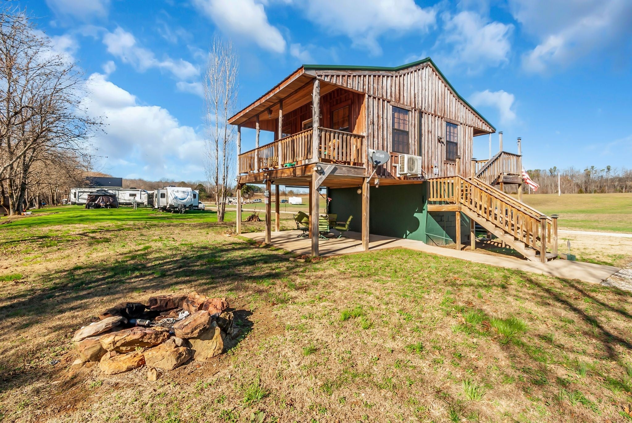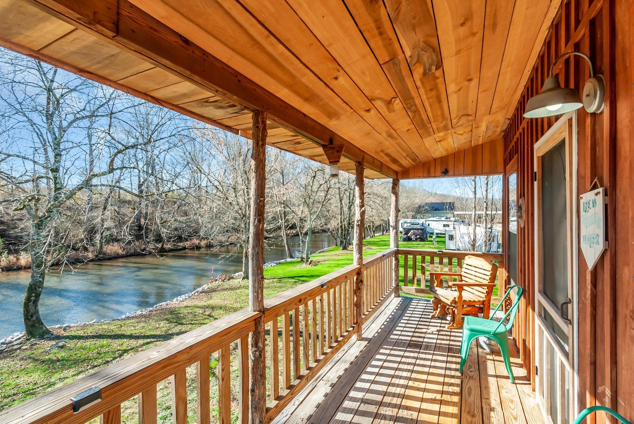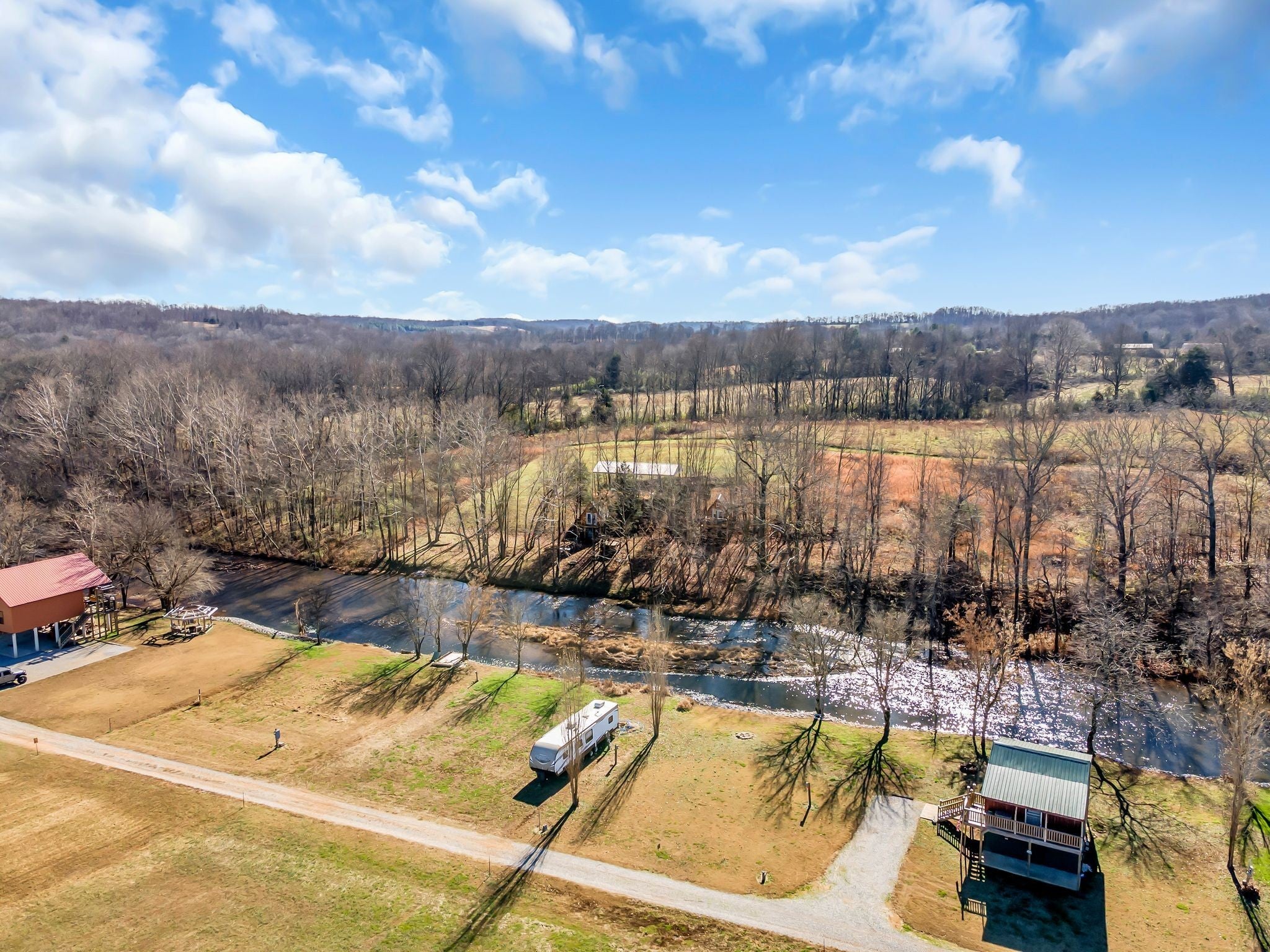 Perfect weekend getaway. Adorable Cozy rustic cabin set next to Factory Creek. Wake up with your favorite cup of pick me up on the deck overlooking the sounds of water and all nature has to offer. 2 bedrooms, one is a loft, 1 bath with custom tile shower, rustic window shades, barn doors all set in an atmosphere made for relaxation. Property also boasts 2 RV hookups with 30 amp service. kayak down factory creek and shoals creek, kayaks available to rent at syncamore campgrounds by taco shack which is 6 Miles from the cabin. The NATRA (North Alabama Trail Riders Association) is down the road 1 mile. Creek is crystal clear, rock bottom so fishing is easy when you can see all the fish. Gated by remote control, quiet, relaxing community with firepit at cabin to build a bonfire and roast marshmellows. Bring your canoes and friends for a fun getaway. Rent it as an air bnb when you aren't there.