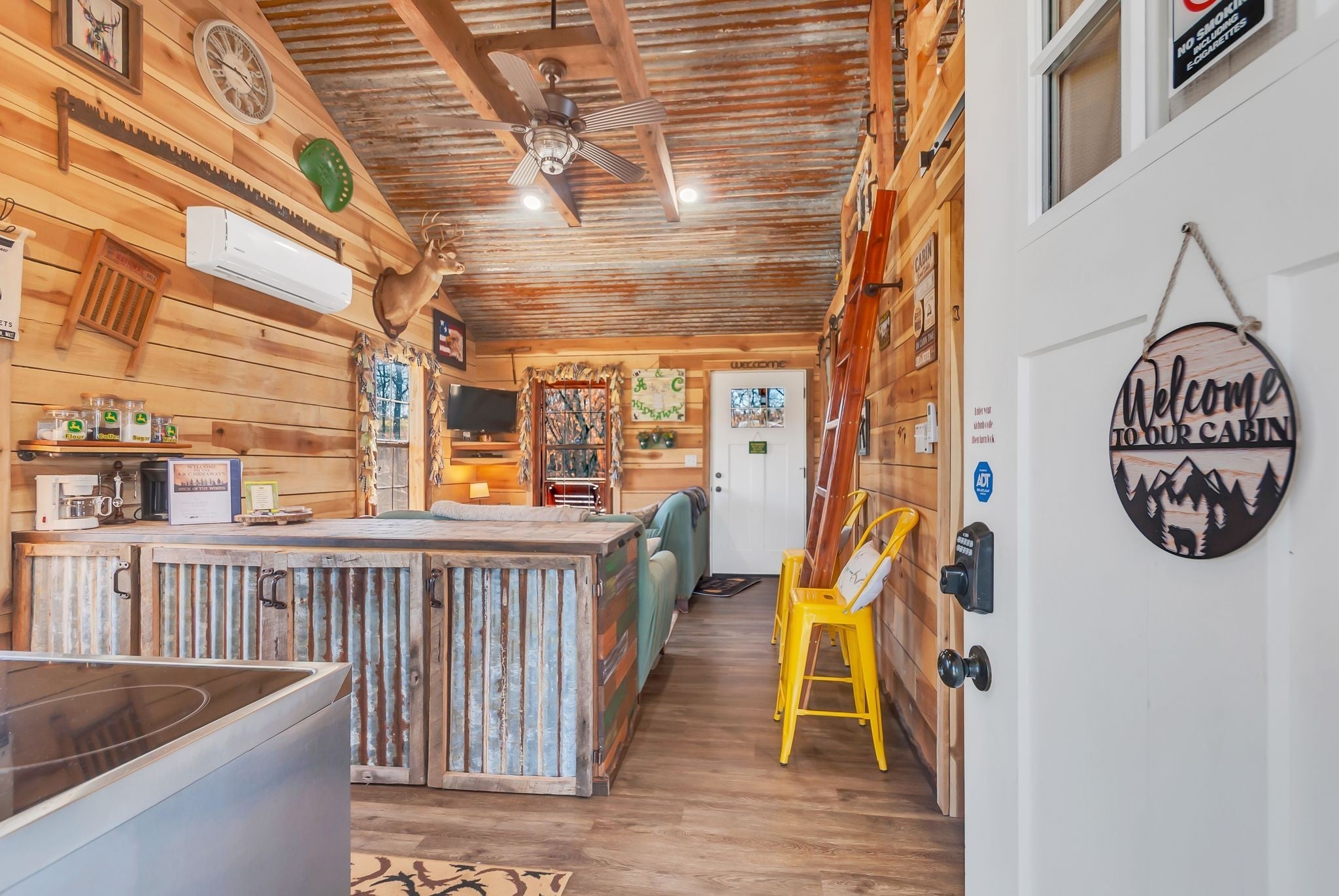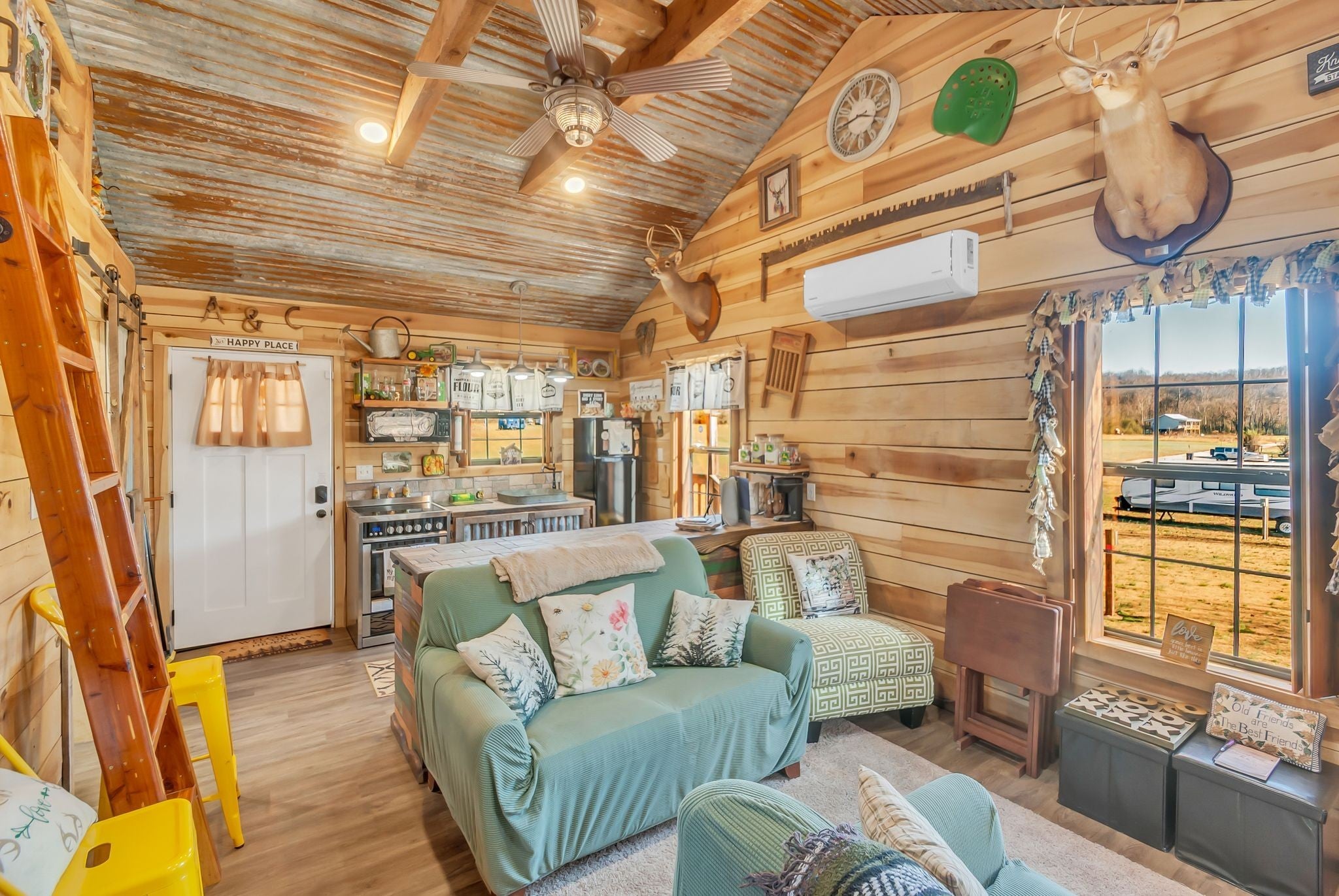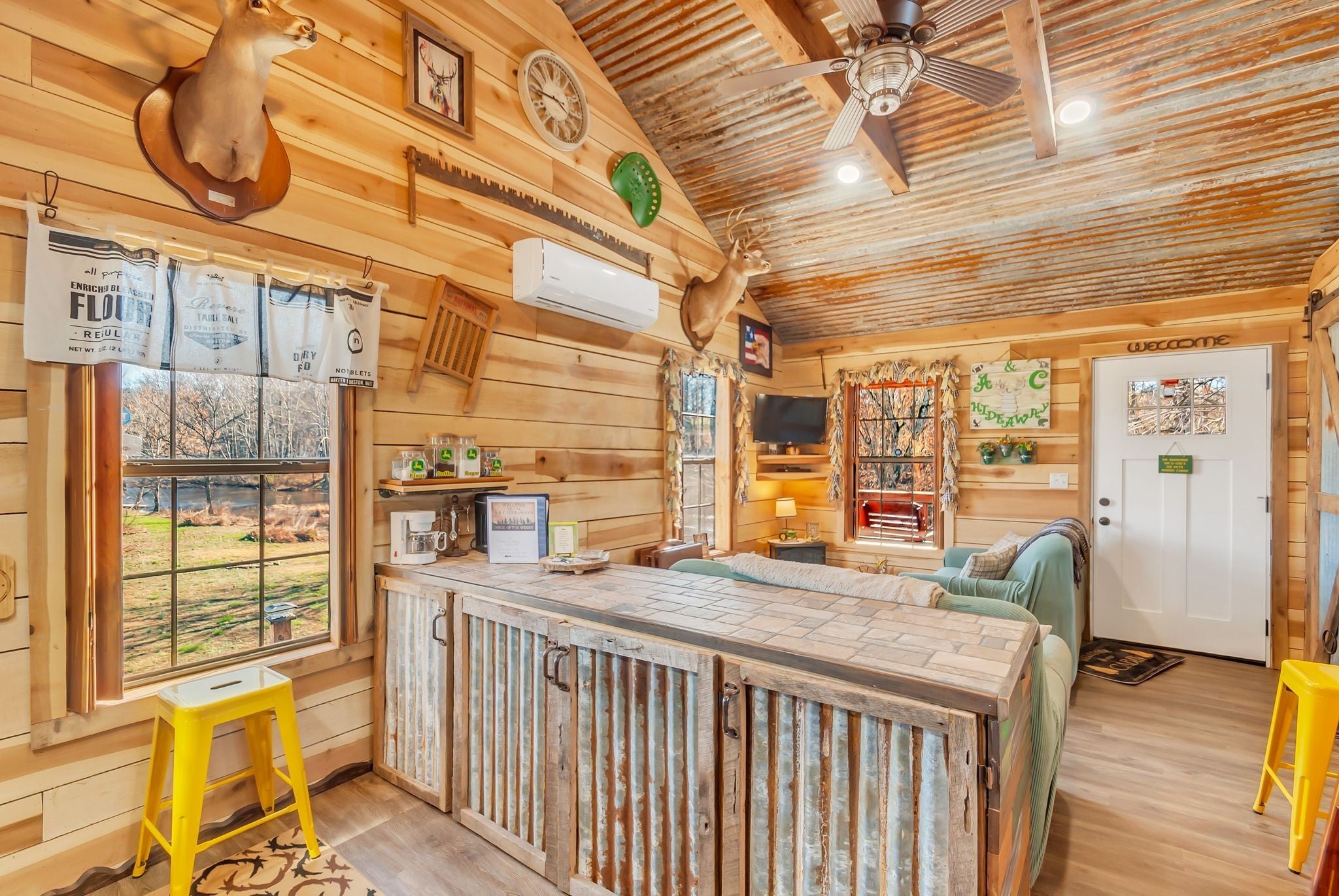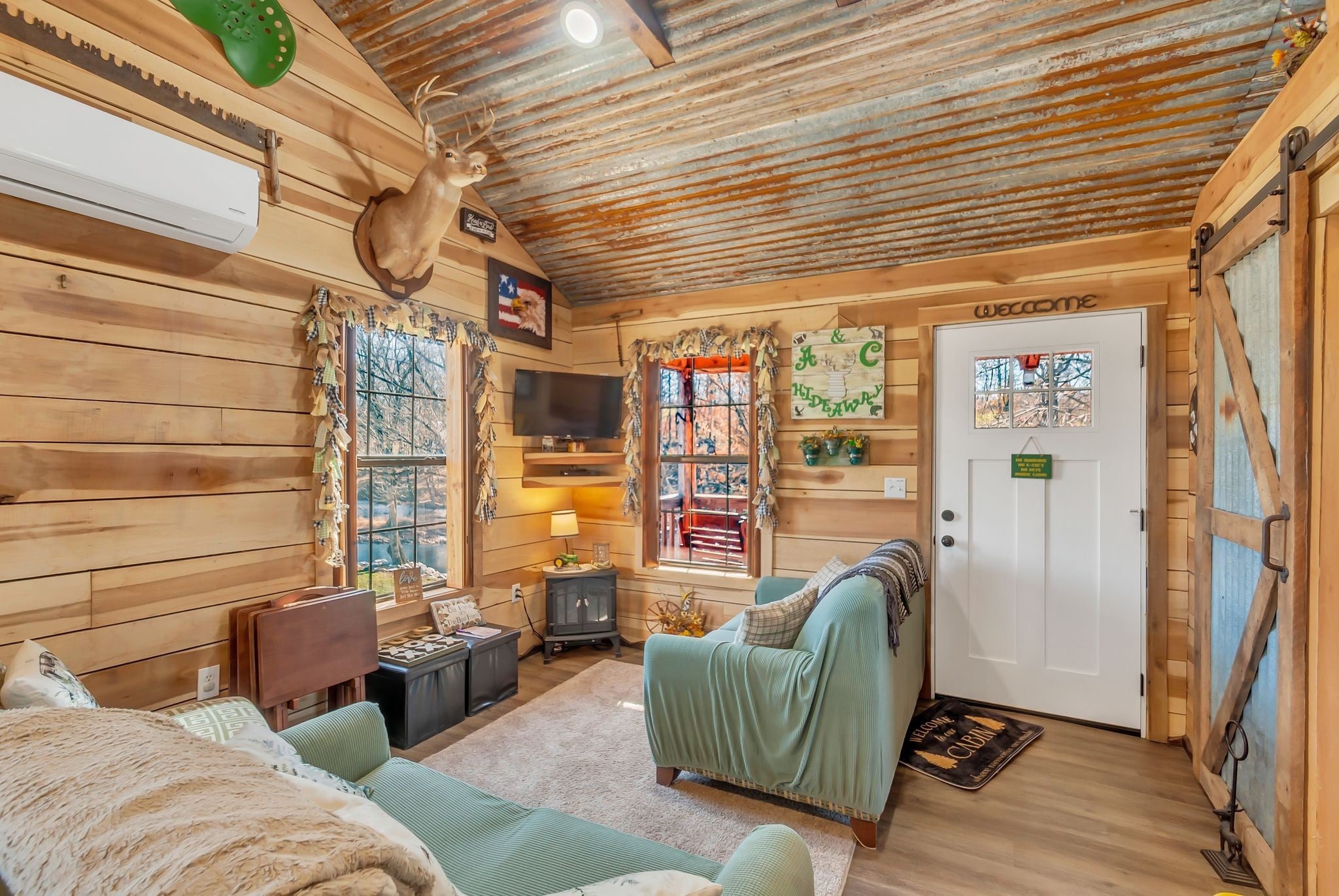 Perfect weekend getaway. Adorable Cozy rustic cabin set next to Factory Creek. Wake up with your favorite cup of pick me up on the deck overlooking the sounds of water and all nature has to offer. 2 bedrooms, one is a loft, 1 bath with custom tile shower, rustic window shades, barn doors all set in an atmosphere made for relaxation. Property also boasts 2 RV hookups with 30 amp service. kayak down factory creek and shoals creek, kayaks available to rent at syncamore campgrounds by taco shack which is 6 Miles from the cabin. The NATRA (North Alabama Trail Riders Association) is down the road 1 mile. Creek is crystal clear, rock bottom so fishing is easy when you can see all the fish. Gated by remote control, quiet, relaxing community with firepit at cabin to build a bonfire and roast marshmellows. Bring your canoes and friends for a fun getaway. Rent it as an air bnb when you aren't there.