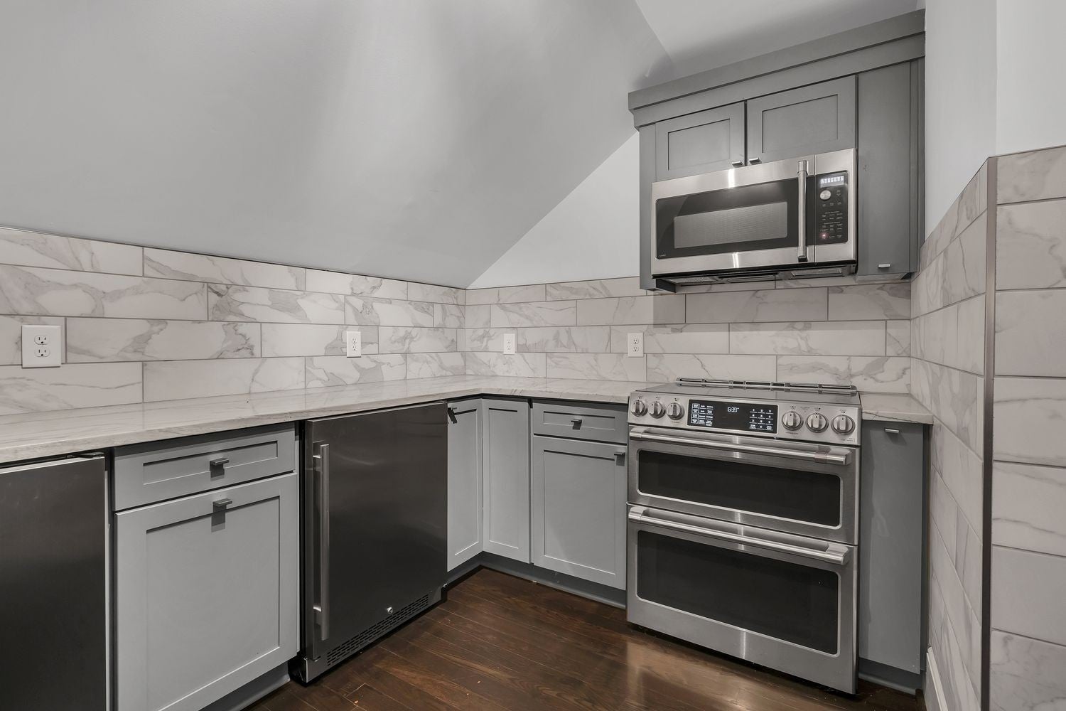 - Built-In Gas Oven, Double Oven, Gas Oven, Built-In Gas Range, Cooktop, Range, Dishwasher, Disposal, Microwave, Refrigerator, Stainless Steel Appliance(s)