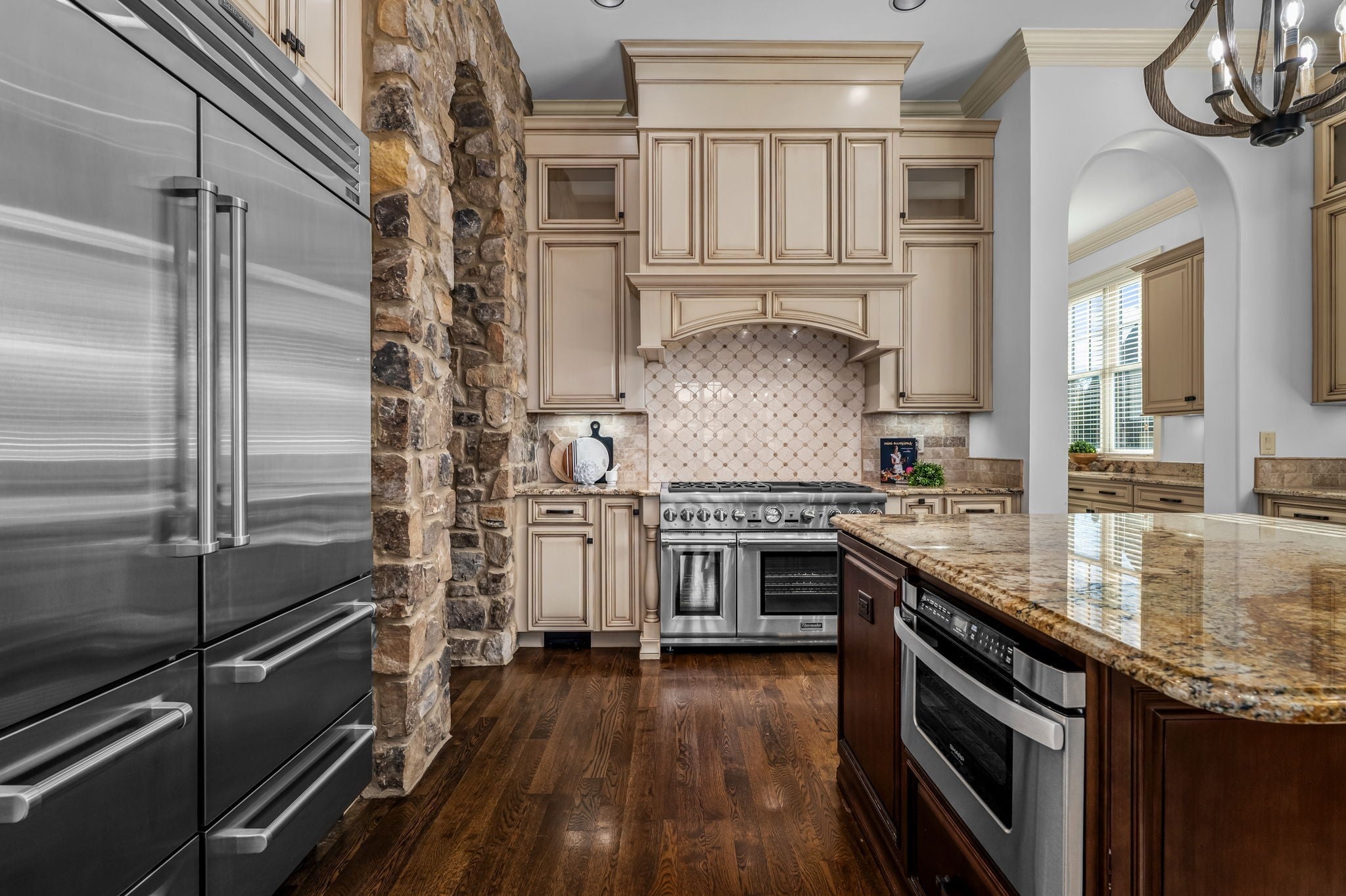 - Double Oven, Gas Range, Dishwasher, Disposal, Ice Maker, Microwave, Refrigerator, Stainless Steel Appliance(s)