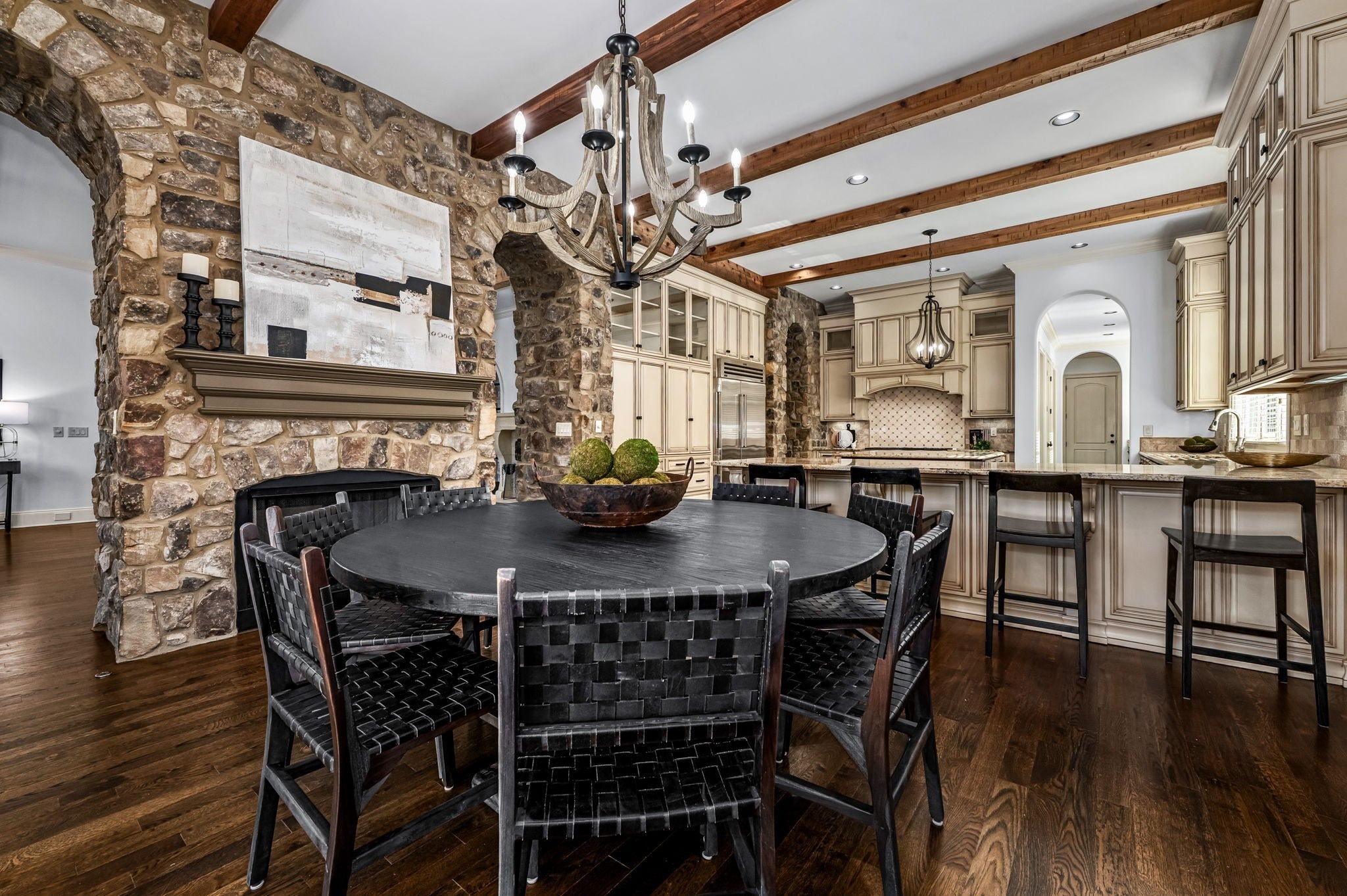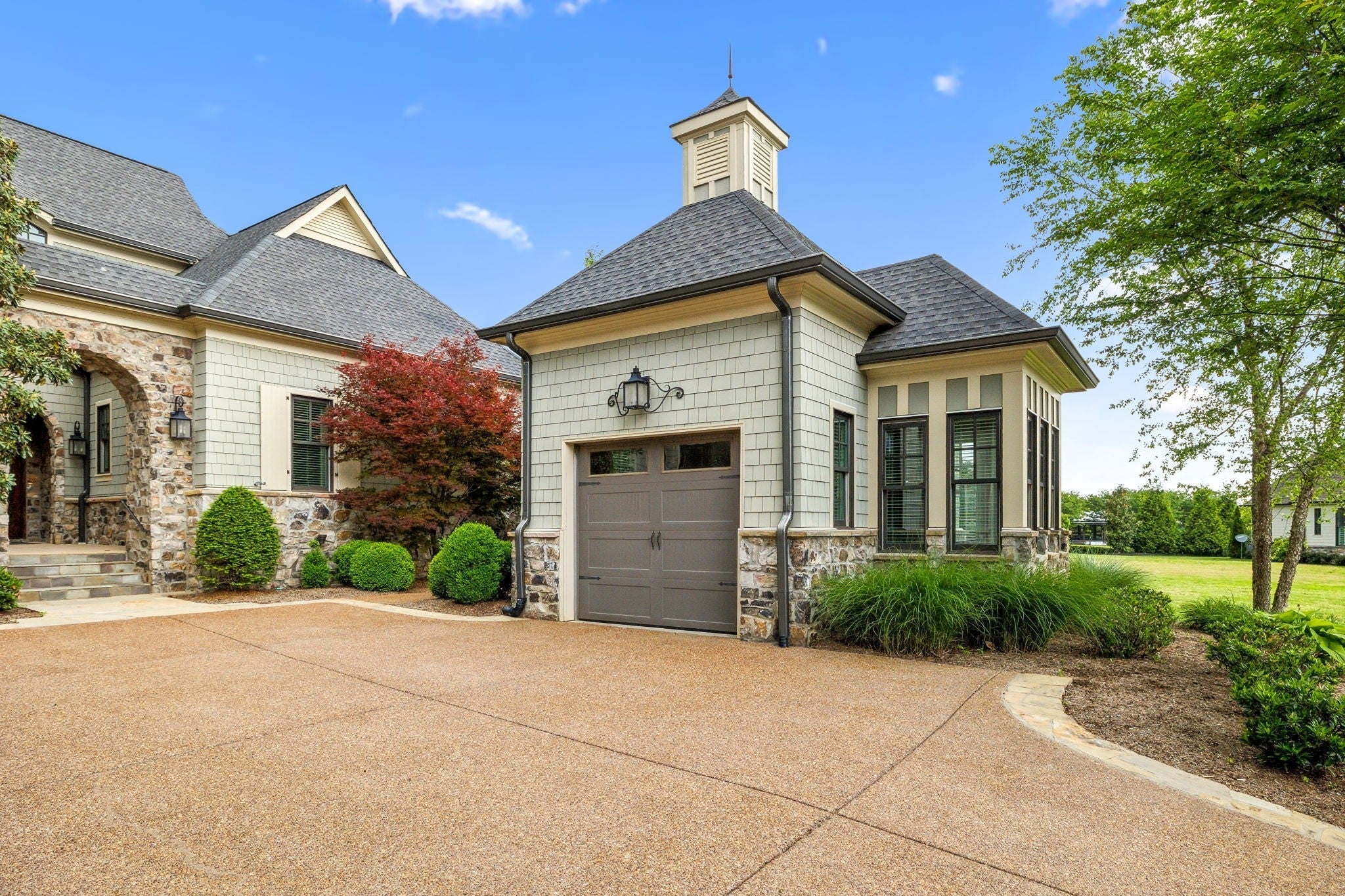 MOTIVATED SELLER-PRICED TO SELL! Come experience Luxurious Living in The Grove in the amazing gated golf community. This gorgeous home is the entertainer's showplace-timeless, elegant & modern luxuries by Hidden Valley Homes & must see in person to appreciate. As you approach, you're greeted by stone pillars w/gas lamps & charming front courtyard, perfect for relaxing or entertaining guests, complete w/ a cozy fireplace that creates a warm, inviting ambiance. That's all before you step inside either set of beautiful arched wood and glass double doors. You will discover the elegance of the spacious open floor plan, highlighted by a first-floor primary suite designed for ultimate privacy and convenience. This exquisite home features not only an attached oversized two-car garage with closet and storage area but also a separate detached heated & cooled garage w/380sf that could easily be a 4th bedroom w/ full bath, in-law suite, teen suite, private office, a workout room, studio or delightful potting shed. The Primary Suite with sitting area has vaulted ceilings, beautiful wood beam, plenty of natural light and the primary bath and 2 custom built-in walk-in closets are a dream! The chef's kitchen has cabinets to the ceiling, also beautiful glass display cabinets, Sub-Zero fridge, Thermador gas range w/6 burners, griddle & dessert oven. What kitchen wouldn't be complete without a butler's pantry w/sink, beverage fridge, cabinets and 2 countertops-one for coffee bar and actual bar, plus walk-in pantry AND 20' long hallway of additional cabinets for all of your entertaining dishes & decor. The office has natural light, plenty of cabinets and granite. Every corner of the villa is designed to impress. You won't believe the storage space in the 2 massive walk-out attics upstairs. Don’t miss the opportunity to experience this beautifully upgraded home firsthand! Detached Garage has 380sf and could easily be converted to a 4th bedroom with bathroom. Schedule your showing today!