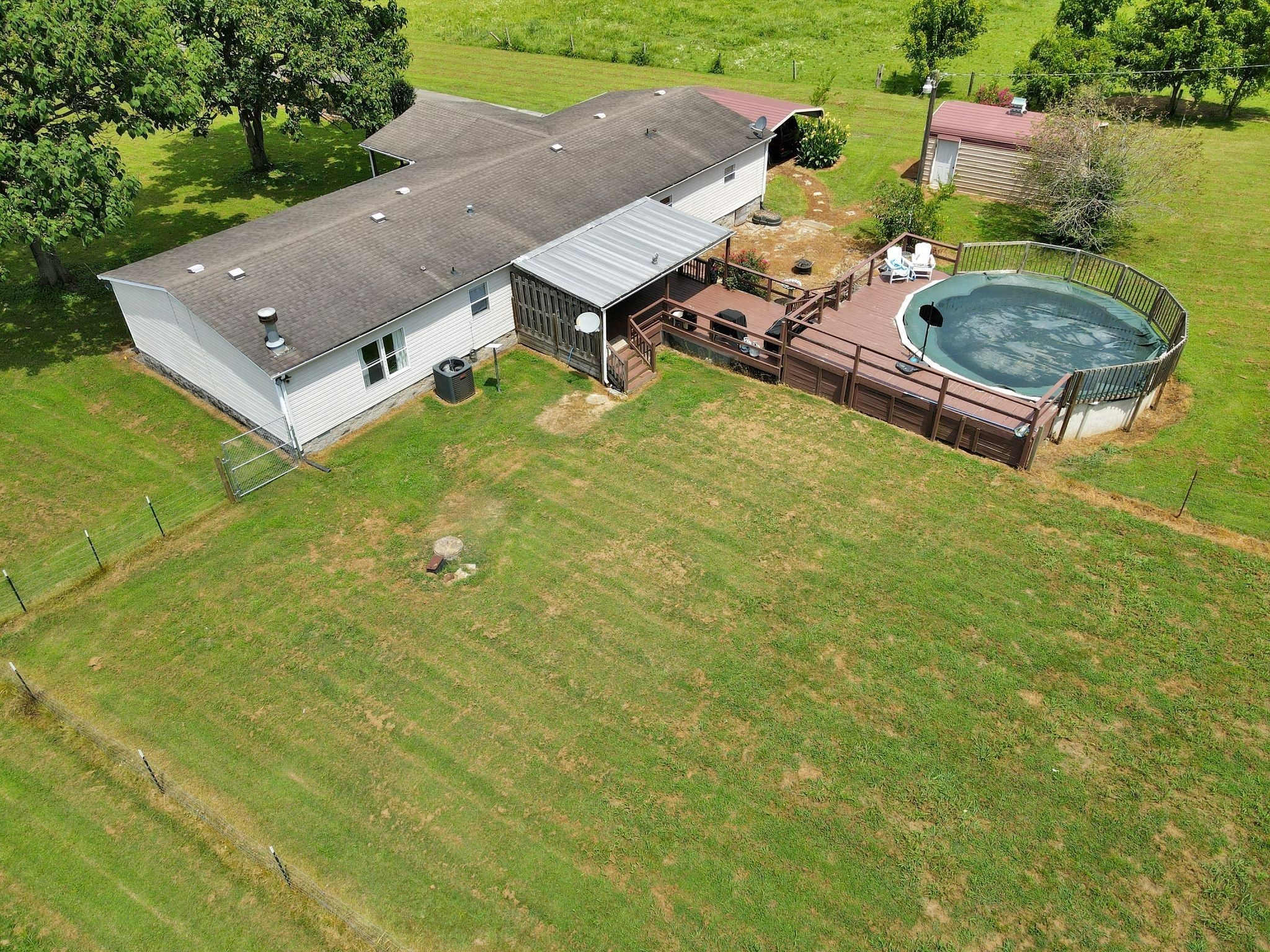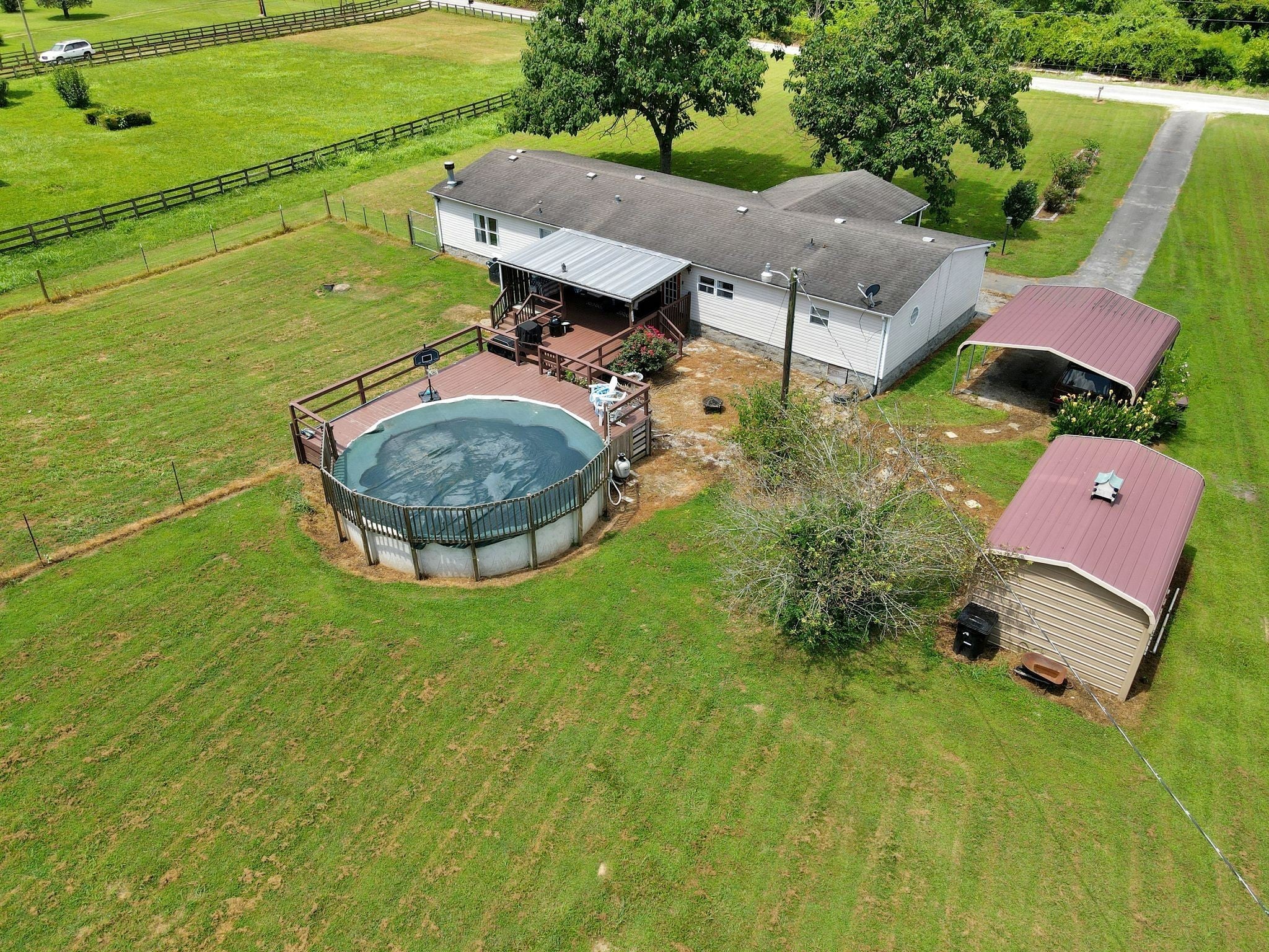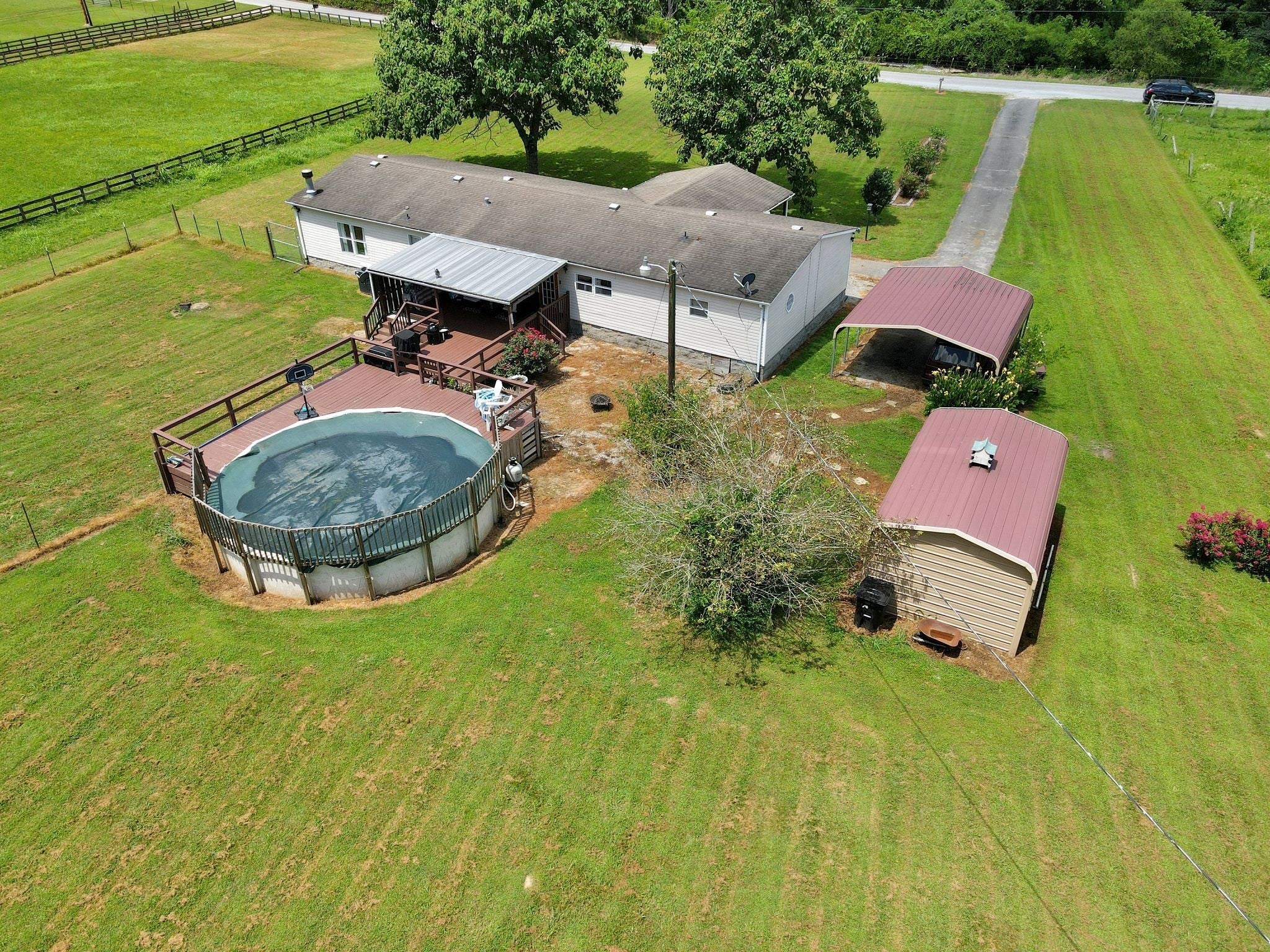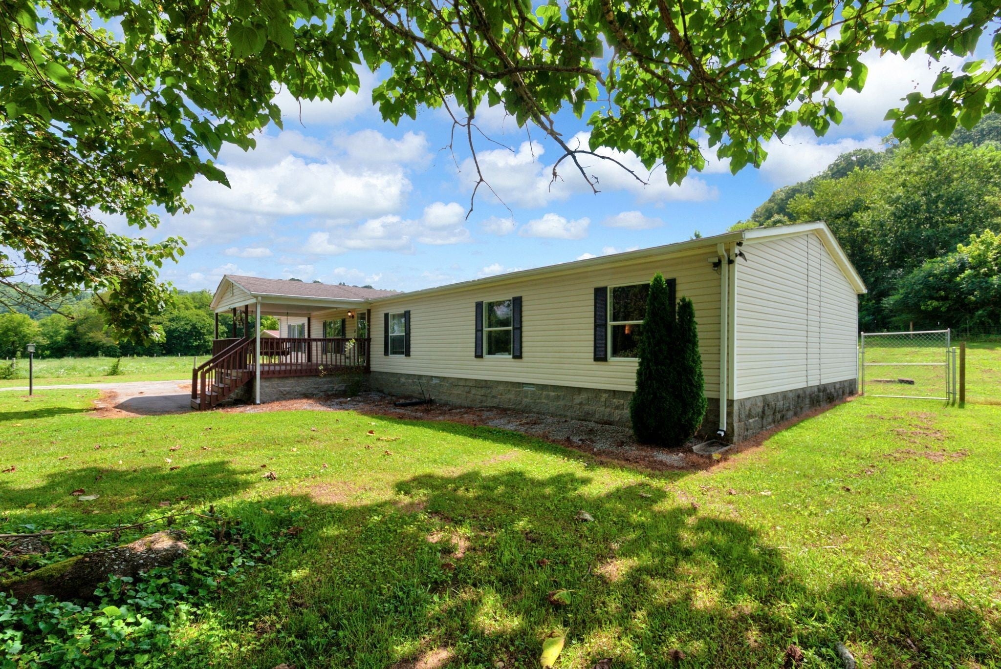 Enjoy beautiful views of the Tennessee hills from this charming 3-bedroom, 2-bath home offering over 2,100 sq ft of living space, including a dedicated office and a cozy den with a fireplace. Situated on 3.5 acres, this property provides the perfect blend of privacy and outdoor living. The spacious, covered front porch is ideal for rocking chairs and a swing, while the covered back deck offers a peaceful retreat overlooking the yard. Inside, the home features generously sized bedrooms, including an oversized secondary room. Outside, you’ll find a carport, a workshop, a pool, and plenty of flower beds surrounded by established landscaping—everything you need to enjoy the best of country living.