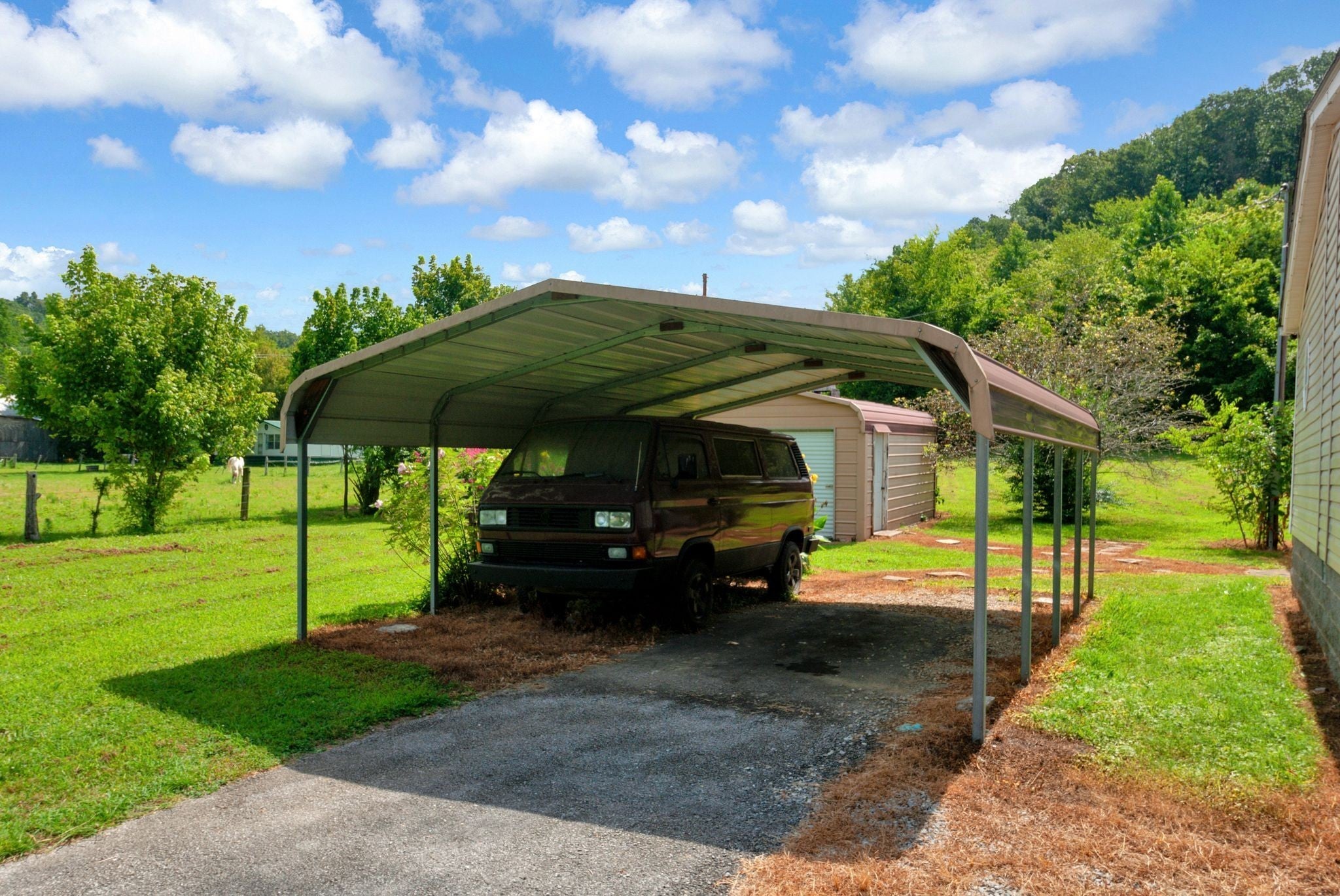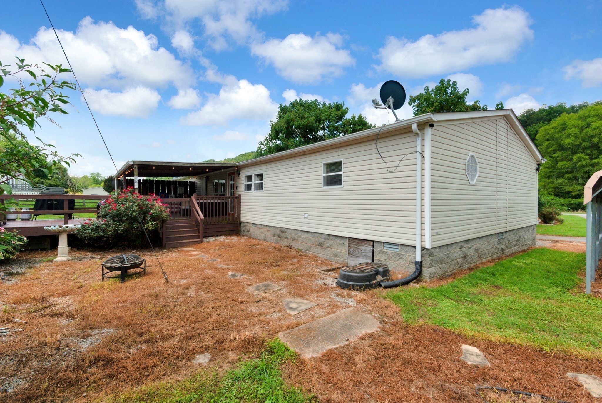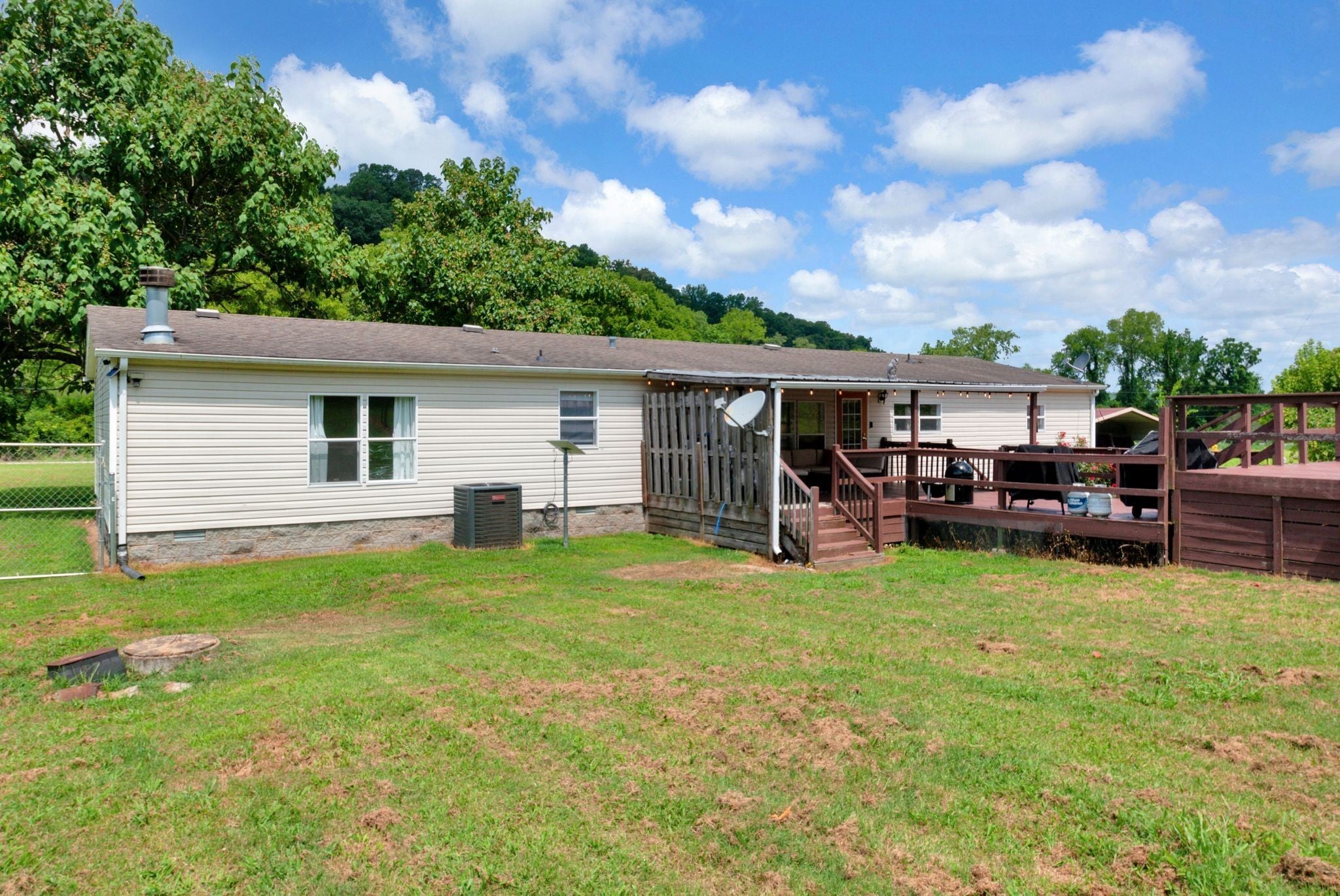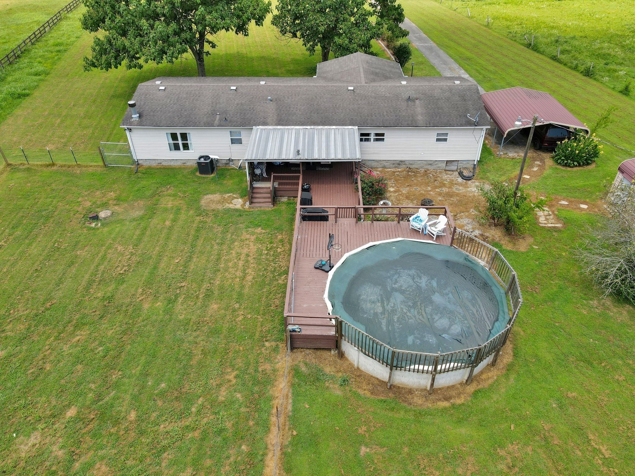 Enjoy beautiful views of the Tennessee hills from this charming 3-bedroom, 2-bath home offering over 2,100 sq ft of living space, including a dedicated office and a cozy den with a fireplace. Situated on 3.5 acres, this property provides the perfect blend of privacy and outdoor living. The spacious, covered front porch is ideal for rocking chairs and a swing, while the covered back deck offers a peaceful retreat overlooking the yard. Inside, the home features generously sized bedrooms, including an oversized secondary room. Outside, you’ll find a carport, a workshop, a pool, and plenty of flower beds surrounded by established landscaping—everything you need to enjoy the best of country living.