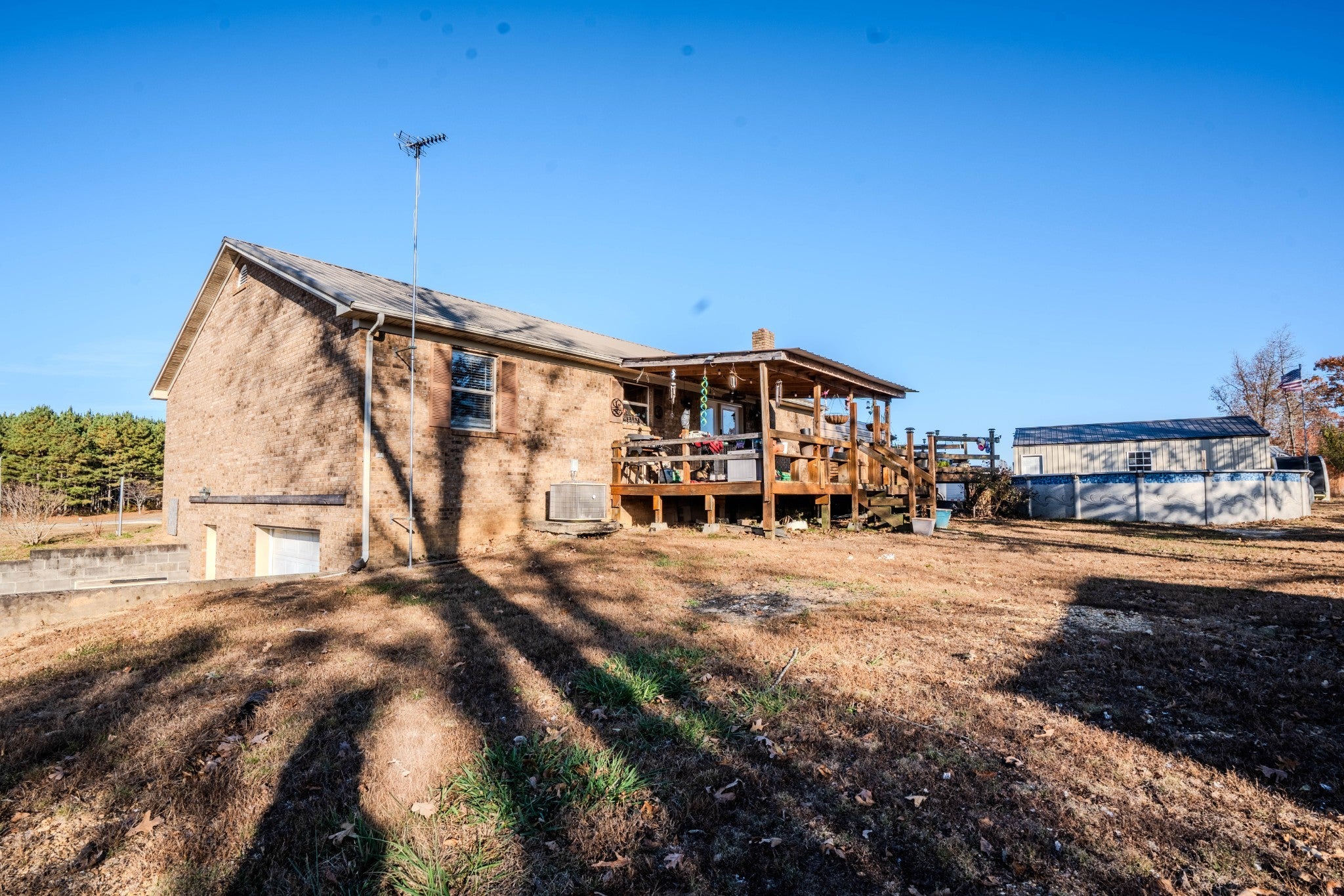 Charming 5-Acre Tennessee Country Home with Walk-Out Basement! Nestled back from the road for ultimate privacy, this charming brick ranch-style home is located at 190 Buford Moore Lane, Iron City, TN—just 8 miles from Collinwood, TN and a short 30-minute drive to Florence, AL. Enjoy peaceful country living with all the comforts of modern amenities in this warm and inviting property. Main Level (1,521 sq ft): • Open-concept living, kitchen, and dining area perfect for family gatherings and entertaining • Kitchen equipped with double-oven stove, microwave with vent, dishwasher, and refrigerator • 3 bedrooms and 2 full bathrooms • Utility room with convenient access Walk-Out Basement (1,215 sq ft): • Semi-finished space offering endless possibilities • Dedicated office and hobby room • Spacious recreation/game room or the ideal man cave • Built-in 1-car garage and ample storage area Outdoor Features: • 5 level-to-rolling acres with fruit trees, garden space, and wide-open grounds for pets and kids to explore • Large covered back deck overlooking a sparkling 24 ft above-ground pool—perfect for relaxing or entertaining • 20×30 detached garage/shop—ideal for woodworking, projects, or storage • Chicken shed ready for your backyard flock • Peaceful and picturesque surroundings in a safe, rural setting Additional Features: • Metal roof for durability • Central heat and air for year-round comfort • City water and private septic system This property offers the best of country living with modern convenience—room to grow, play, and unwind. It’s the perfect retreat to call home!