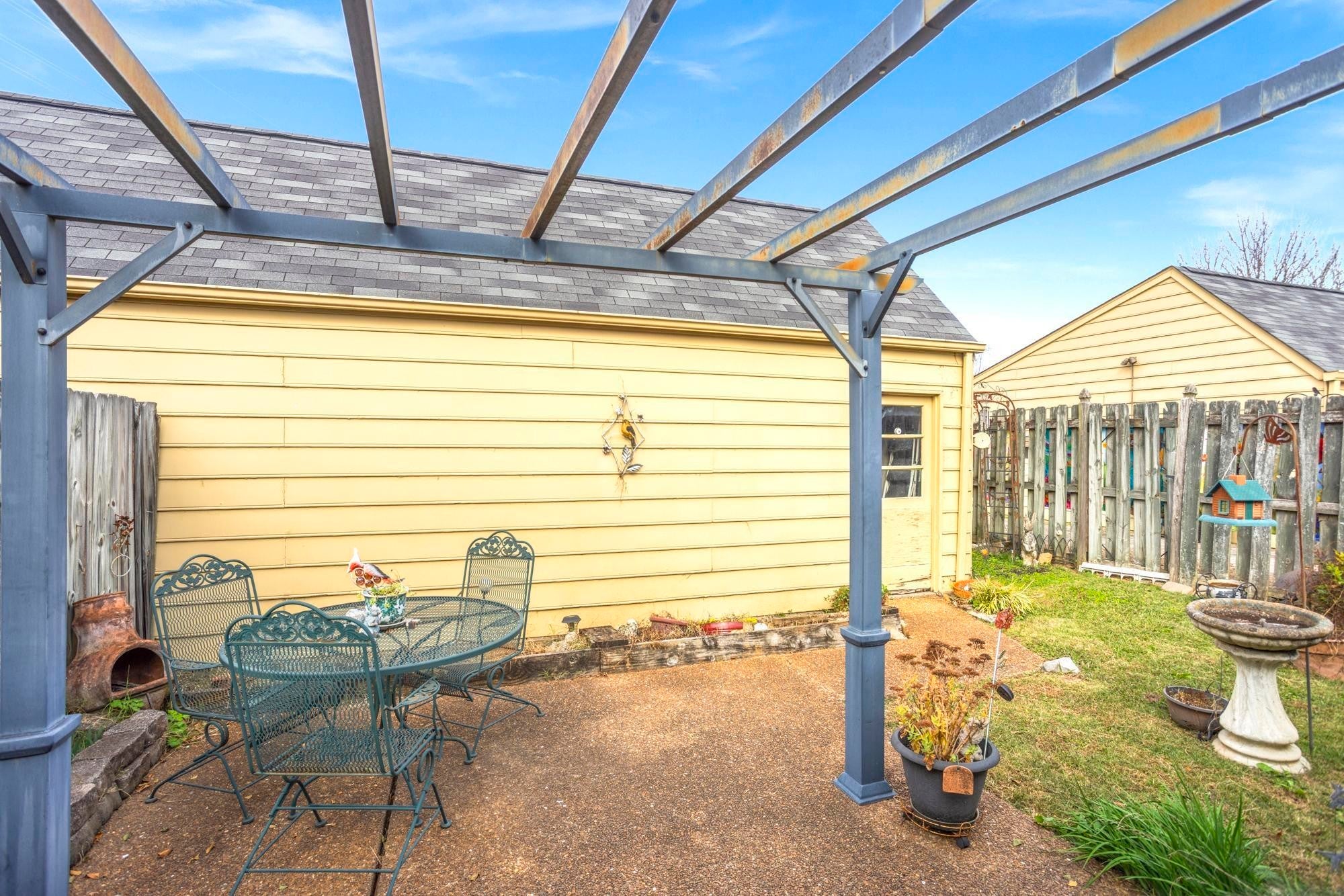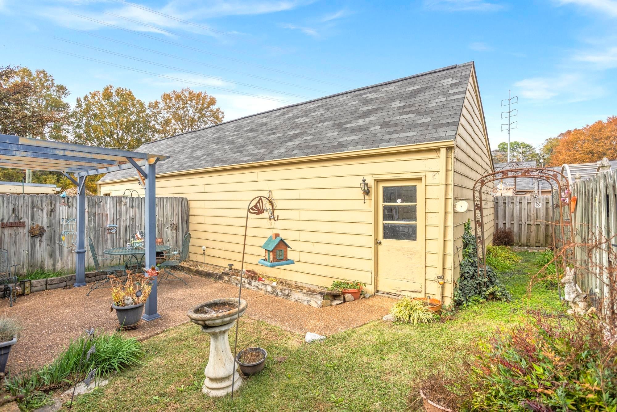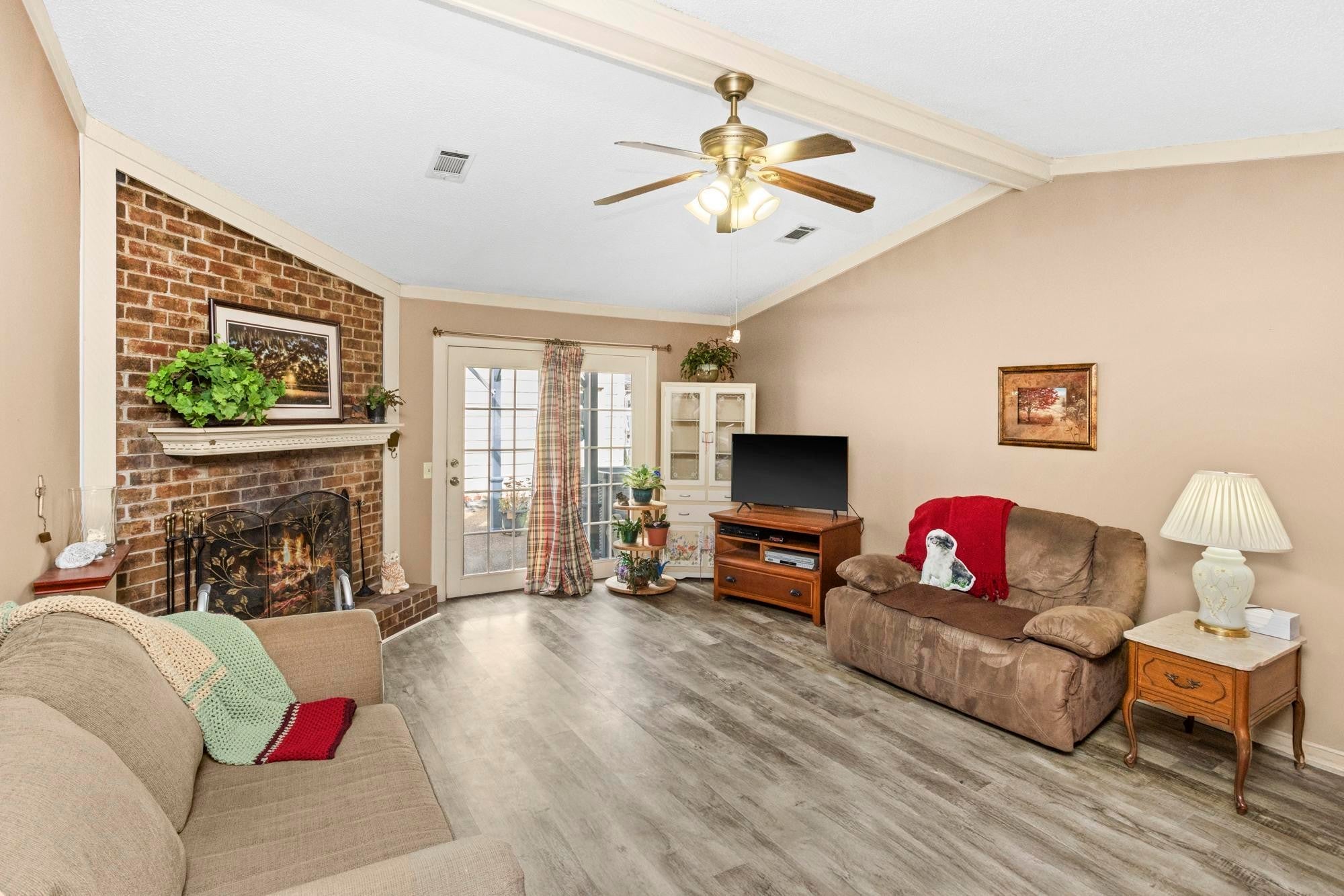 Vaulted ceilings and an open, airy main living area define this inviting home. The tile bath, fenced back yard with a patio, and detached two-car garage add comfort and convenience. The property is being sold as is, and is in overall good shape — the owner is moving into a retirement community. Located in a quiet setting, this home features freshly planted magnolia trees and is close to thriving commercial and dining options, offering an exceptional mix of peaceful living and accessibility.